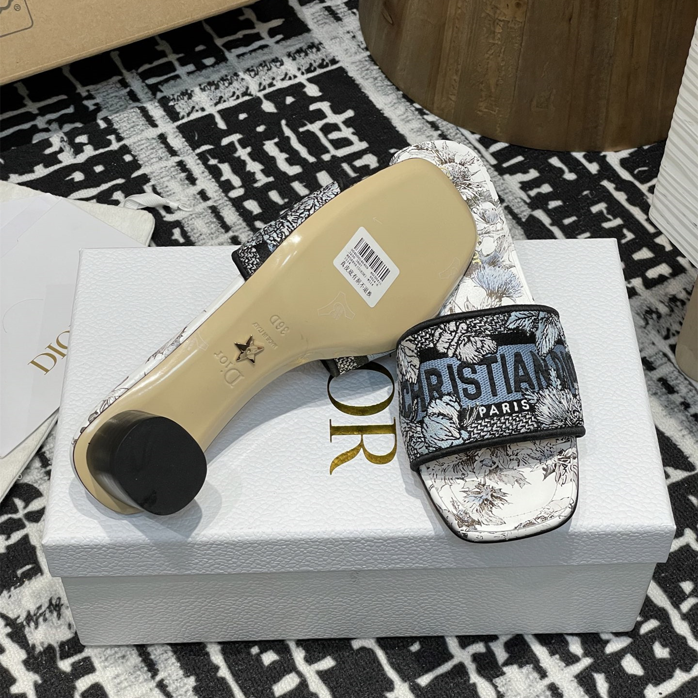 高仿Dior2025夏季新款Dway系列粗跟電繡一字涼拖鞋最新配色.這款Dway帶跟涼拖是一款歷久彌新的經典單品,飾以彼得羅·魯福(Pietro