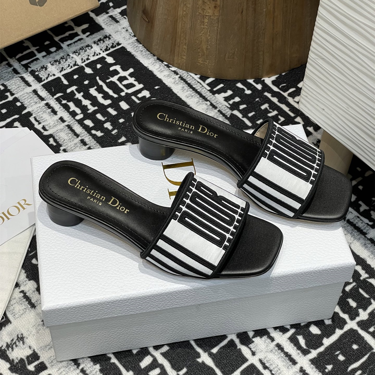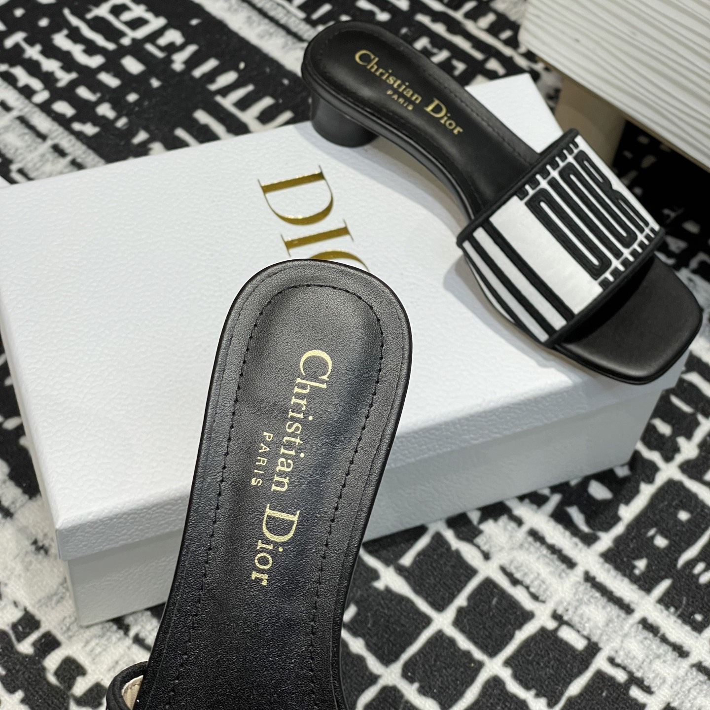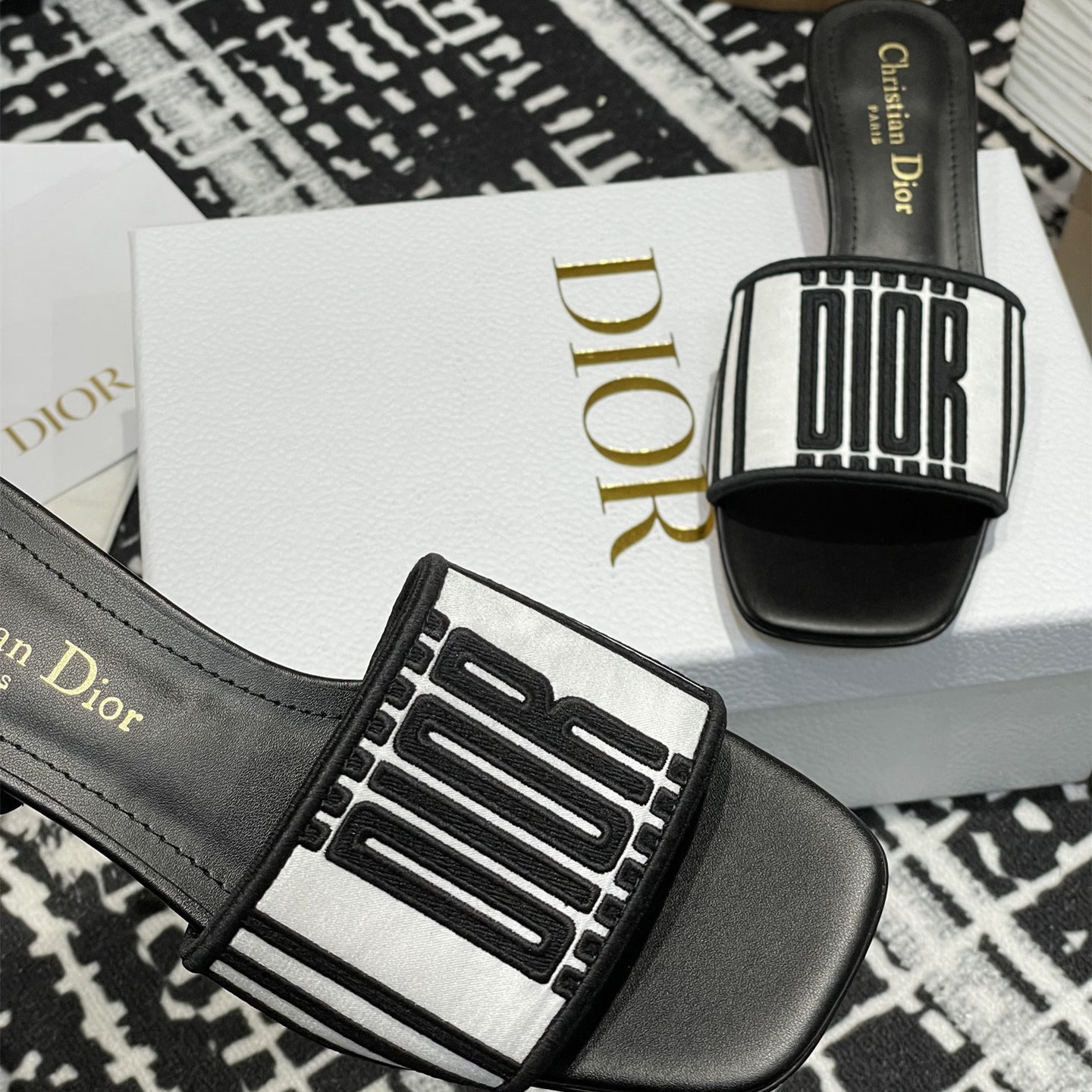 高仿Dior*Evolution系列KCQ233套腳一體短跟拖鞋徽標刺繡免檢版