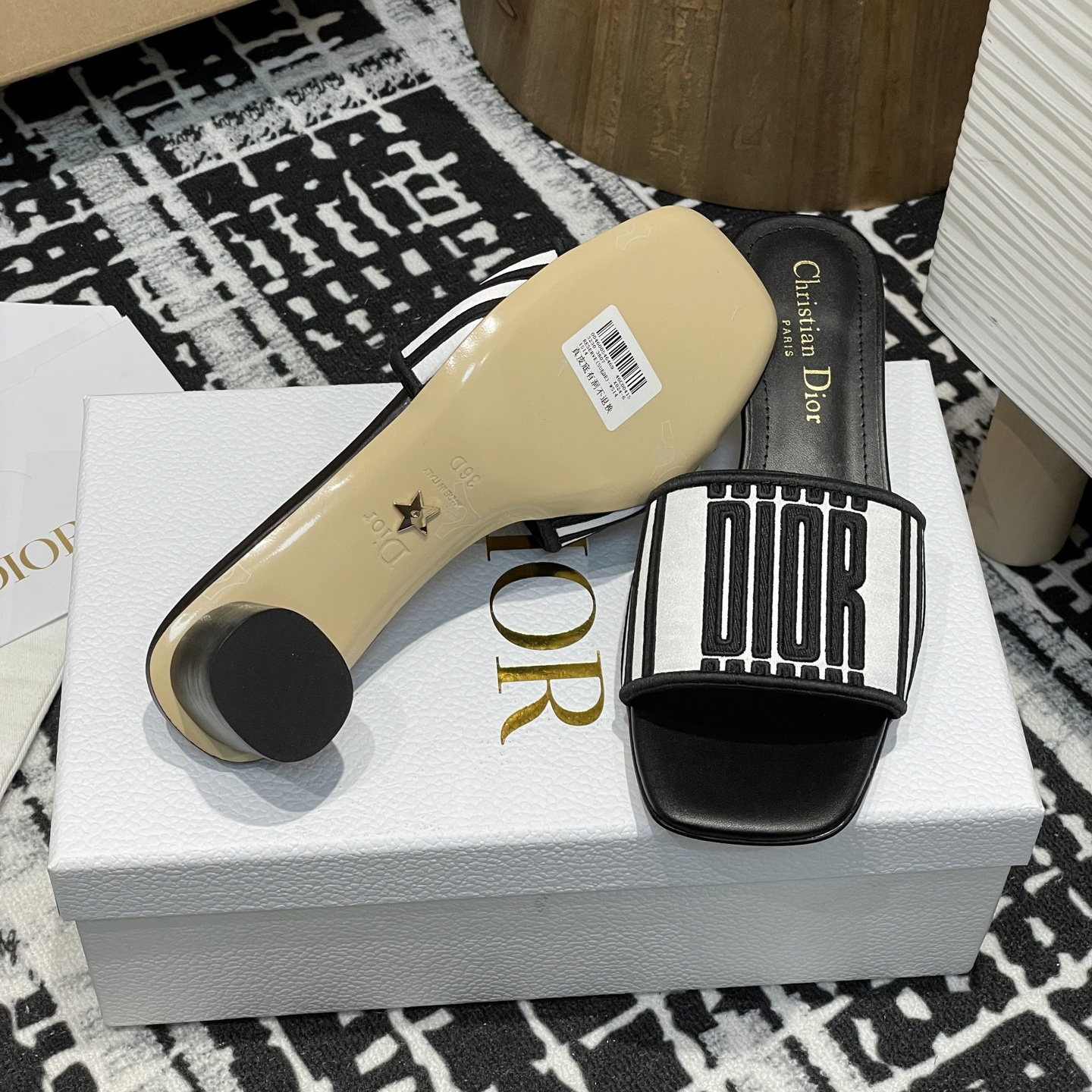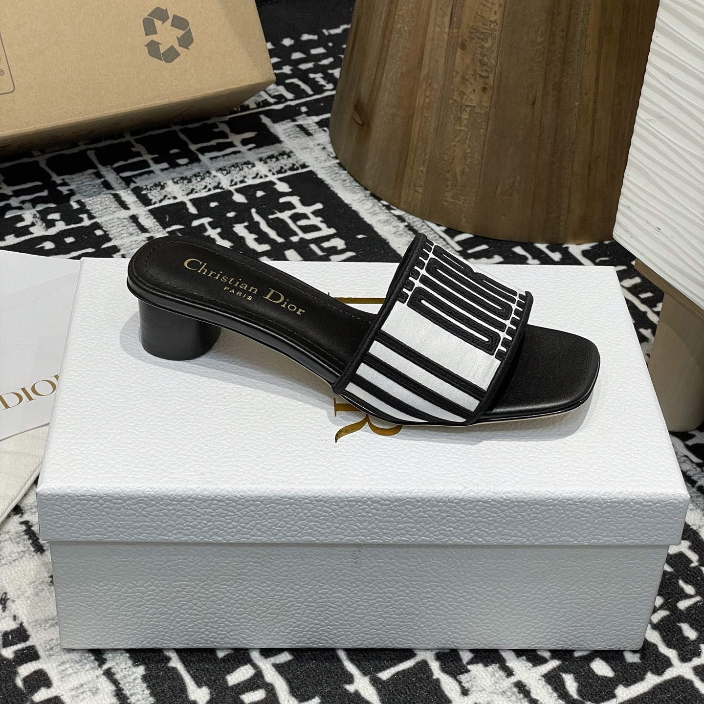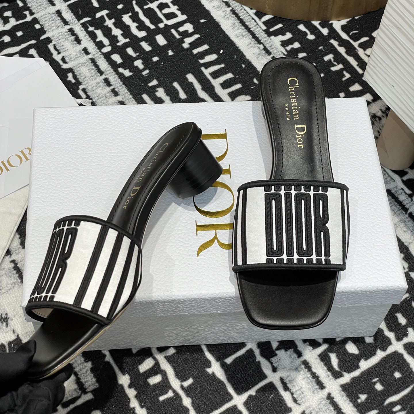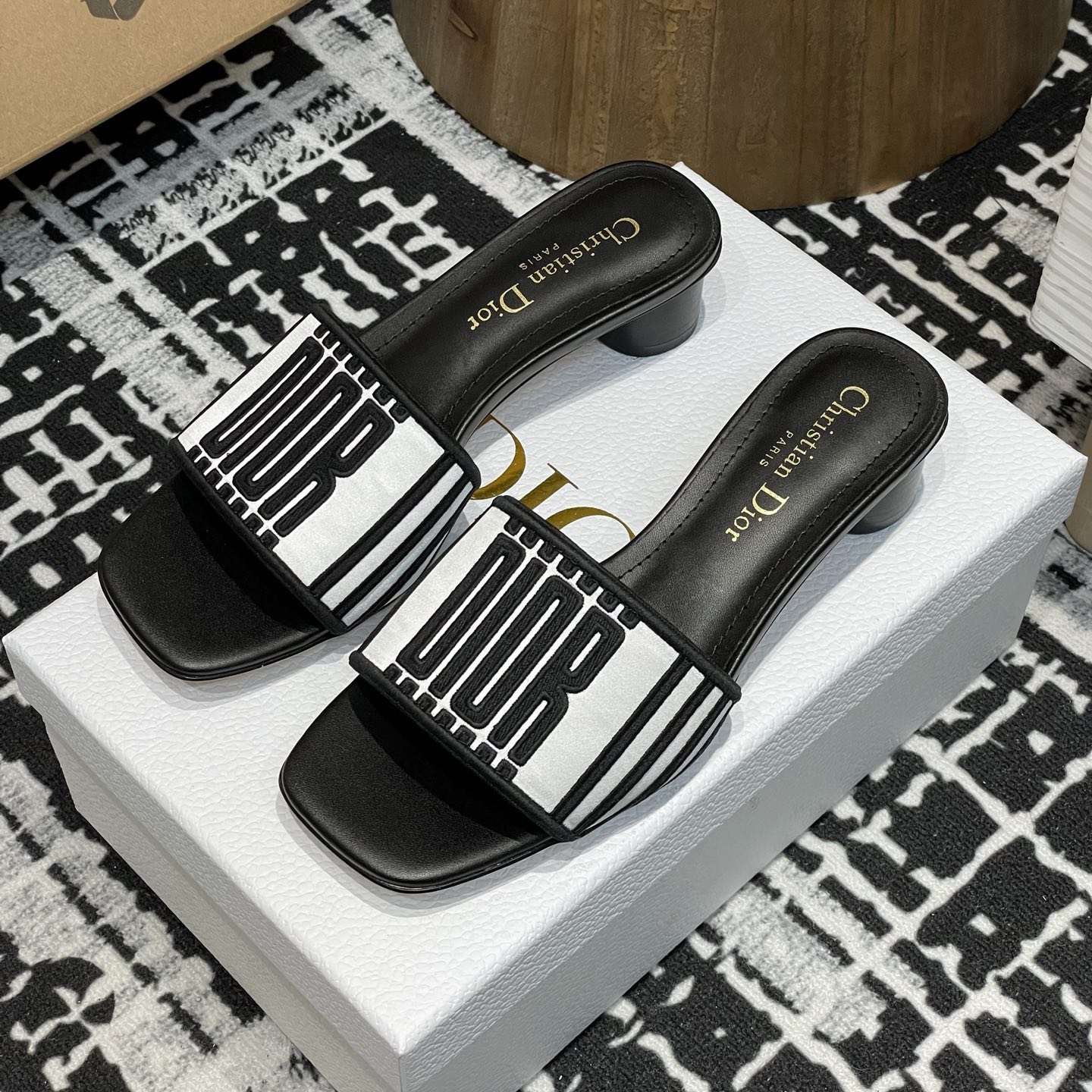 高仿Dior*Evolution系列KCQ233套腳一體短跟拖鞋徽標刺繡免檢版