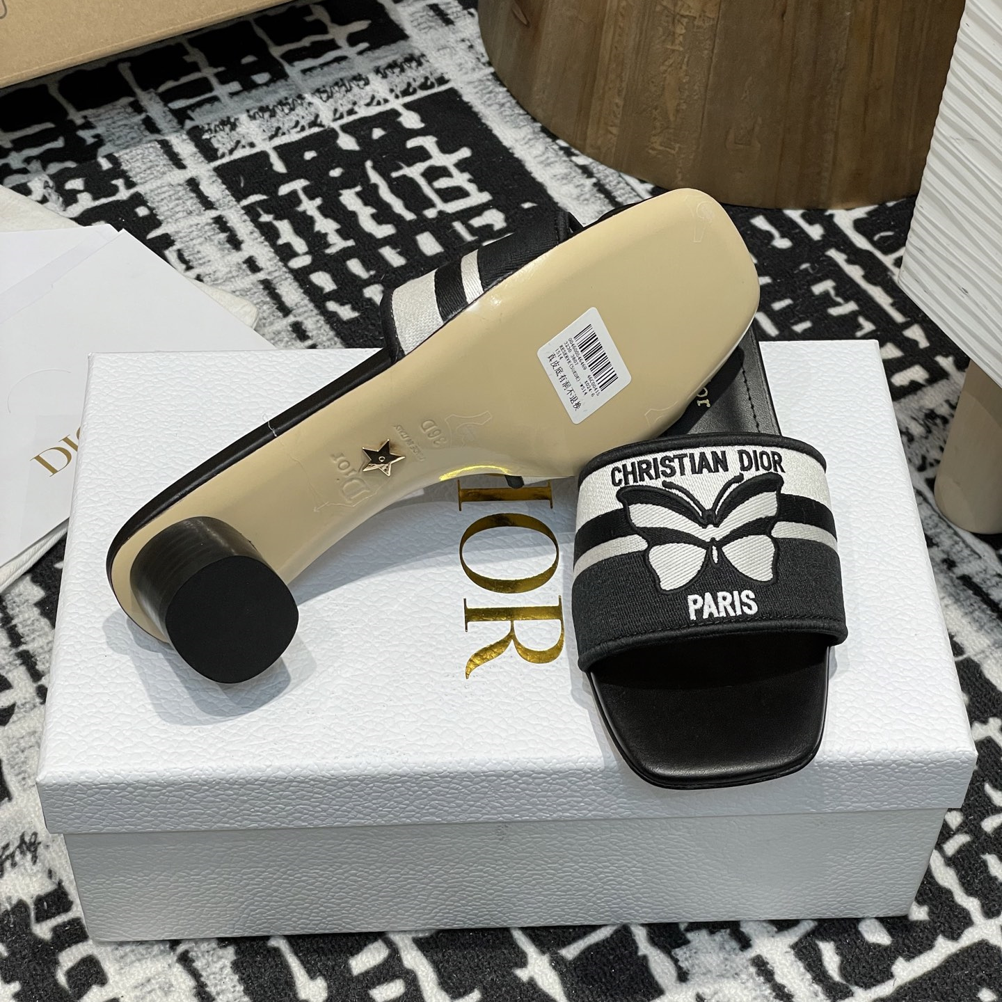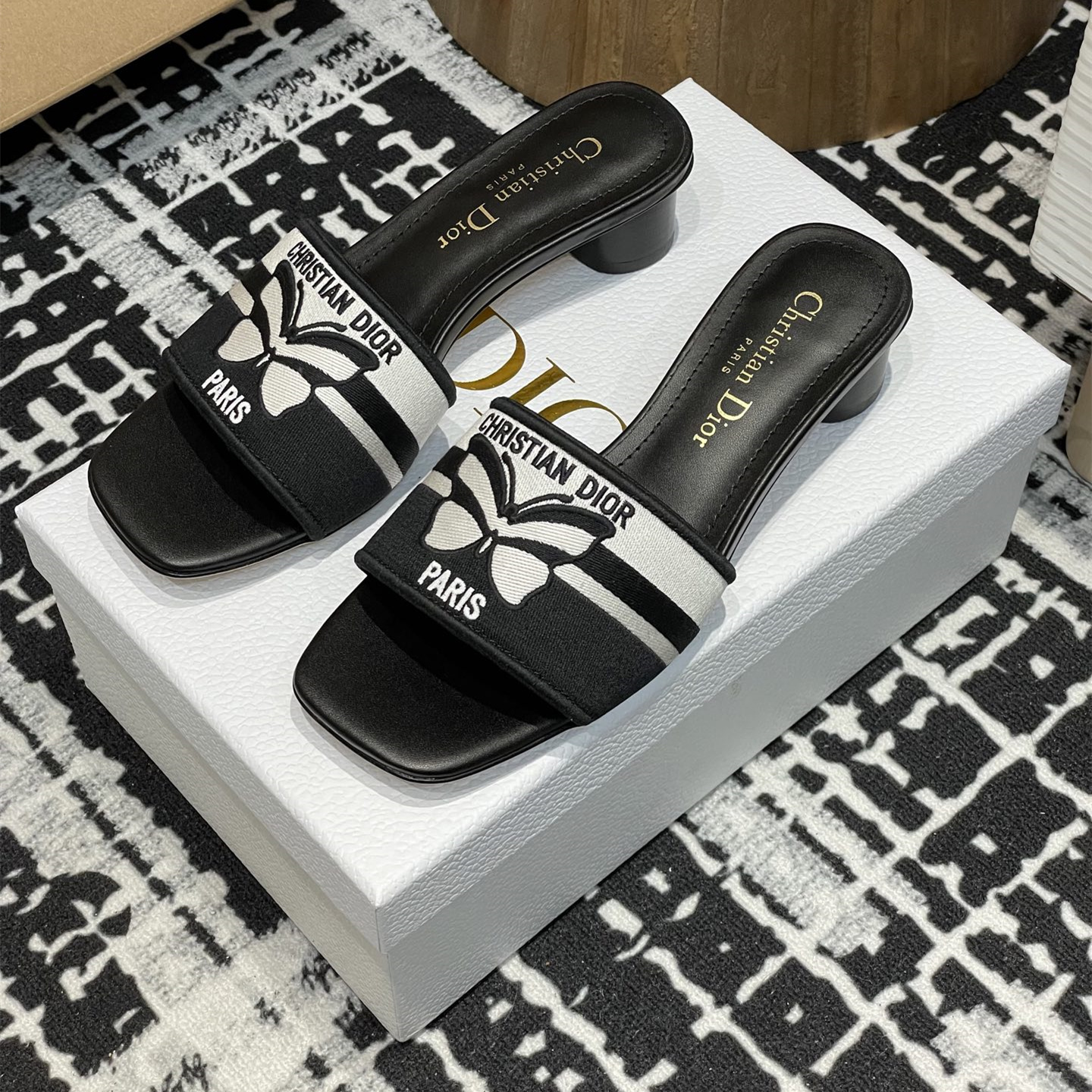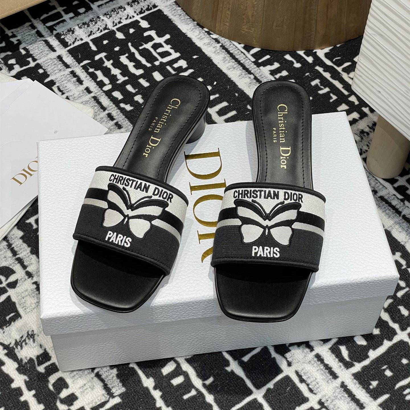 高仿Dior*Evolution系列KCQ234套腳一體短跟拖鞋蝴蝶刺繡免檢版