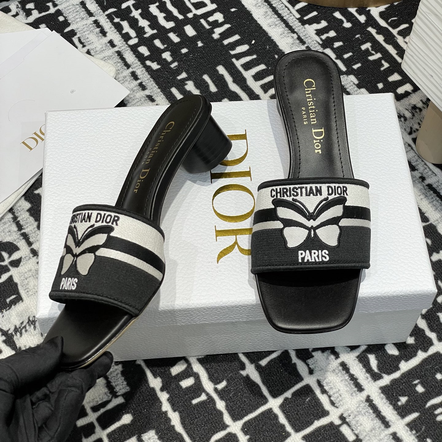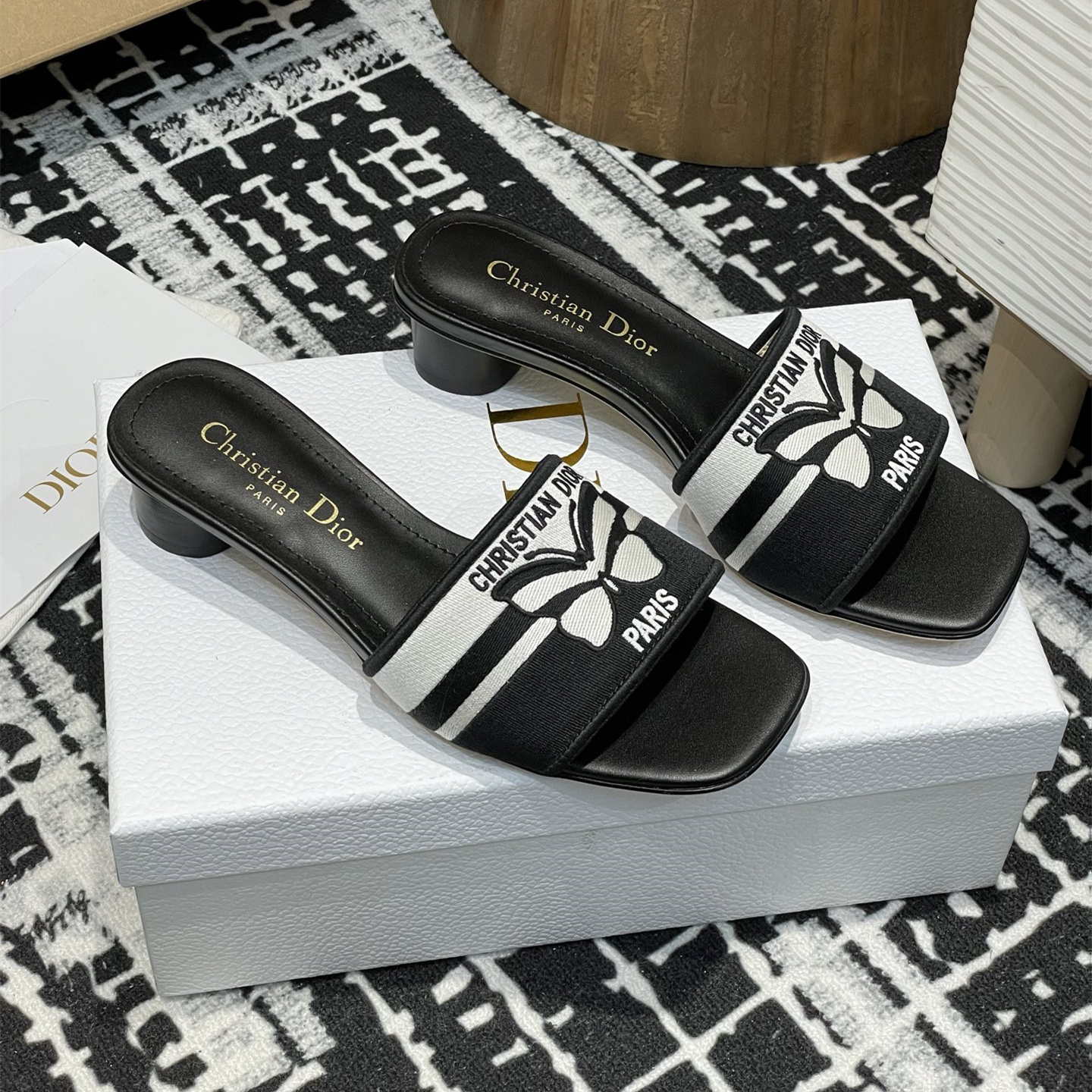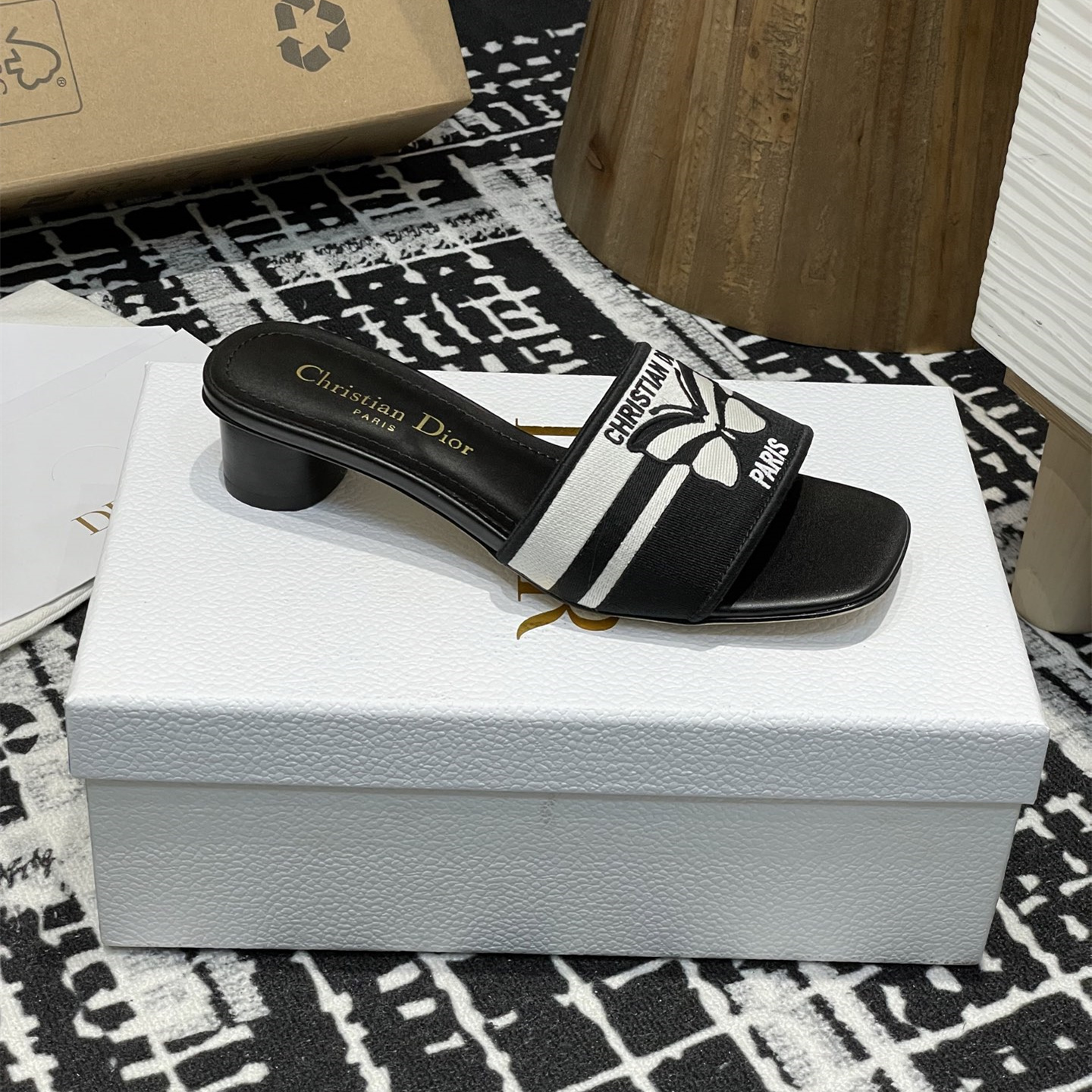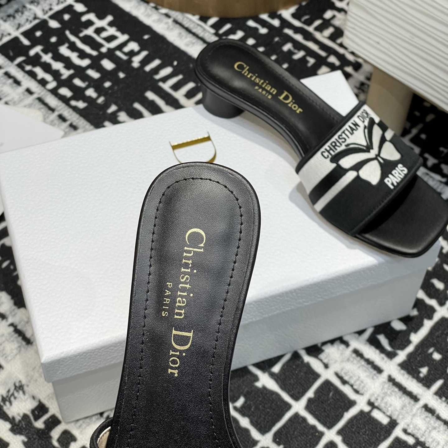 高仿Dior*Evolution系列KCQ234套腳一體短跟拖鞋蝴蝶刺繡免檢版