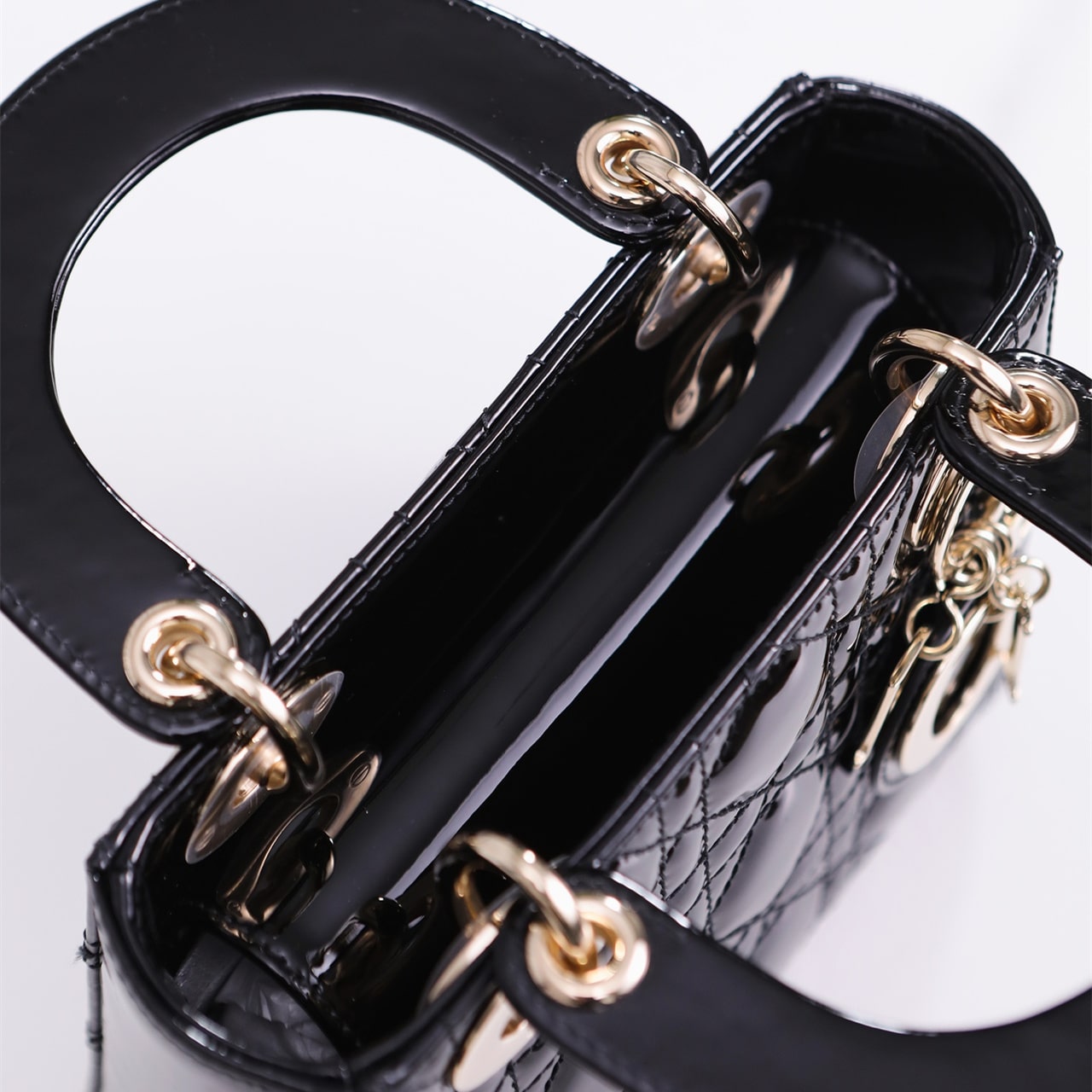 高仿Dior全新推出Lady系列漆面牛皮Mini款,整個包型結構與以往的戴妃手袋無任何變化,其區別在於材質和尺寸.採用同步專櫃一致的小牛皮材質,而外觀部分的漆面組成是通過後期工藝形成的漆面效果,光澤度與手感具有明顯的亮點,其中就包含了硬質的手感.