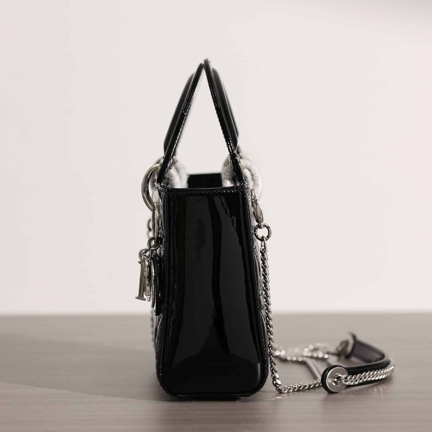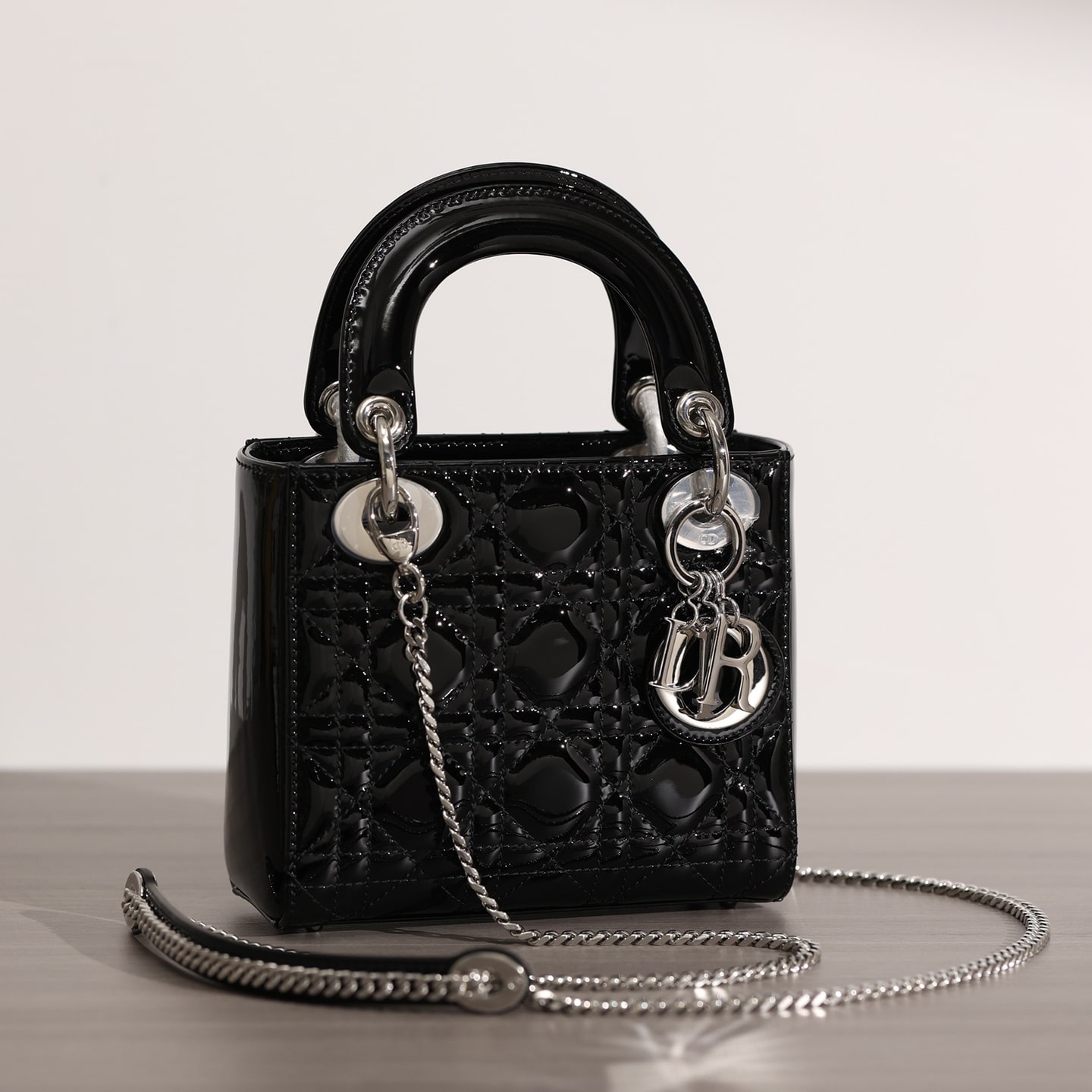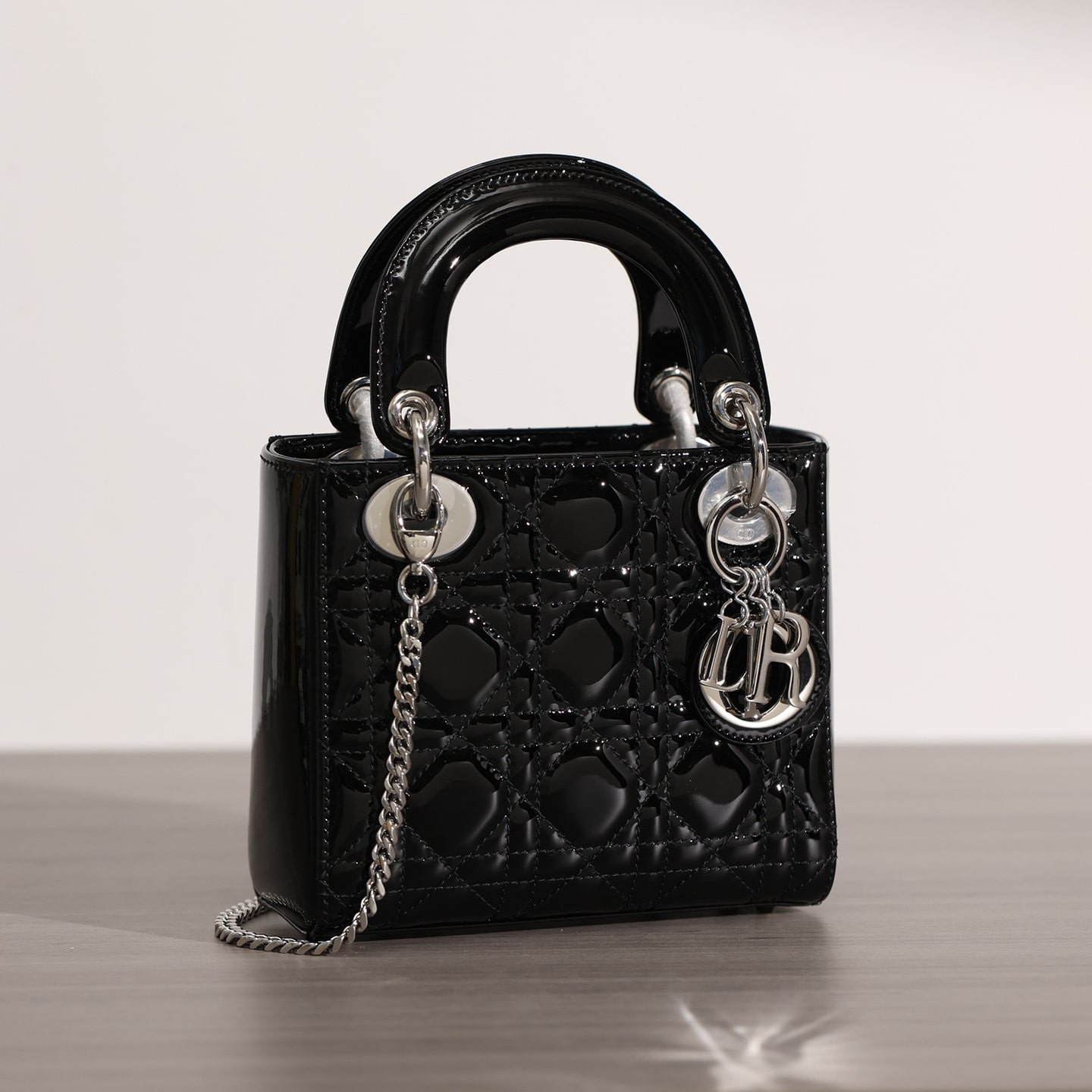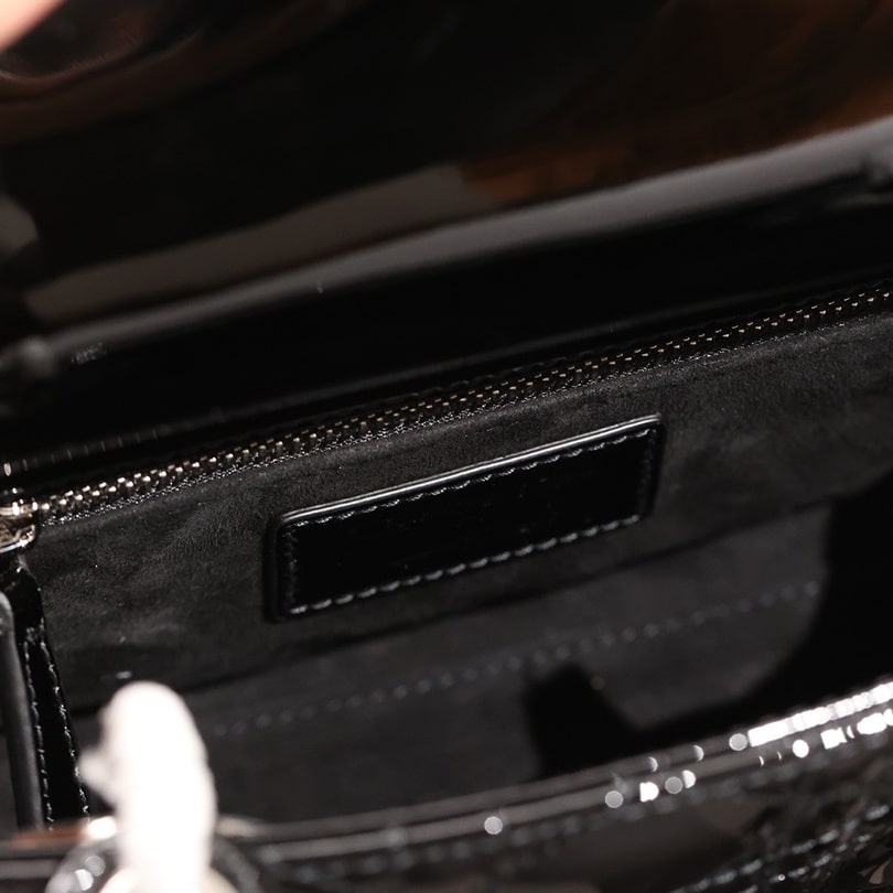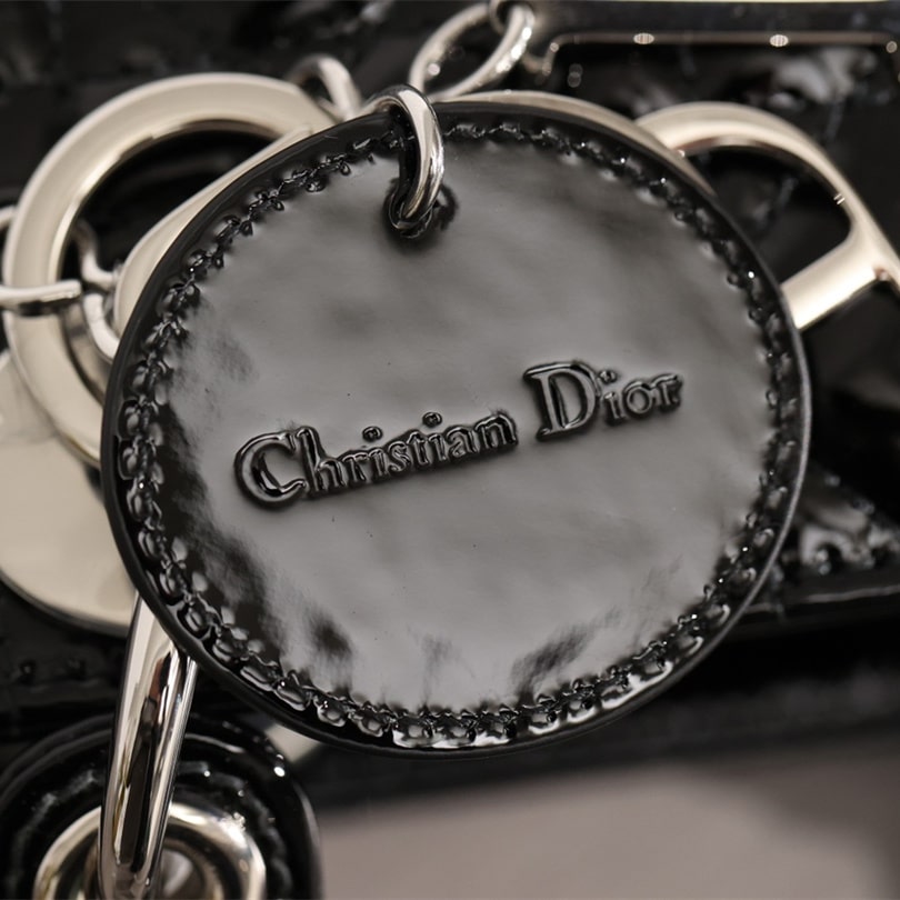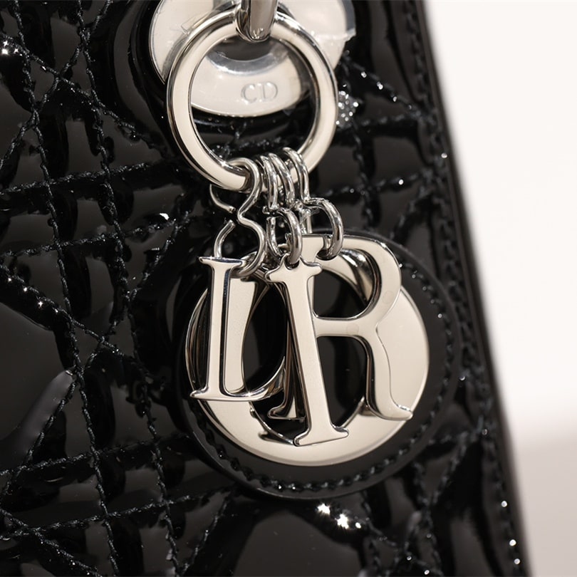 高仿Dior全新推出女士手袋戴妃包款,這一隻絲滑流暢的包身結構賦予了一種靚麗的視覺感.採用進口小牛皮材質打造,不同以往柔軟適中的小羊皮材質,此次漆面小牛皮的手感會偏向硬質一點,方正的體積厚實的包身,詮釋出復刻版本的Lady系列依舊完美.