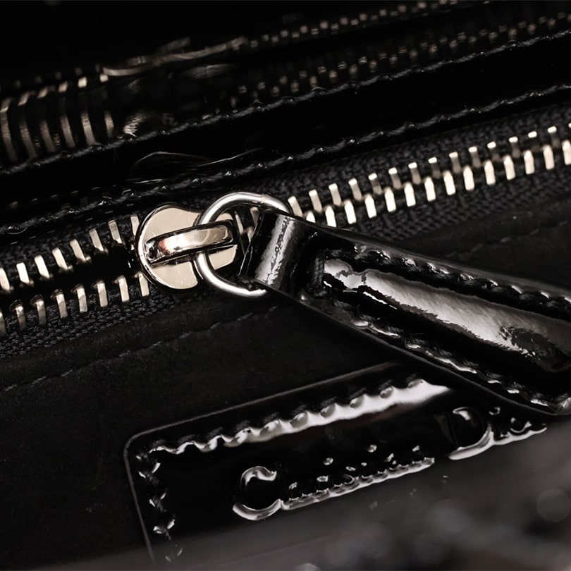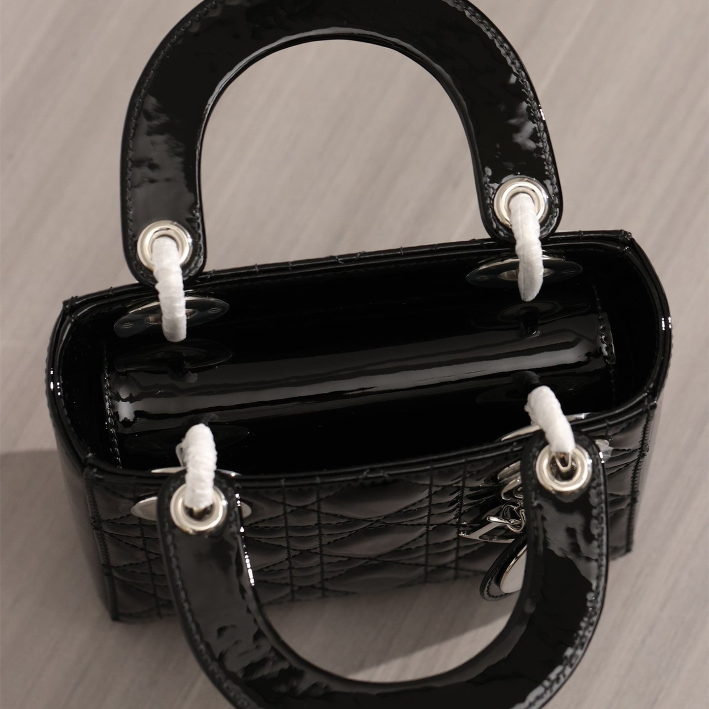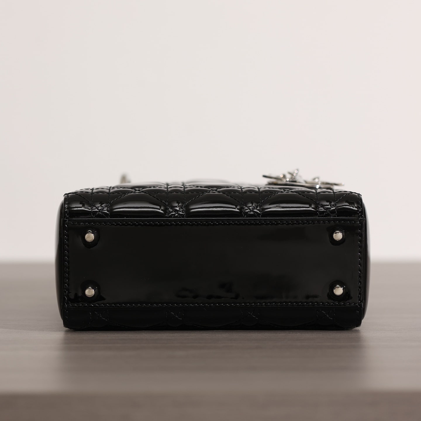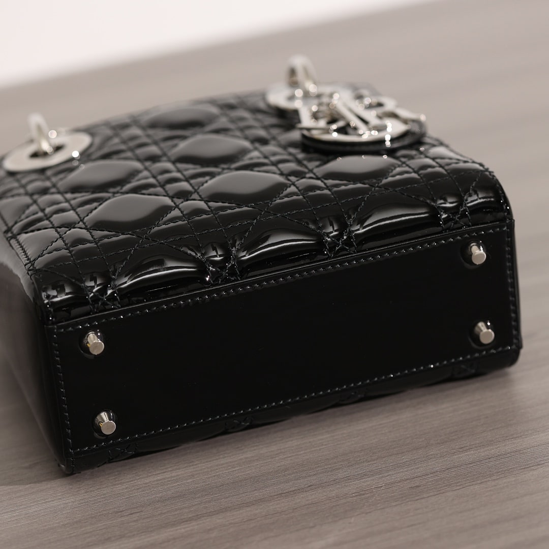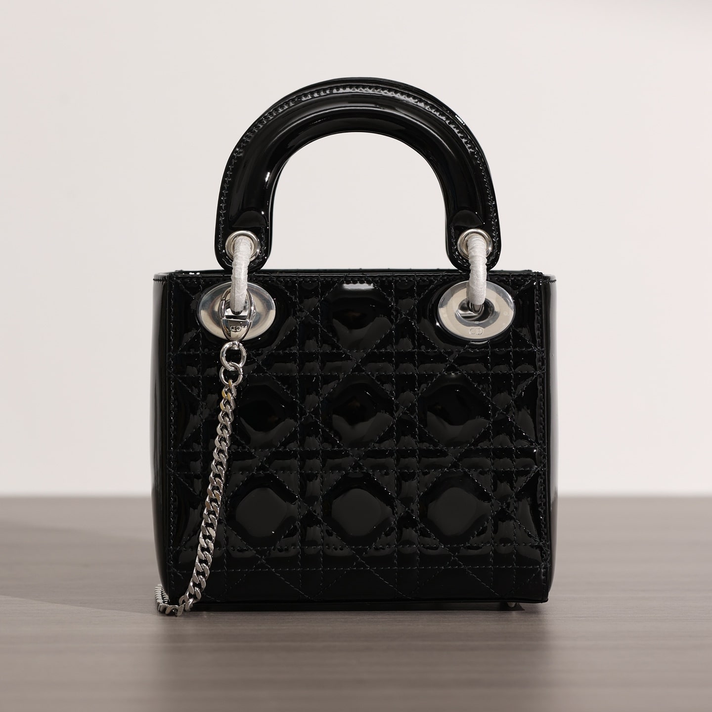 高仿Dior全新推出女士手袋戴妃包款,這一隻絲滑流暢的包身結構賦予了一種靚麗的視覺感.採用進口小牛皮材質打造,不同以往柔軟適中的小羊皮材質,此次漆面小牛皮的手感會偏向硬質一點,方正的體積厚實的包身,詮釋出復刻版本的Lady系列依舊完美.