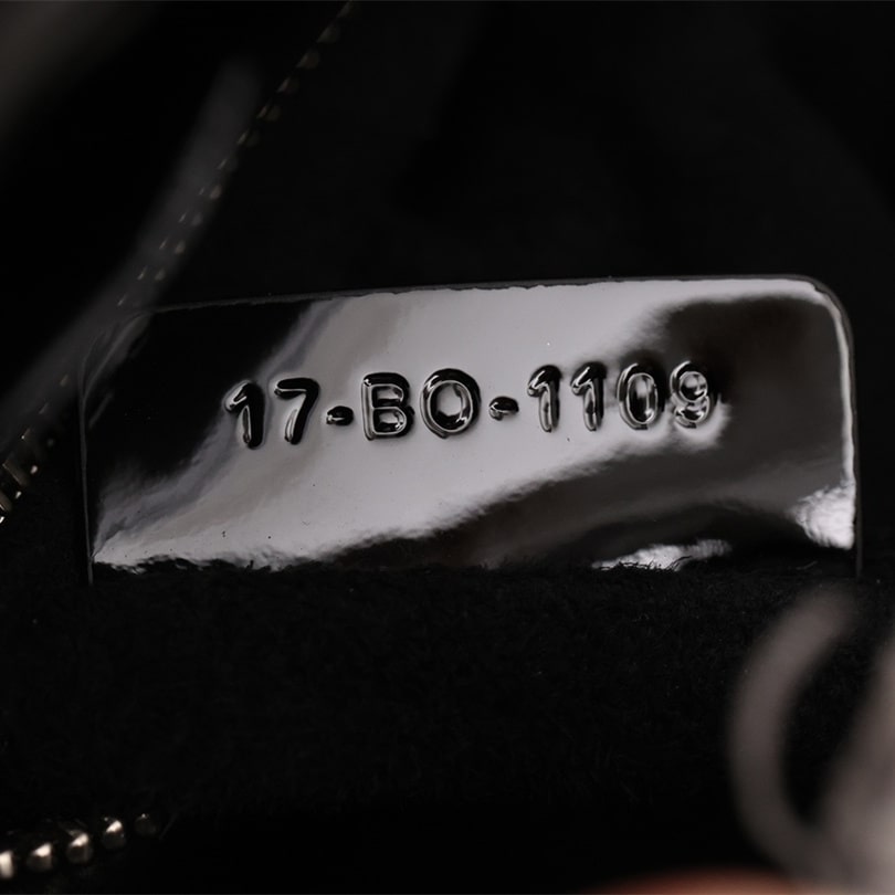 外觀部分的衍縫線藤格紋縫線,細膩有感突出了硬質包款在工藝上的苛刻嚴格.配備了原廠五金扣具,黑色漆面搭配銀扣,一種低調輕奢的風格.同時相關刻度刻度了CD與Dior字面,清晰無瑕疵.內置燙印LOGO標籤,每一隻高仿包款均可以做到同步專櫃一致.