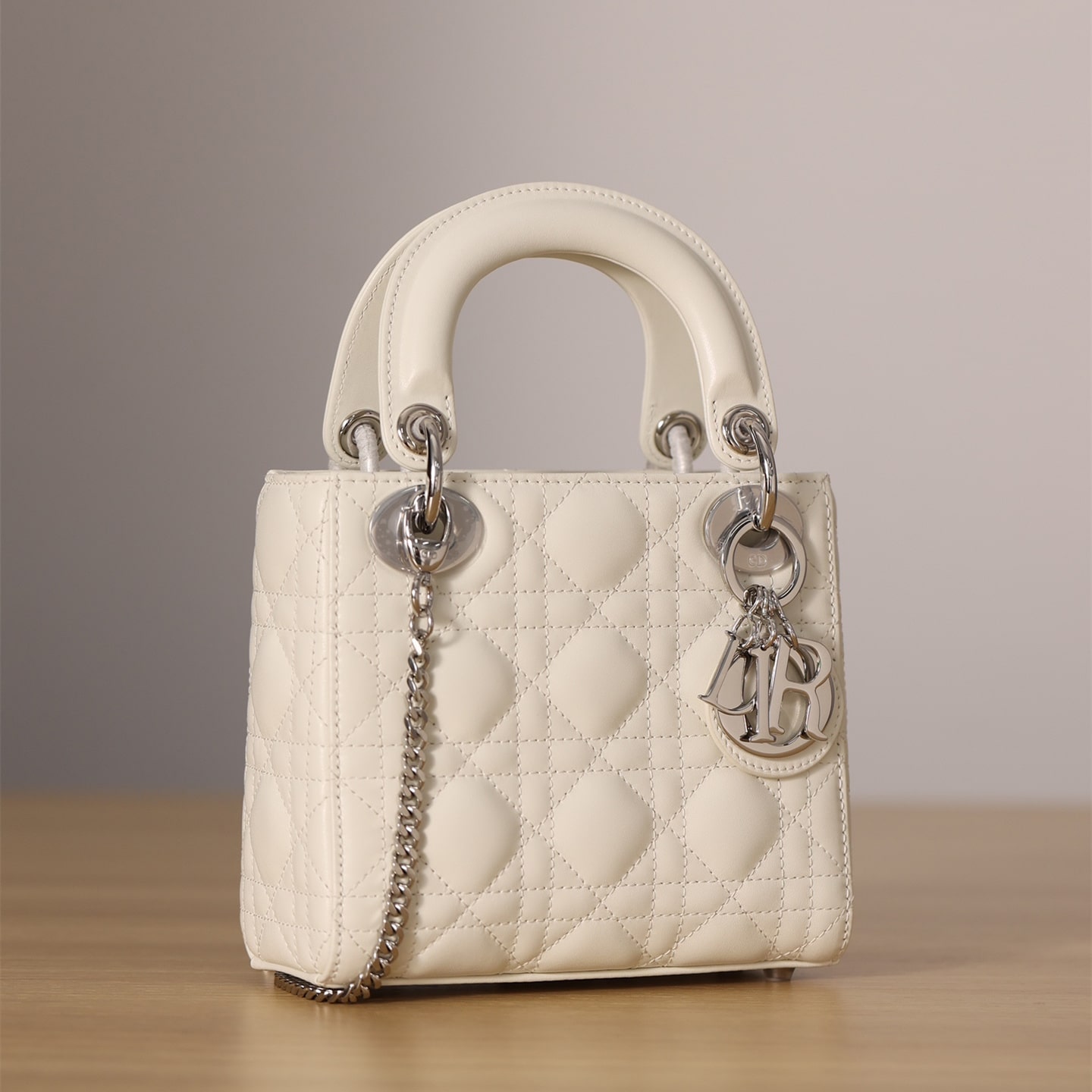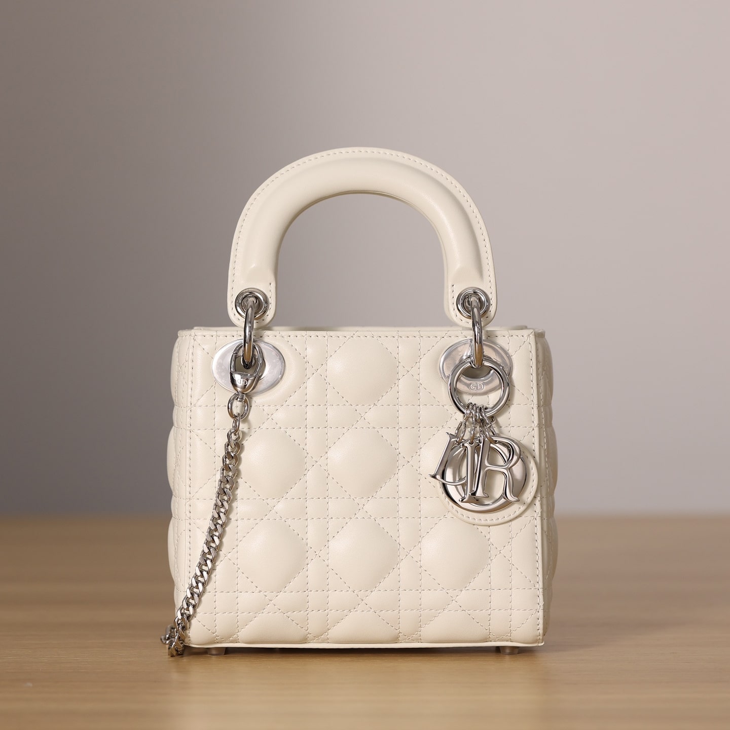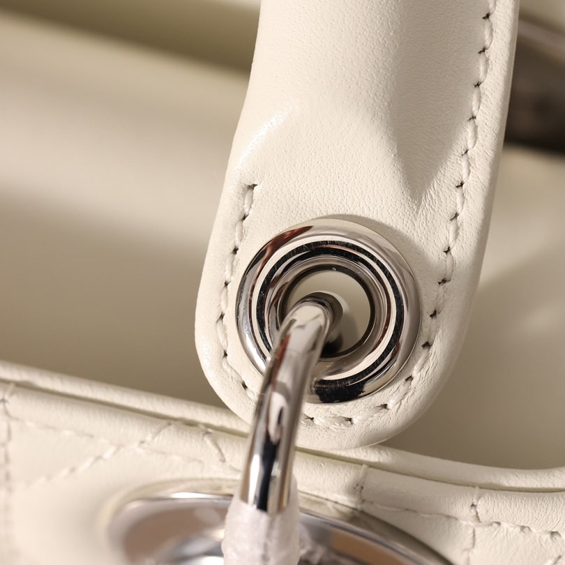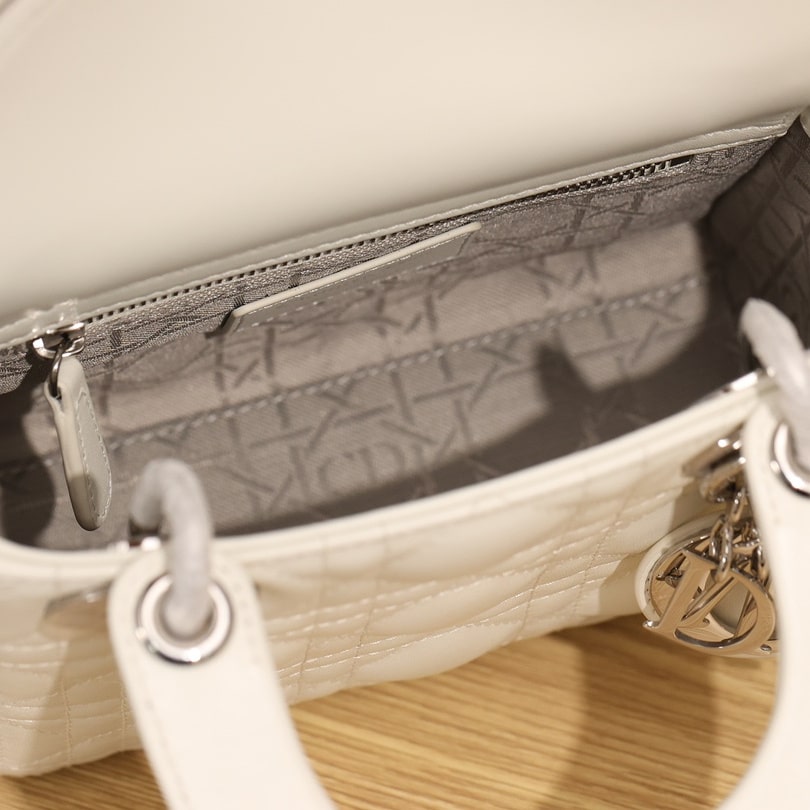 高仿迪奧Lady系列戴妃包全新推出Mini款式,涉及到多種配色,其中奶白色的手提袋呼籲最高,一種典雅白的風範詮釋了熱門手提袋的首選.外觀依舊保留了最原始且經典的三格衍縫線結構,搭配白色的銀扣五金,巨顯低調,非常符合日常穿搭使用.
