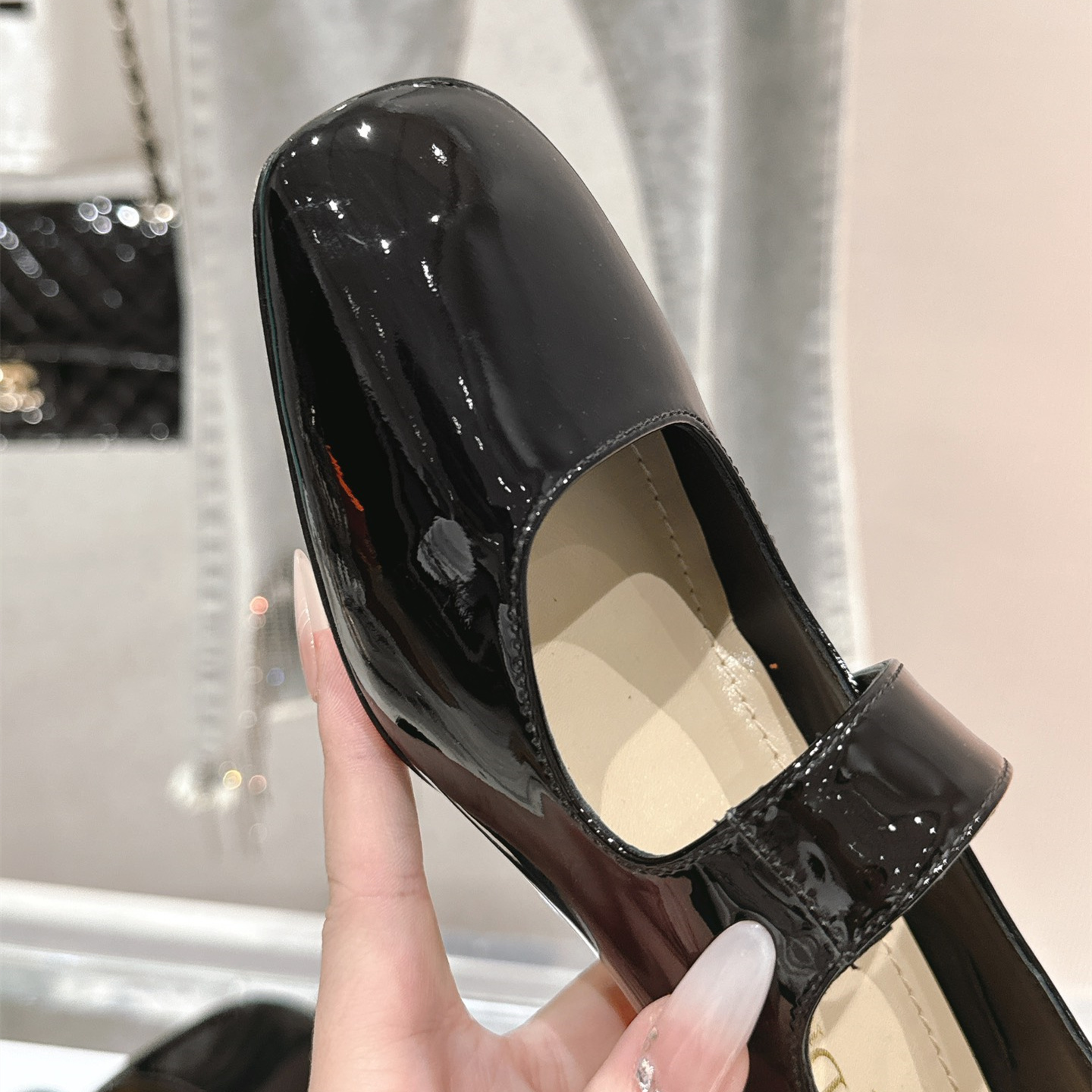 鞋面:進口小牛漆皮