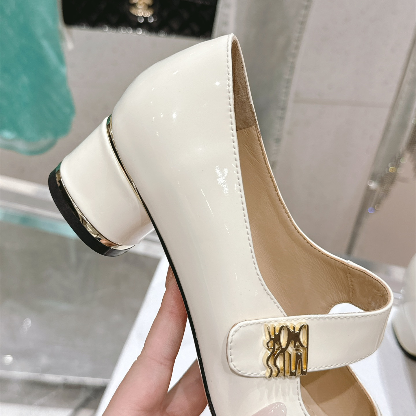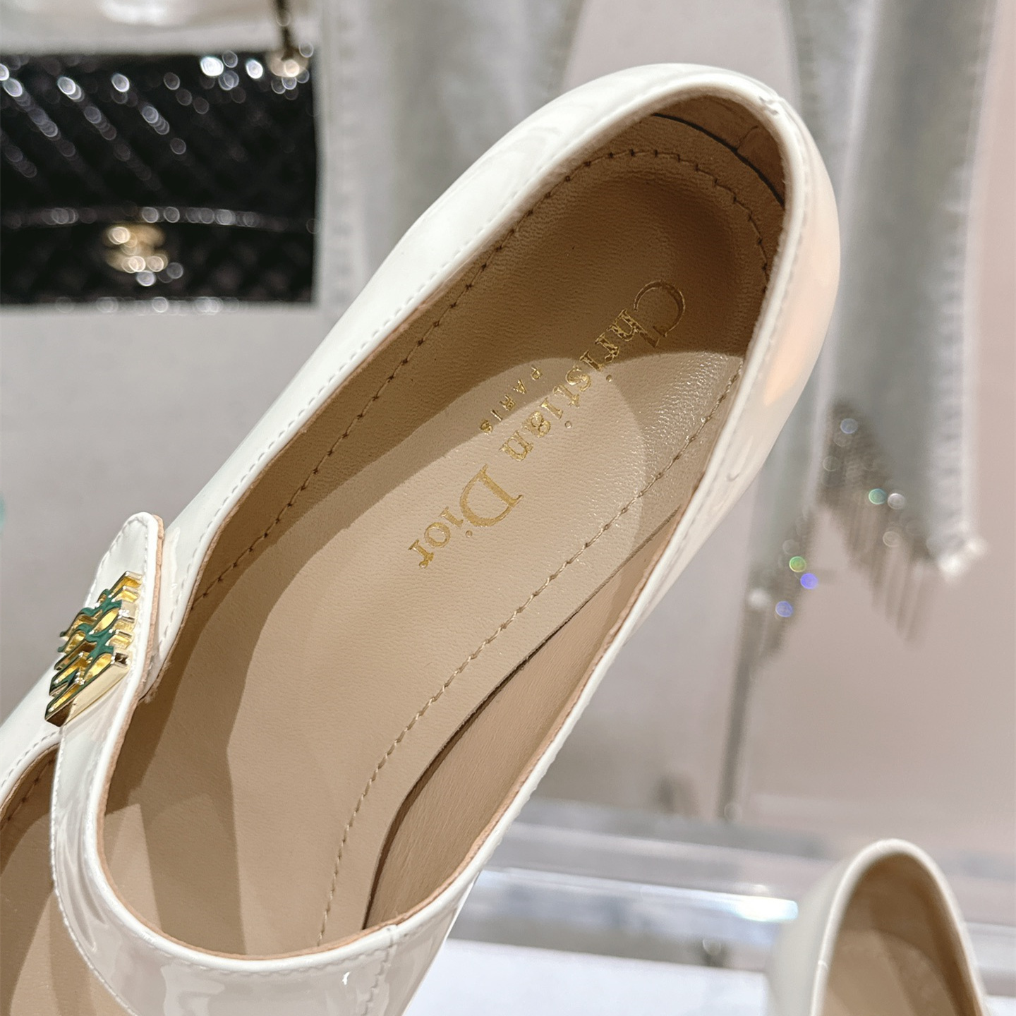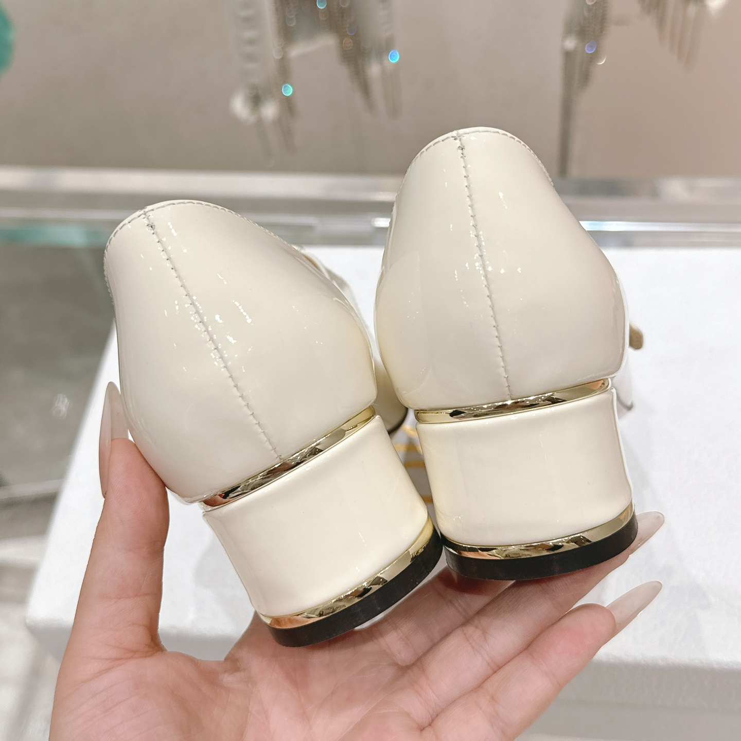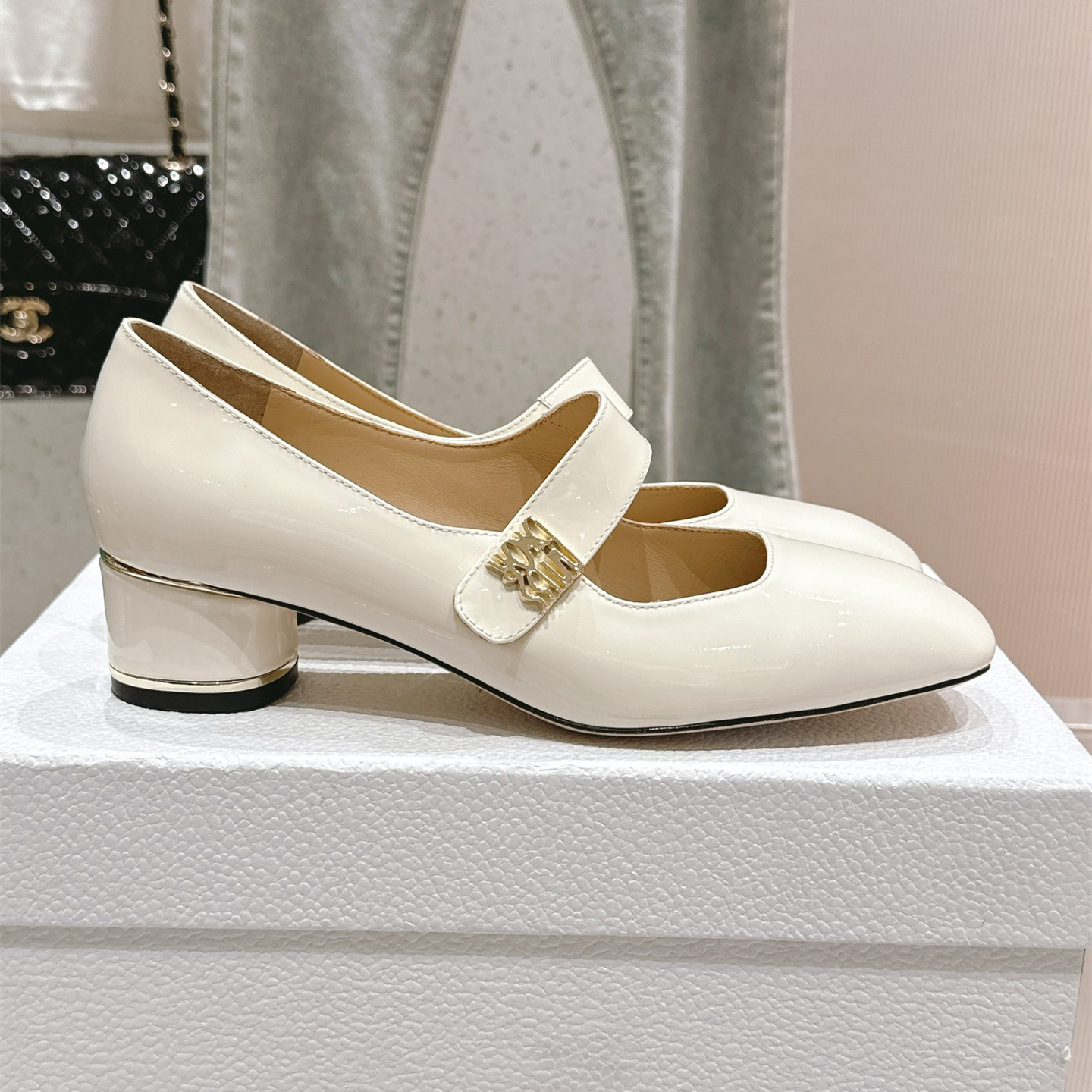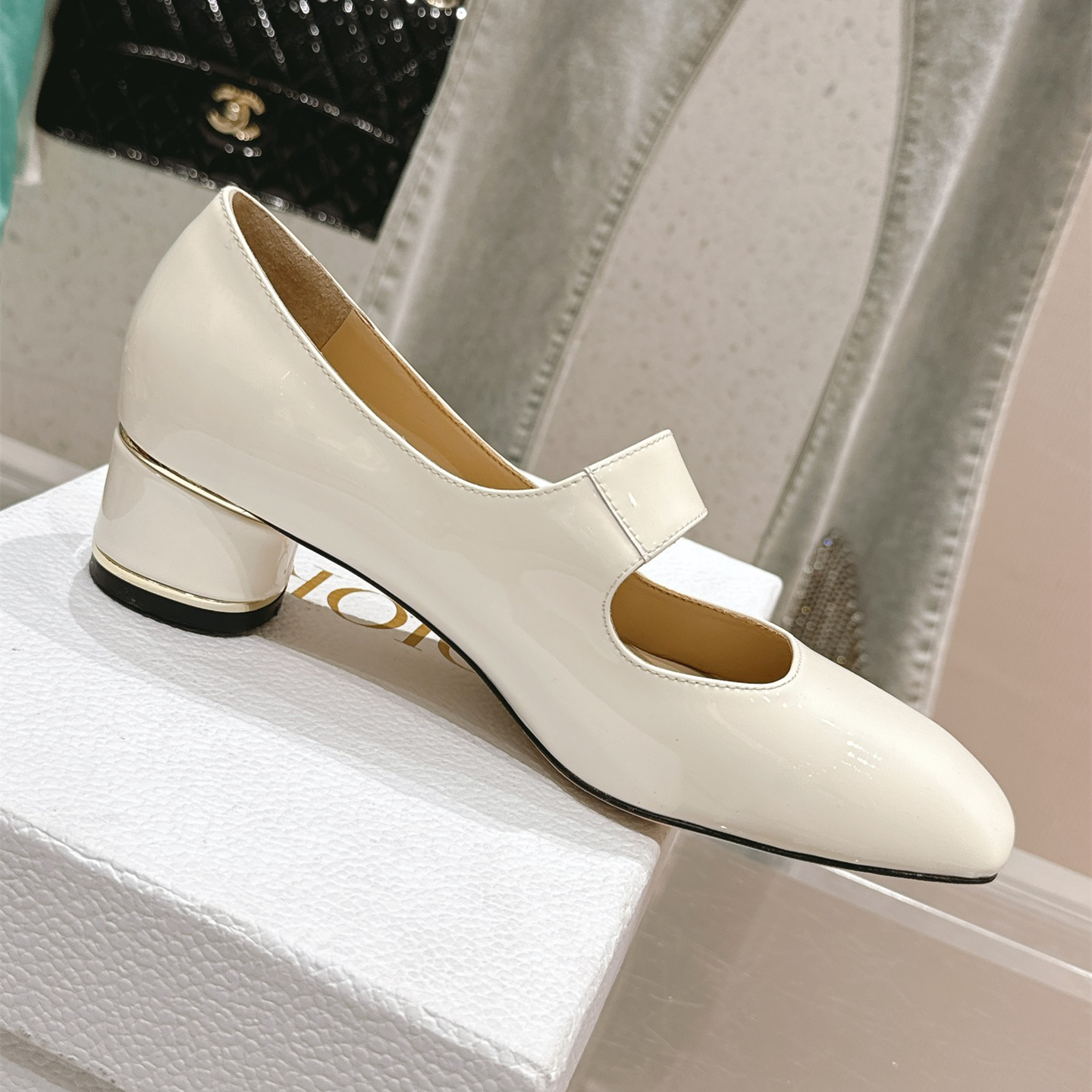 高仿Dior*Miss系列KDC269方頭粗跟單鞋4CM白色漆皮免檢版