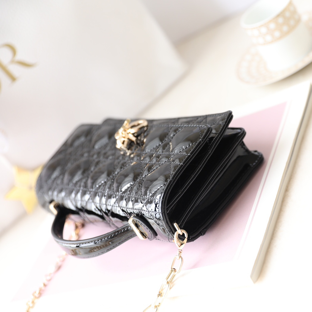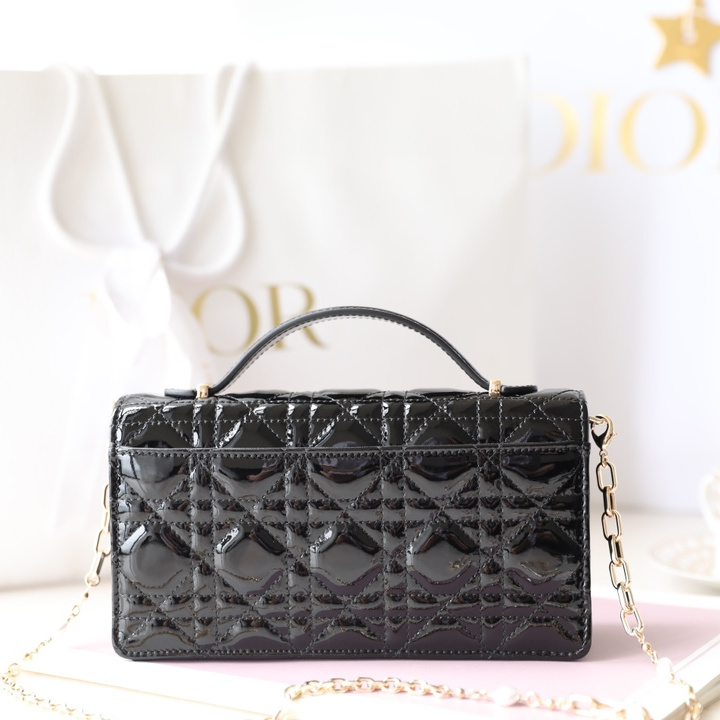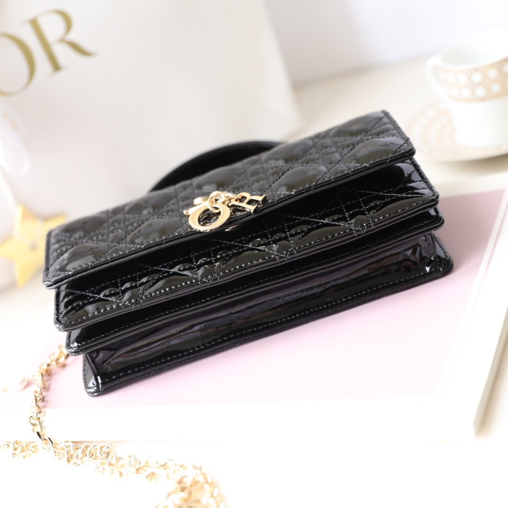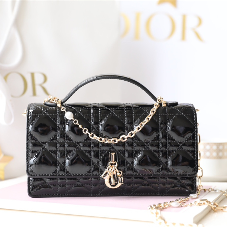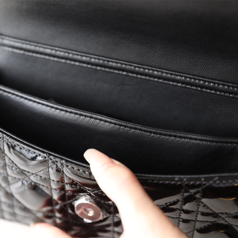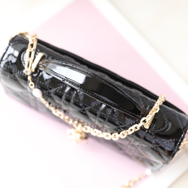這款高仿Dior手拿包是DIOR官網本季新品,頂部搭配手柄,優雅實用。採用漆面羊皮革精心制作,飾以藤格紋,翻蓋設計搭配 D.1.O.R.吊飾提升格調。款式實用,設有多個隔層和卡槽,可收納各種日常用品。頂部手柄,可拆卸鏈條以珠飾點綴更顯精致,可手提或斜挎。