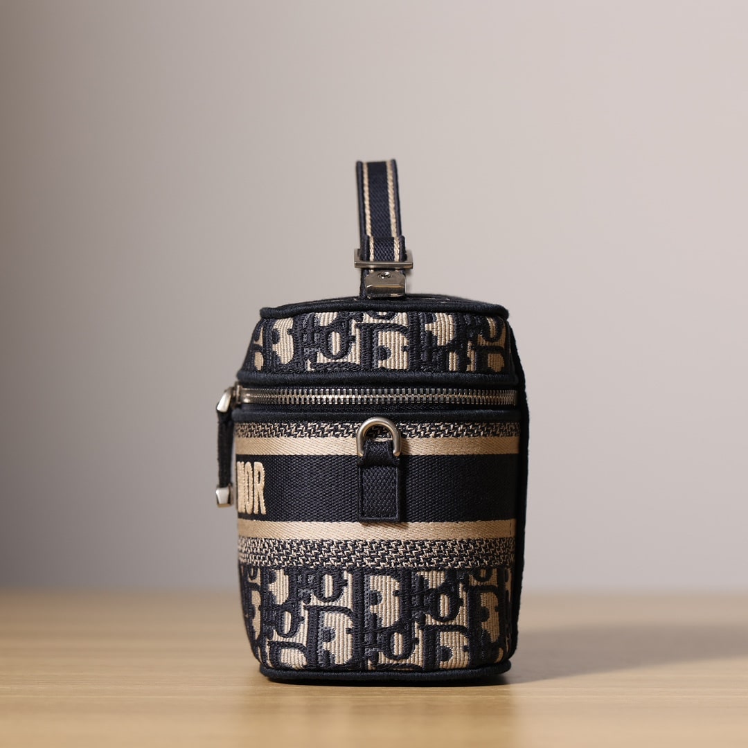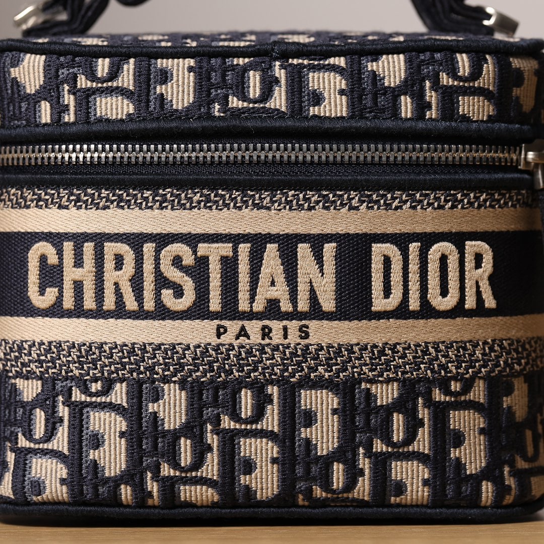 這款Dior*TravelVanity手袋通體飾以藍色Oblique印花,正面飾以Christian*Dior*Paris標誌,搭配可拆卸克調節的刺繡肩帶,復刻工藝層面是使用到目前高科技工藝打造,激光技術打印,並不是此前的電腦打印技術,從花紋到刺繡部分均為1:1還原.