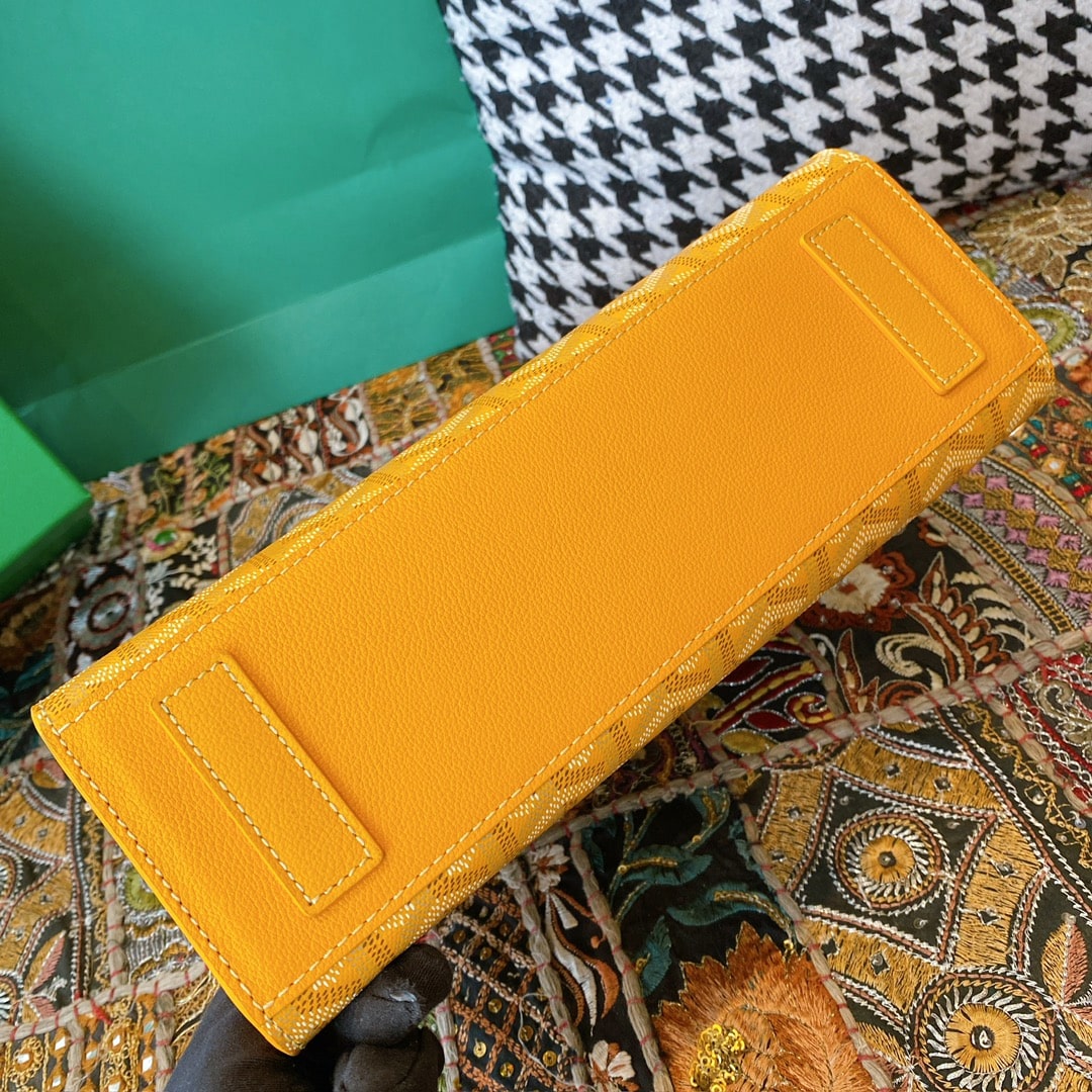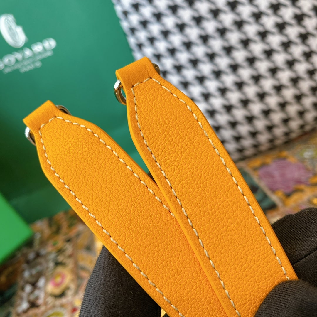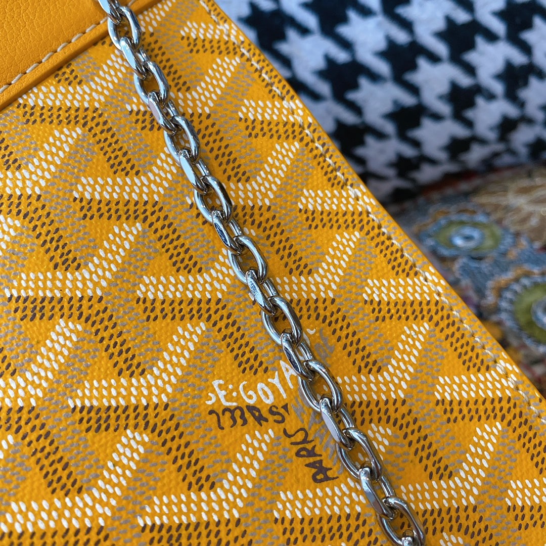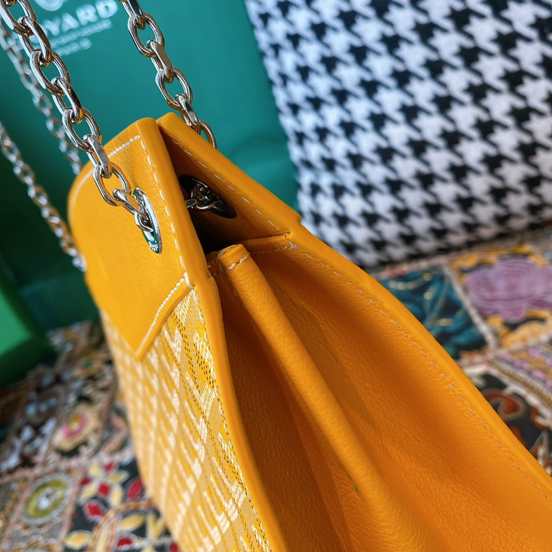 精仿戈雅包包香港網站全新推出2024年Rouette系列手提包款,全新的復古設計搭配新穎的黃配色,一股渲染的視覺感完美呈現.作為Goyard包包中單肩包的代表作,大容量空間可實現放置各類單品,如:化妝品,移動電源,錢夾,配備雙層夾層可利用空間非常便捷.