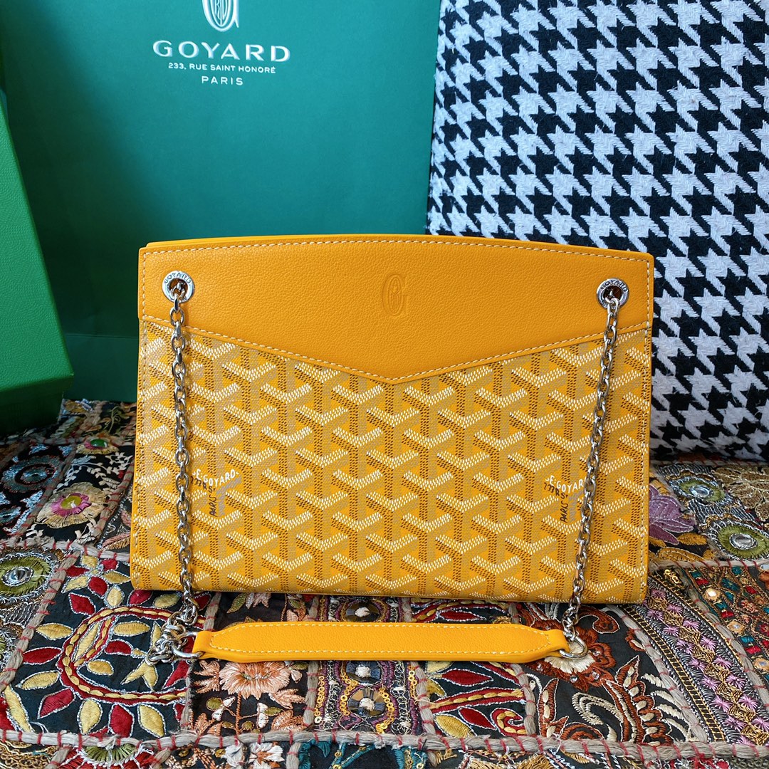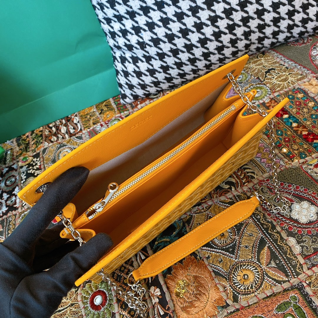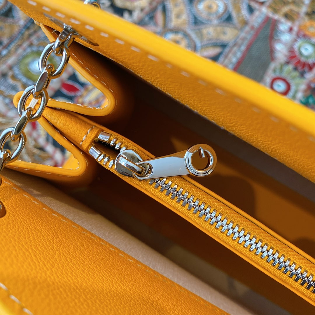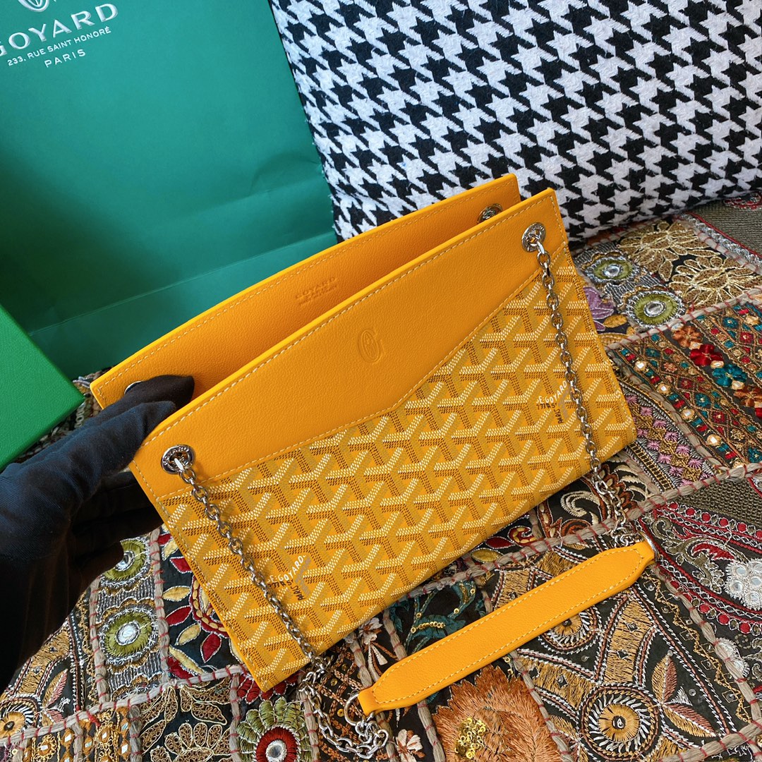 精仿戈雅包包香港網站全新推出2024年Rouette系列手提包款,全新的復古設計搭配新穎的黃配色,一股渲染的視覺感完美呈現.作為Goyard包包中單肩包的代表作,大容量空間可實現放置各類單品,如:化妝品,移動電源,錢夾,配備雙層夾層可利用空間非常便捷.