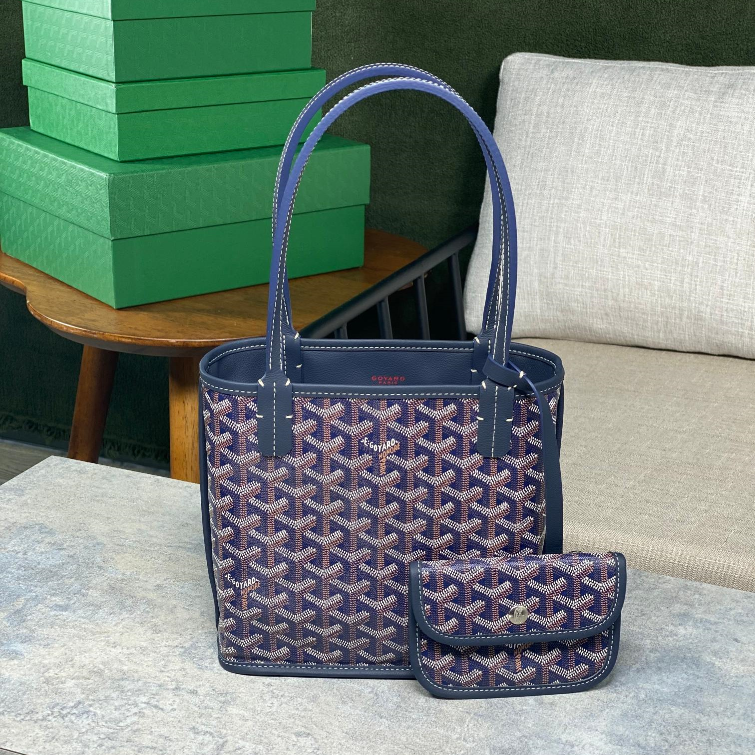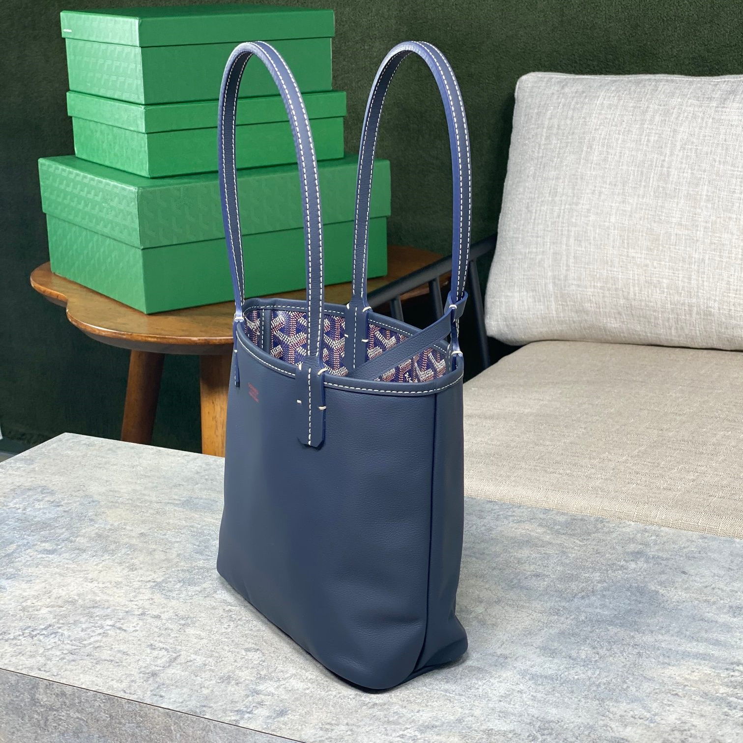 高仿Goyard*GY10184雙面兩用MiniTote手袋深藍免檢版