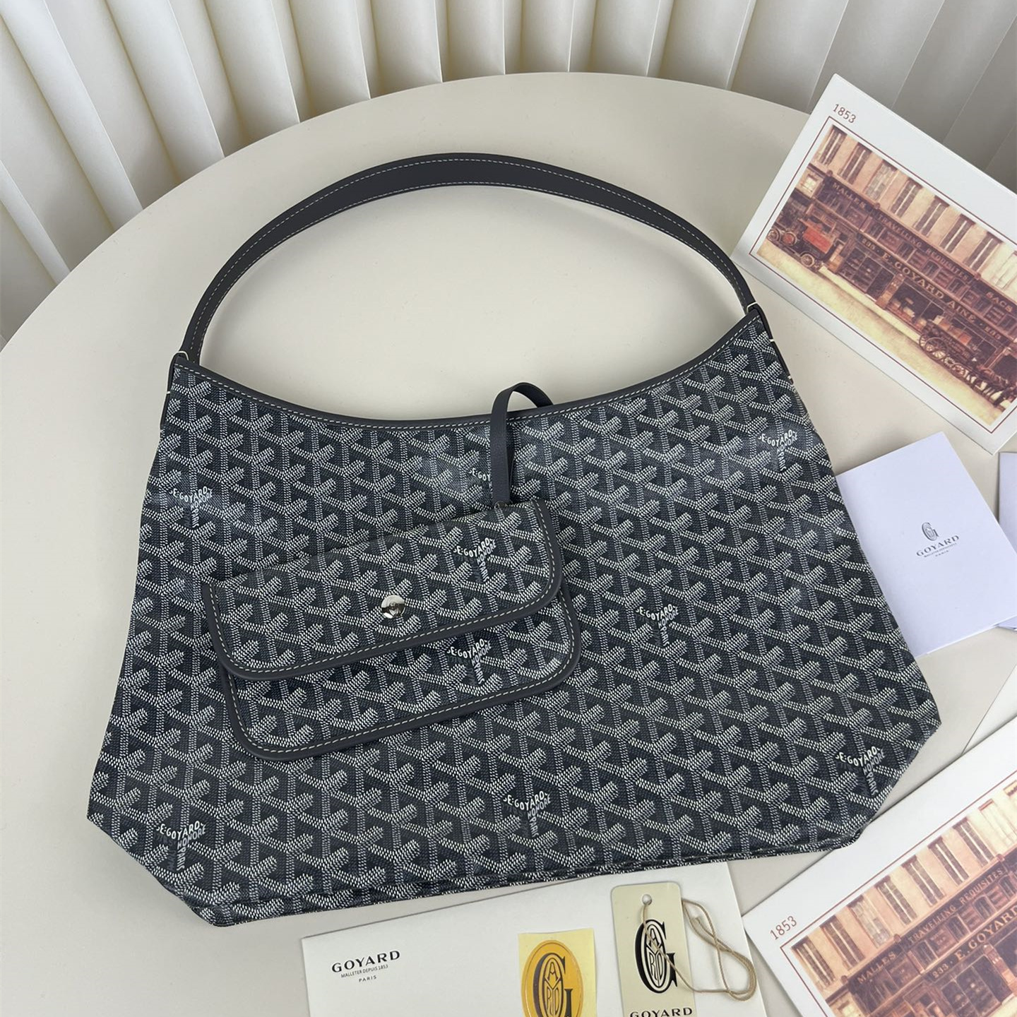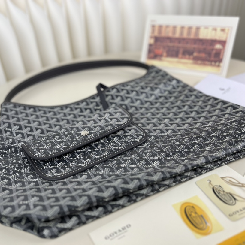 高仿Goyard Bohème Hobo系列單肩包~松弛感的盡頭是戈雅HOBO,簡約,隨性,非常適用於日常通勤的一款包,包自重輕盈柔軟,容量空間驚人,足以容納你的所有必需品,加長舒適皮革手柄,肩帶長度可滿足腋下包使用需求.自帶一個可拆卸小包,簡直夢中情包