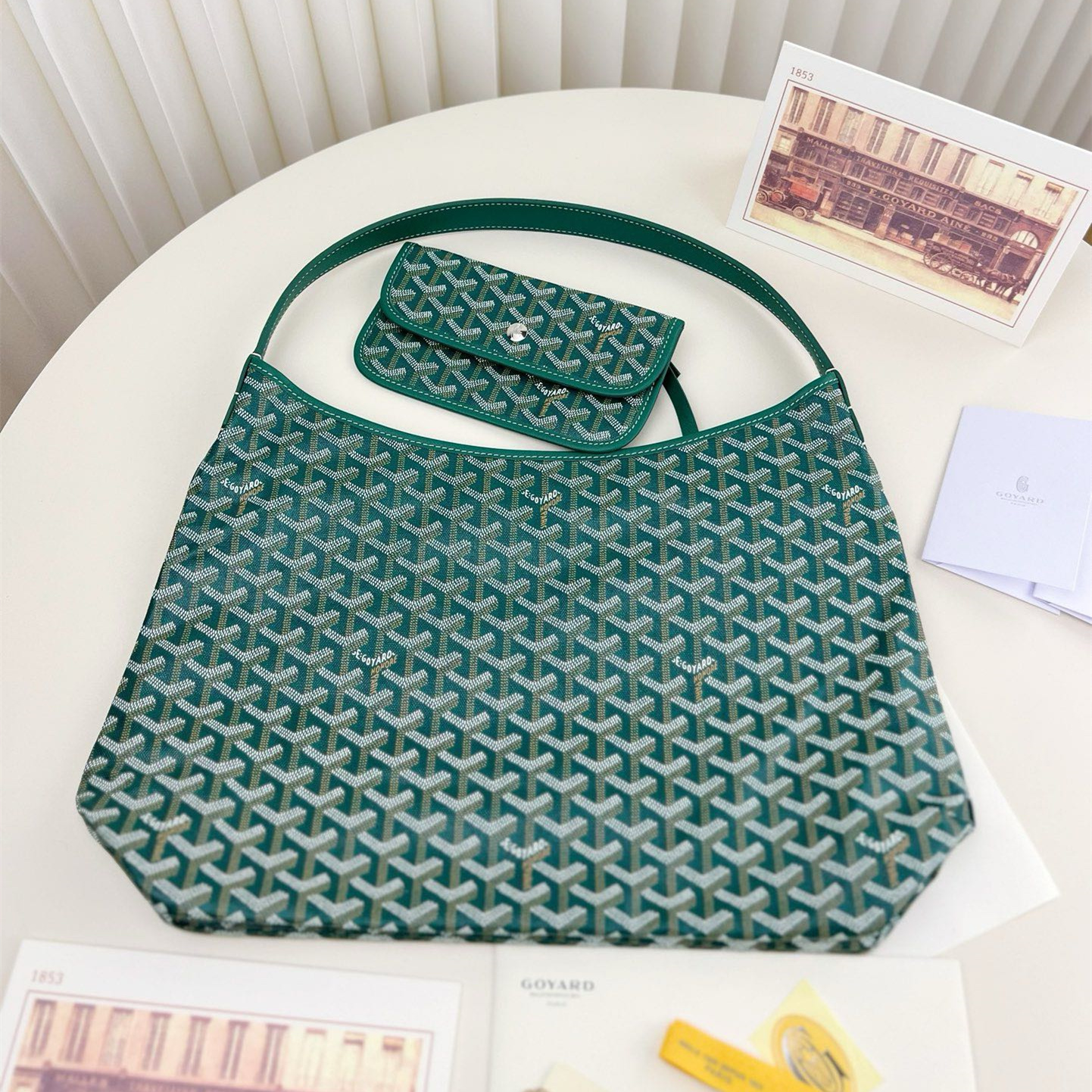 高仿Goyard*Hobo系列BOHEMEU單肩子母手袋綠色免檢版
