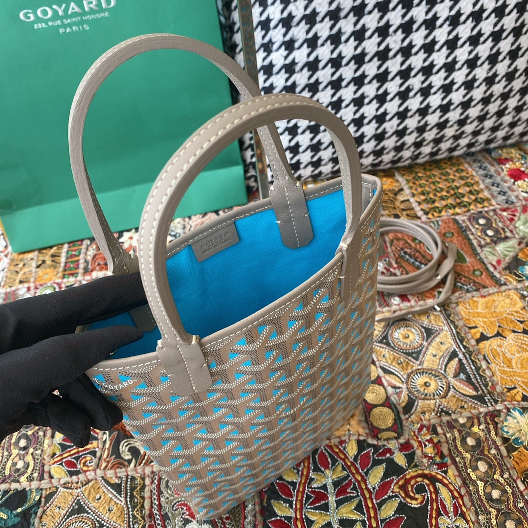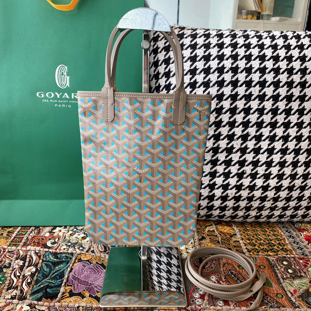 頂級高仿版本Goyard包包全新推出原單版本,目前高仿市面上獨家工藝使用源材質1:1打造同步原版一致的手拎包袋,正確使用到原廠帆布與法國進口小牛皮專屬打造包型結構.倒四角的經典設計詮釋了戈雅包包170週年限定版本的藍色配色.