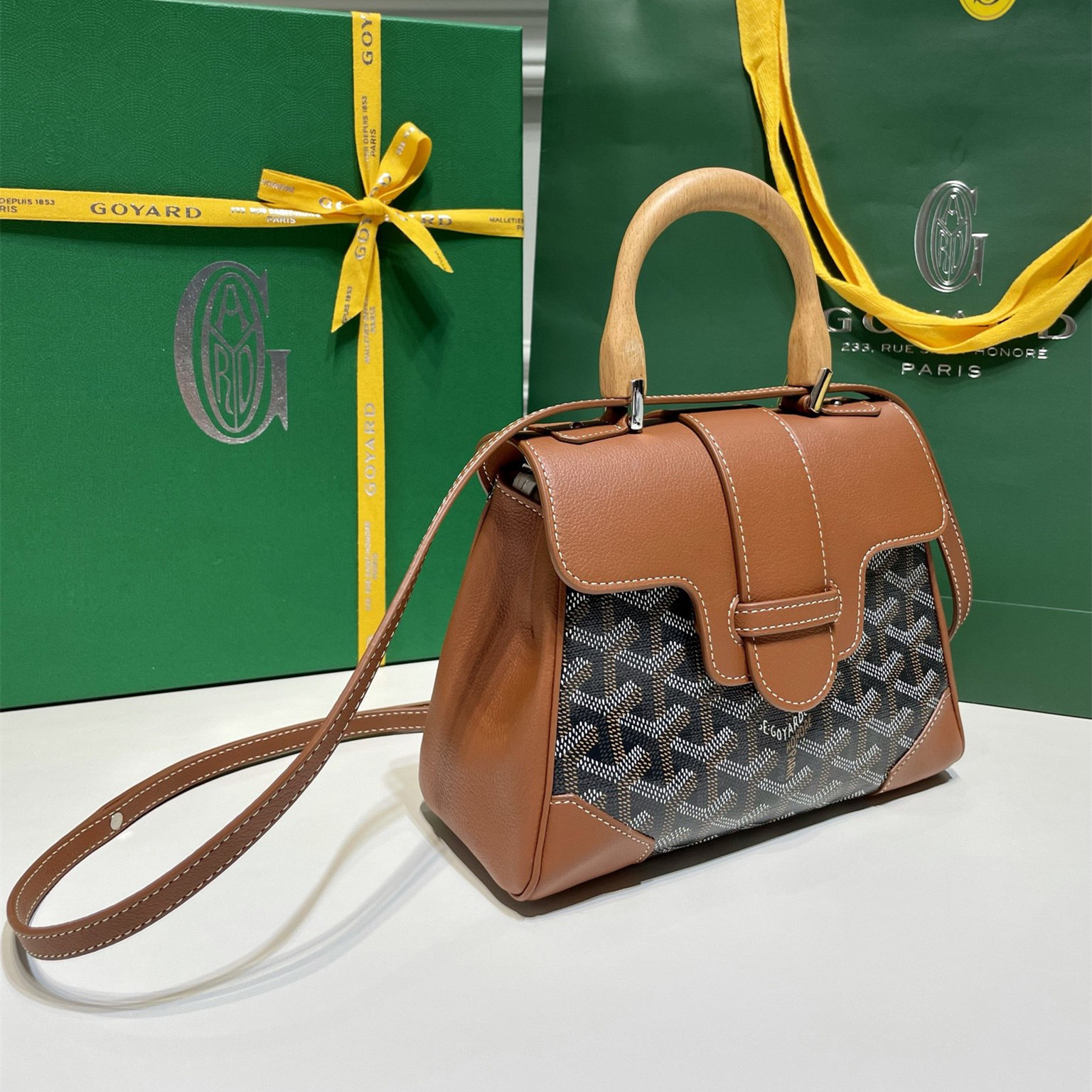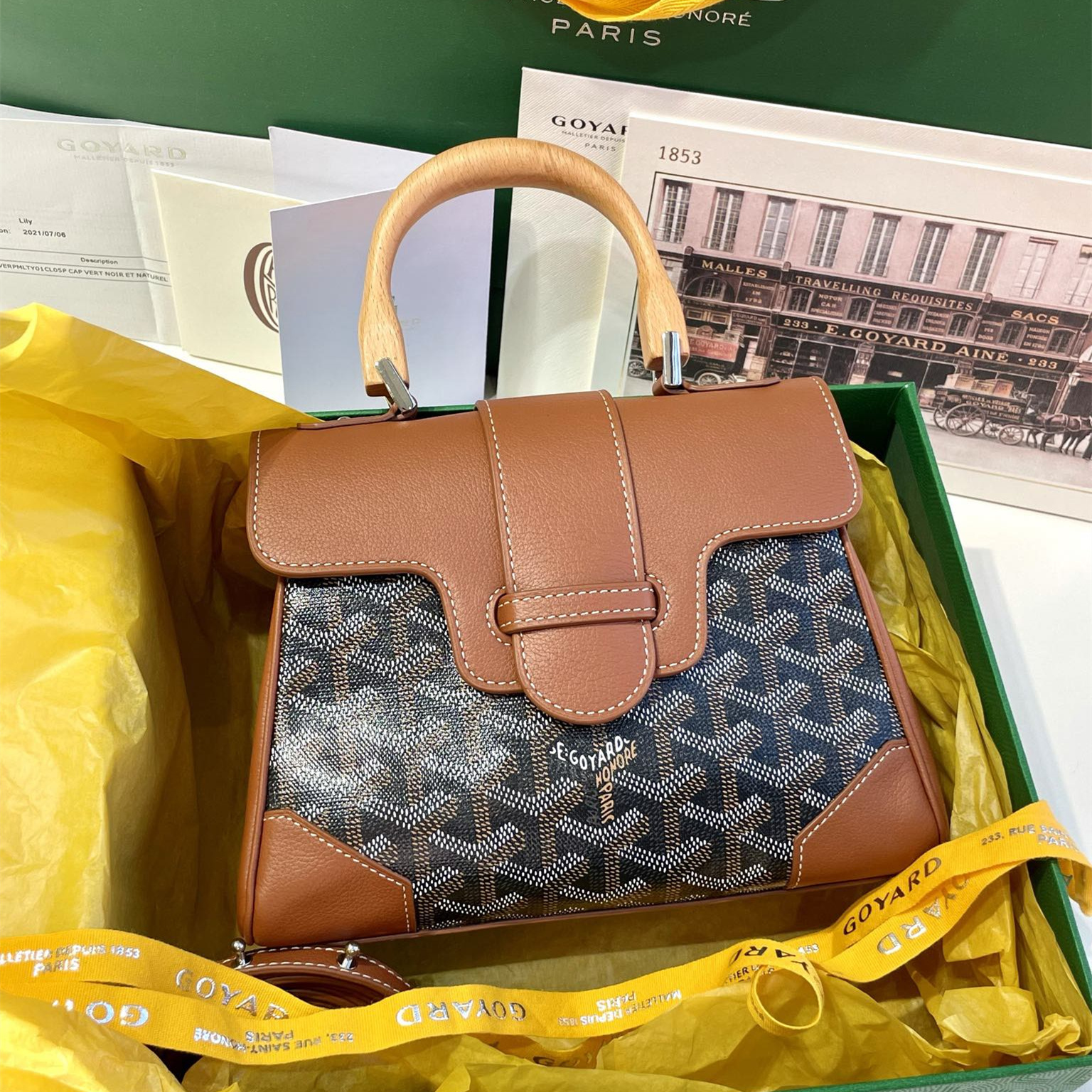 高仿Goyard*SAIGONQ櫸木手柄單肩包棕色免檢版