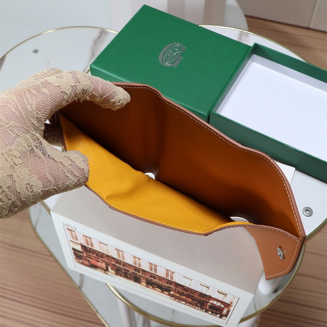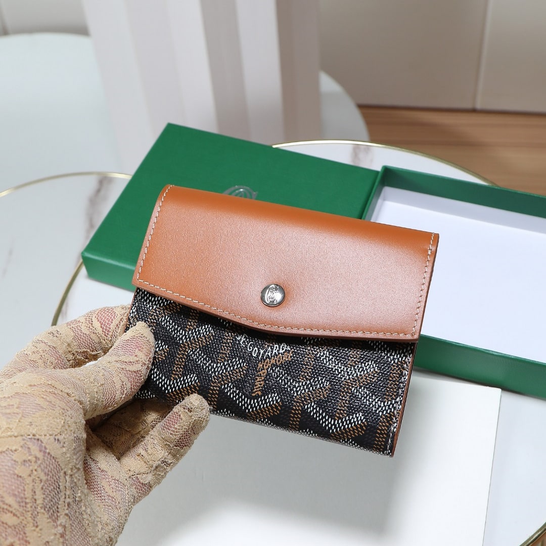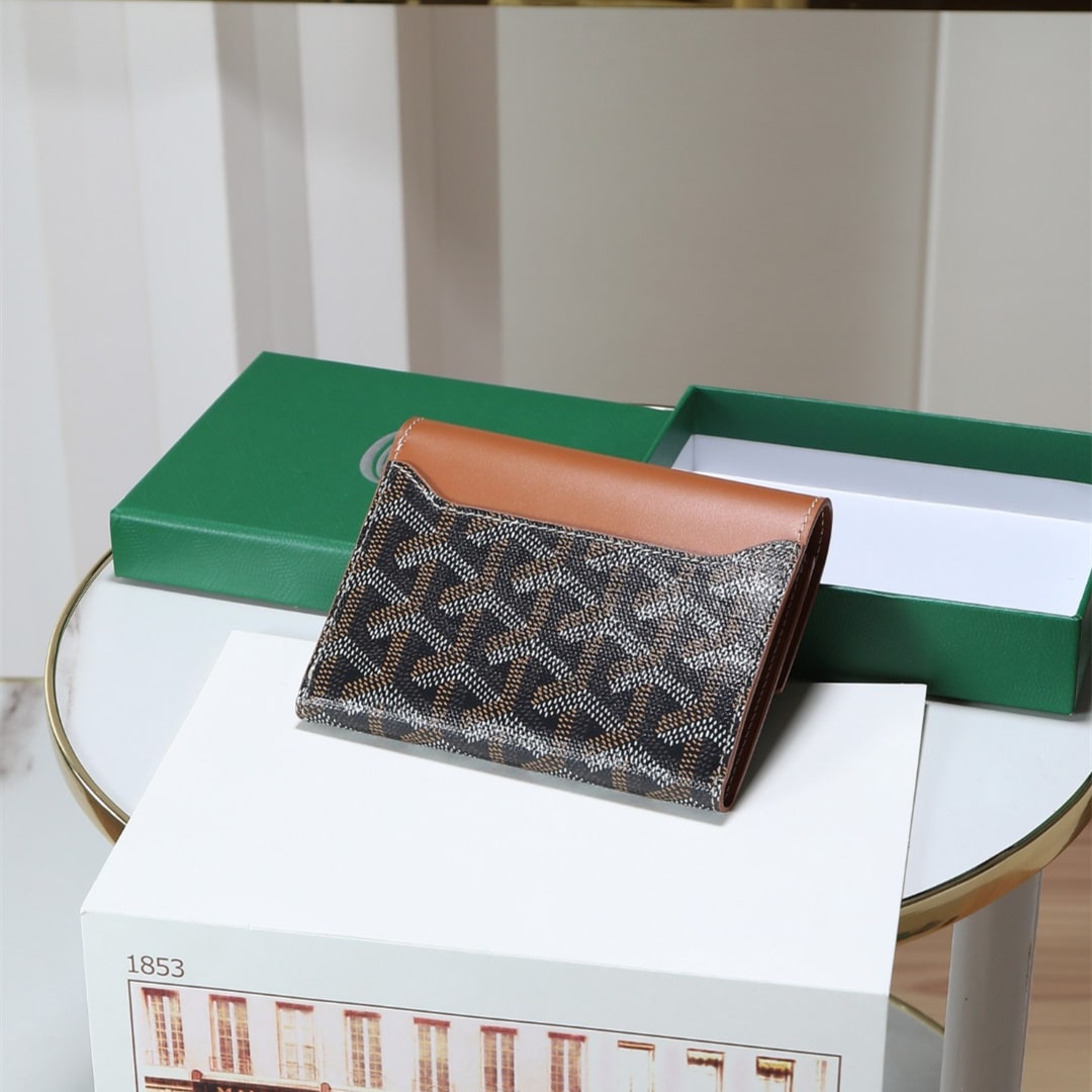 Gabriel系列是由Goyardine帆布配頭層小牛皮精心製作而成的獨特的信封狀三折錢包,采用輕巧緊湊的形式,具備大型錢包的所有功能:6個卡槽,2個口袋和紙幣夾,方便歸納存取,包身輕便小巧,可輕松隨包攜帶.內部山羊皮襯裏