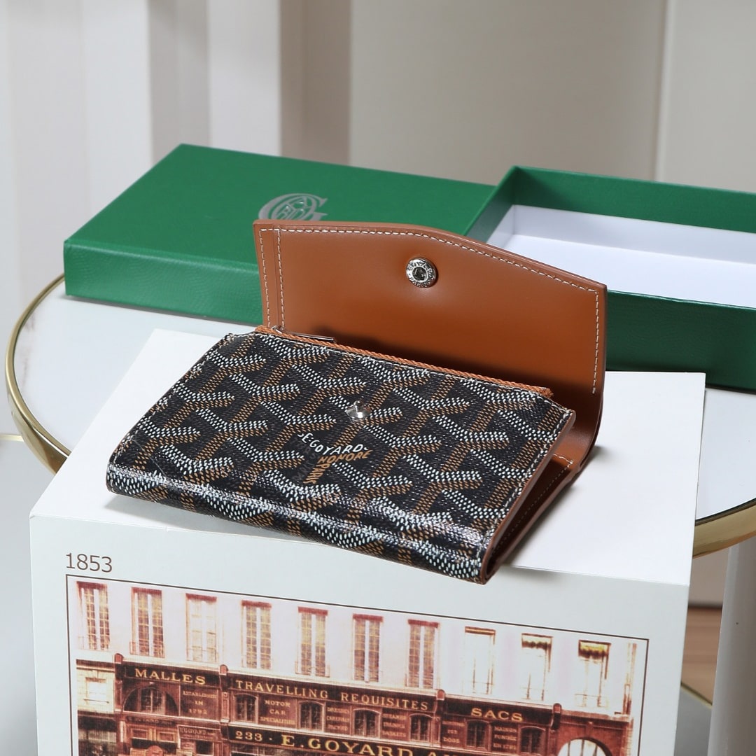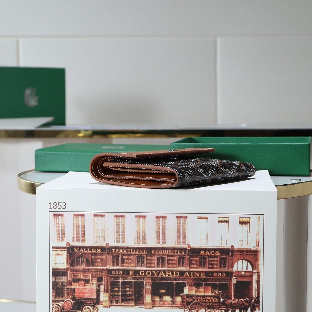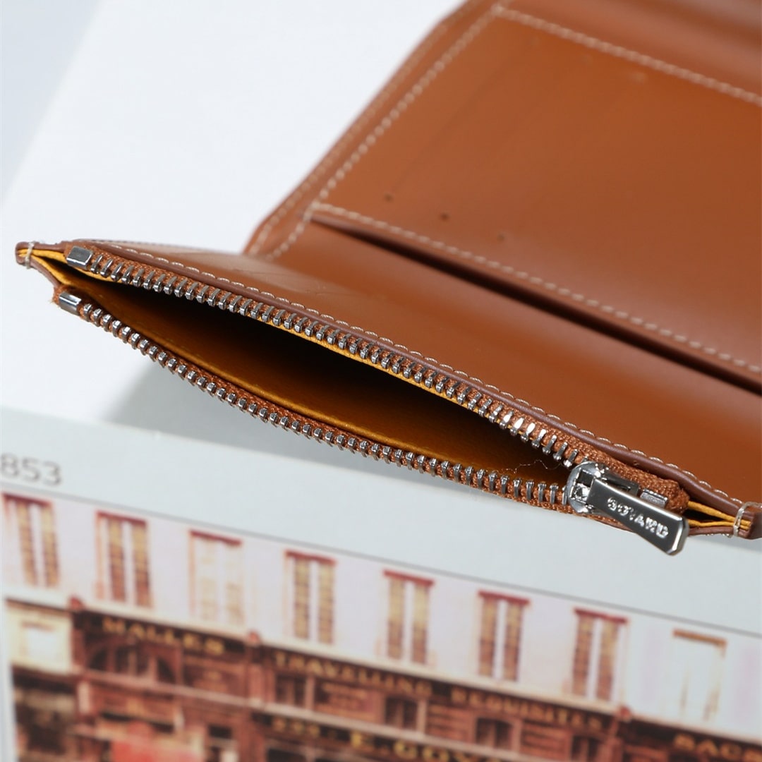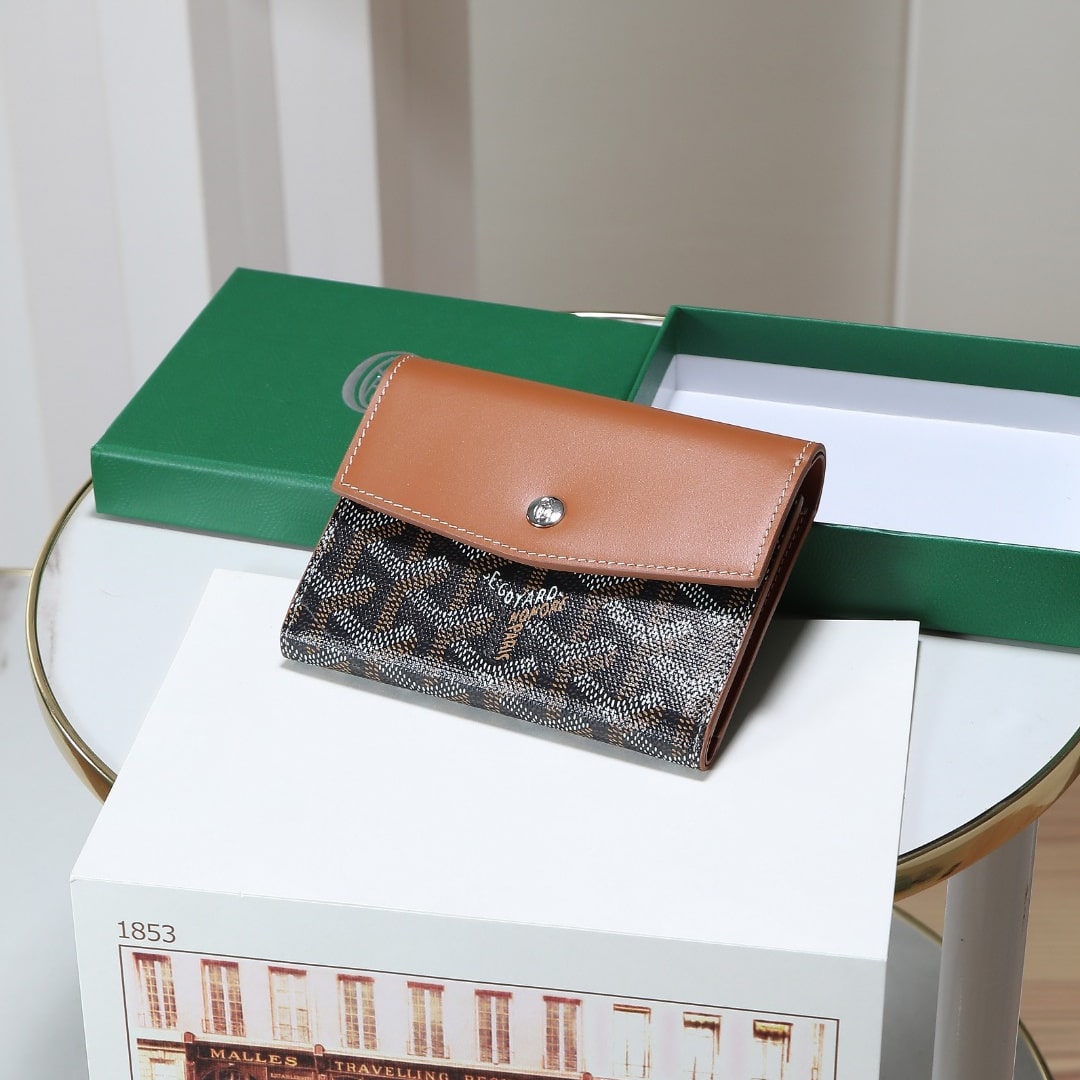 Gabriel系列是由Goyardine帆布配頭層小牛皮精心製作而成的獨特的信封狀三折錢包,采用輕巧緊湊的形式,具備大型錢包的所有功能:6個卡槽,2個口袋和紙幣夾,方便歸納存取,包身輕便小巧,可輕松隨包攜帶.內部山羊皮襯裏