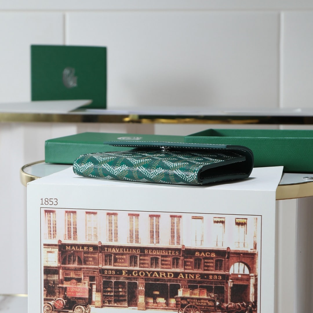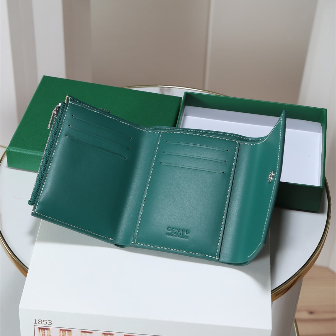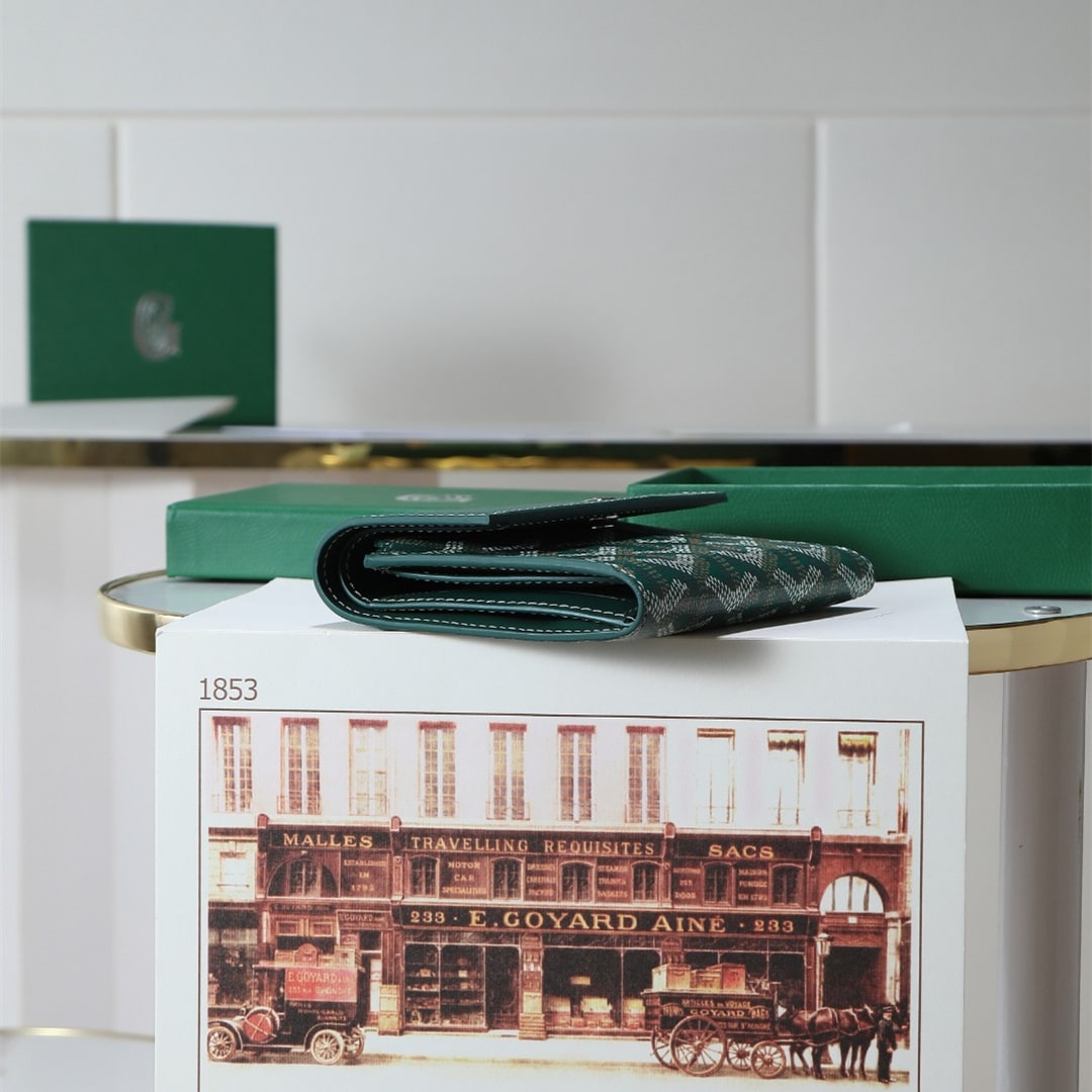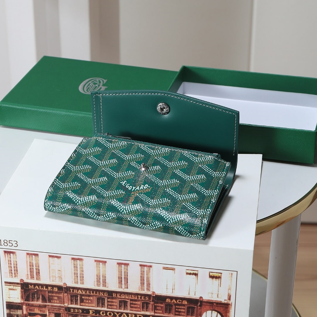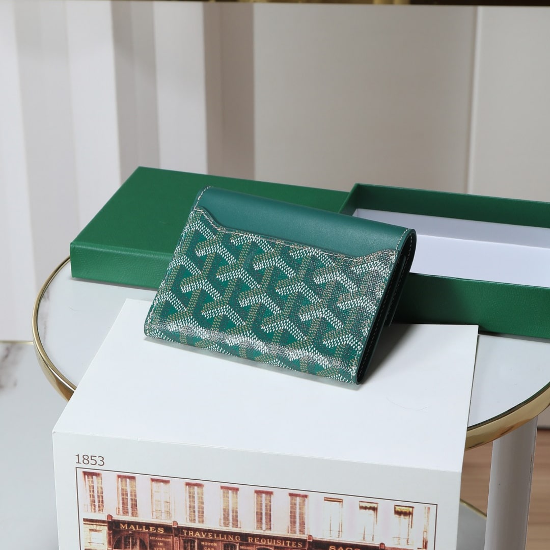 高仿Goyard*STGABR2拼色三折式錢夾錢包綠色免檢版