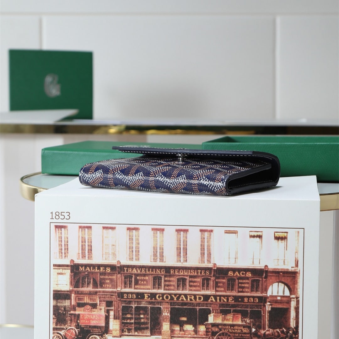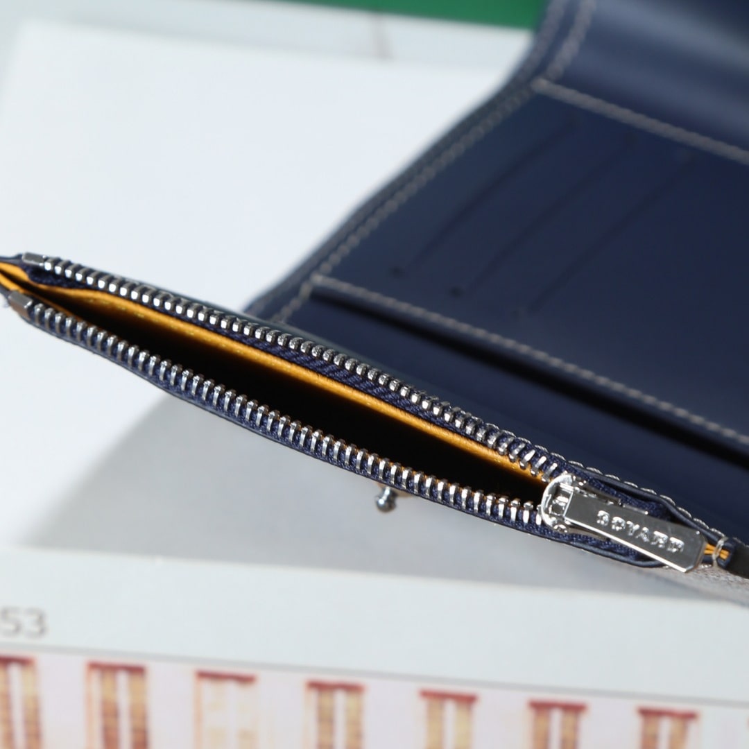 Gabriel系列是由Goyardine帆布配頭層小牛皮精心製作而成的獨特的信封狀三折錢包,采用輕巧緊湊的形式,具備大型錢包的所有功能:6個卡槽,2個口袋和紙幣夾,方便歸納存取,包身輕便小巧,可輕松隨包攜帶.內部山羊皮襯裏