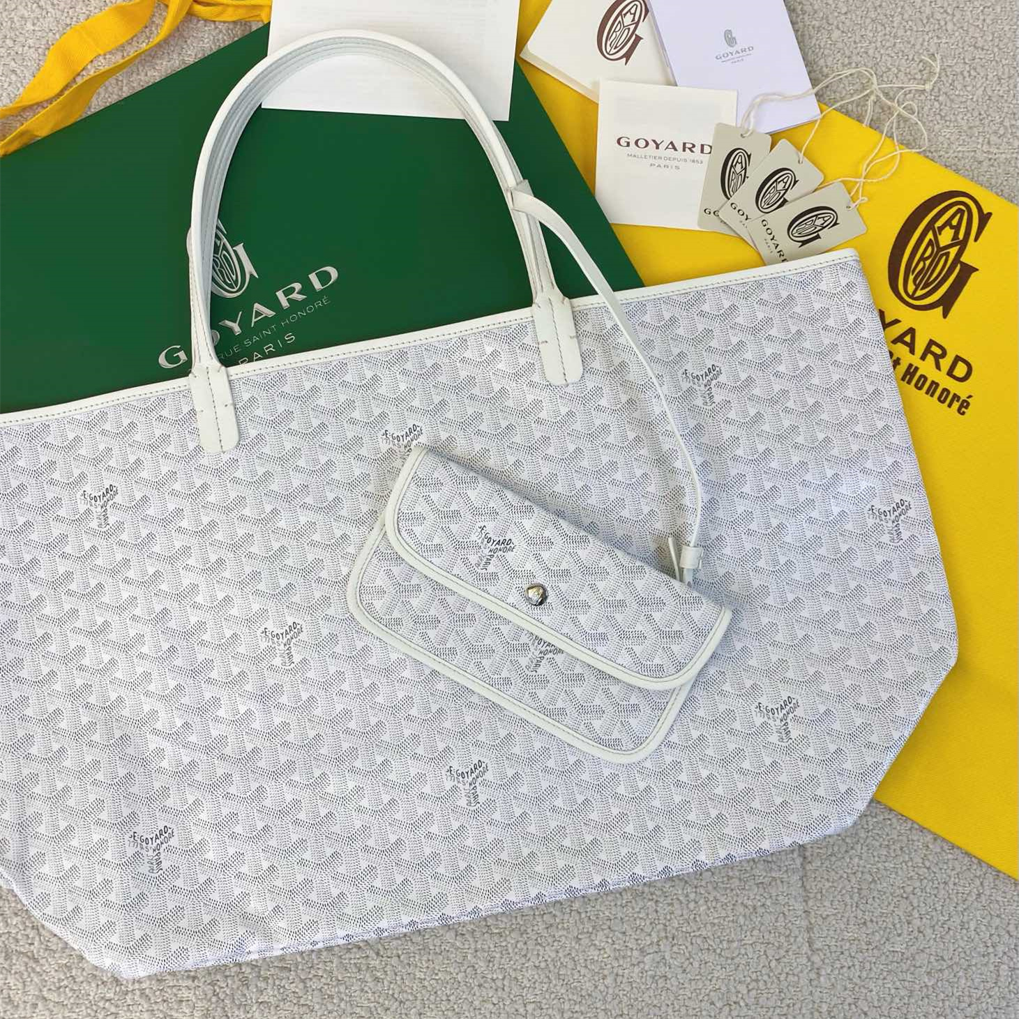 高仿goyard/tote購物袋大號,原裝正品1:1開模打造經典款當然要做正確版.19年的時候就已經買過3個卡包2個手包回來對過色,材料開發的難度不是一點兩點三角形中的”3色點點”要做到顏色一樣非常難,還好當時的數據還留著!還有就是我們的配皮用的是真牛皮!非市場的pu假皮,這只絕對是購物袋中的must