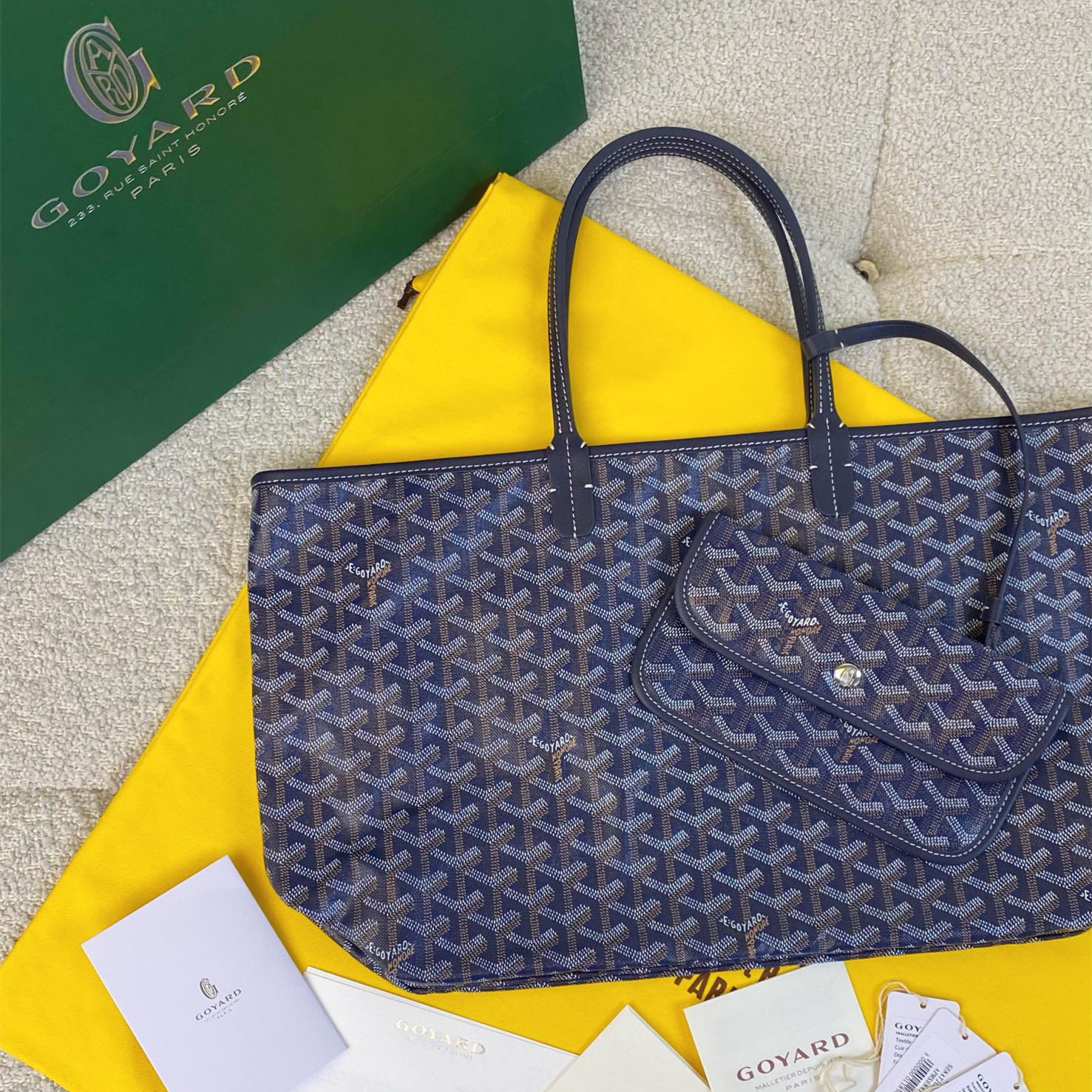 高仿Goyard*STLOUIE滿印Tote購物袋深藍中號免檢版