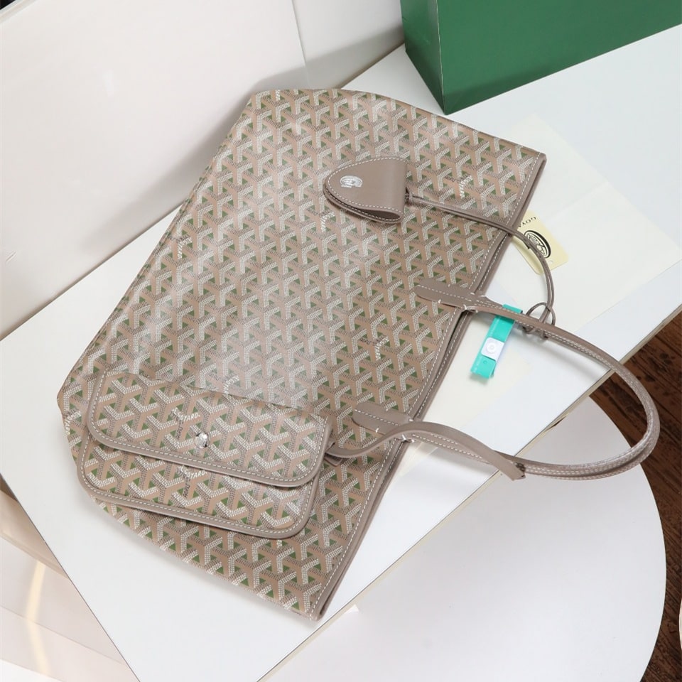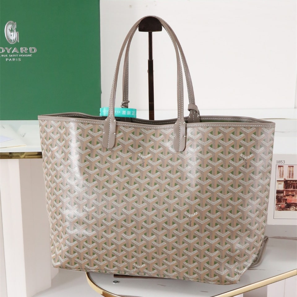 高仿Goyard*STLOUIP10滿印Tote手提袋咖綠免檢版小號