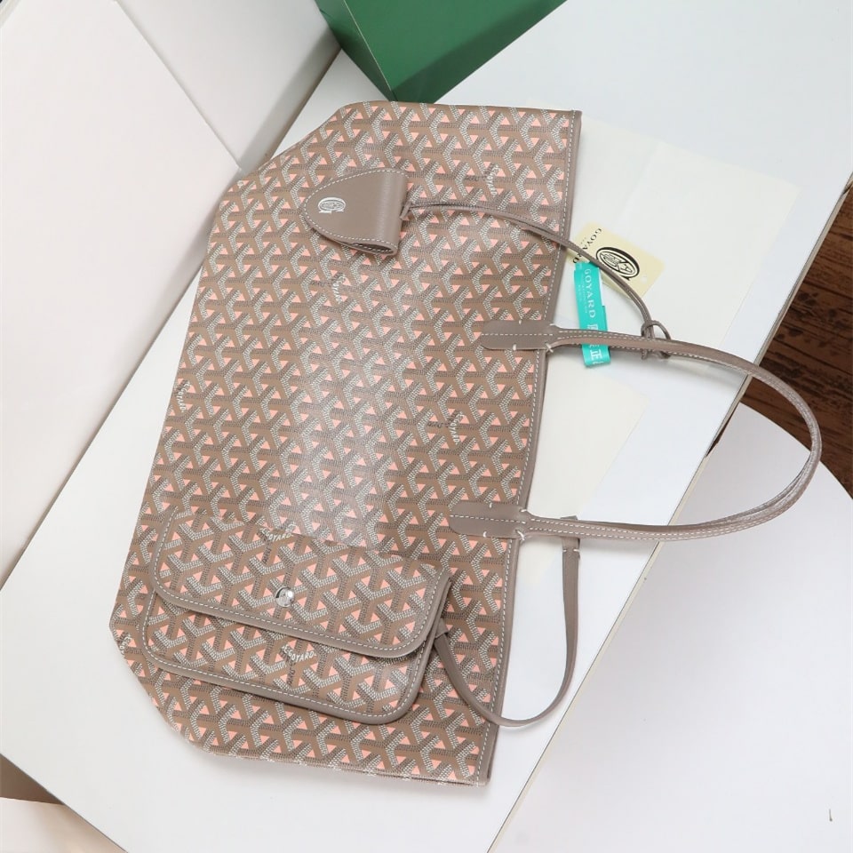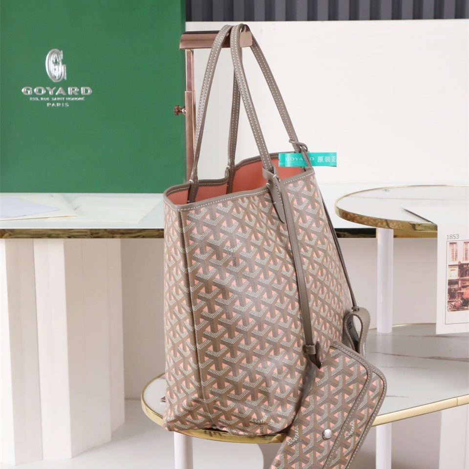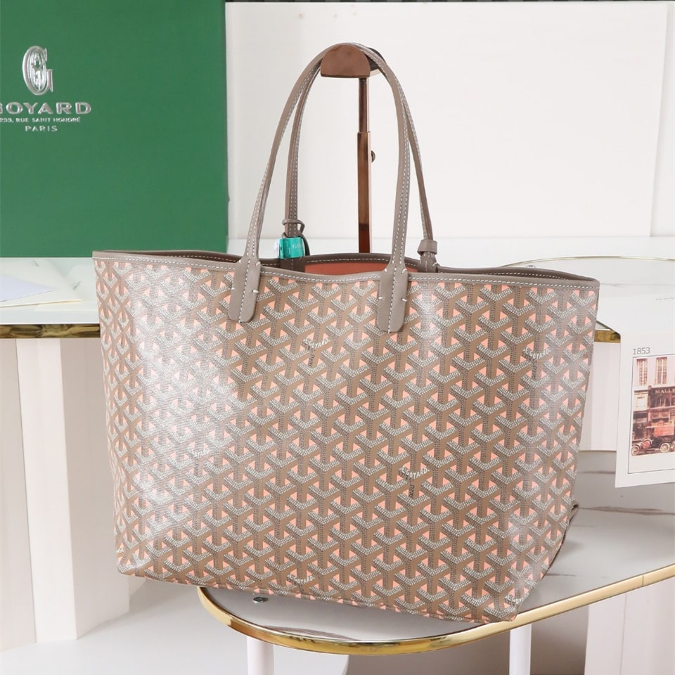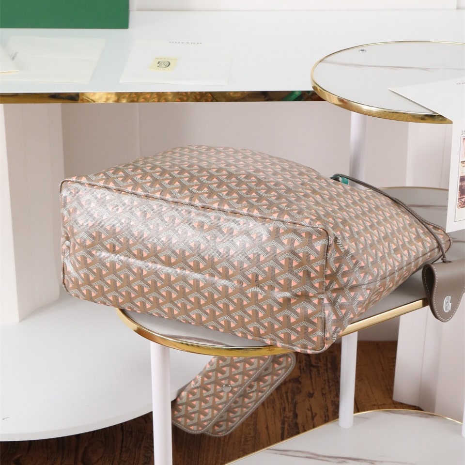 高仿Goyard*STLOUIP12滿印Tote手提袋咖粉免檢版小號