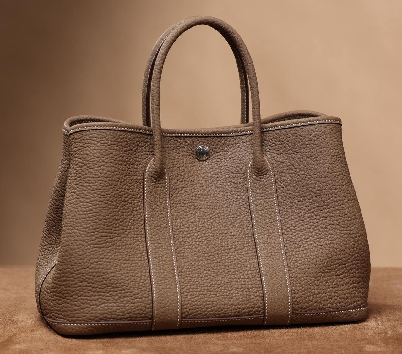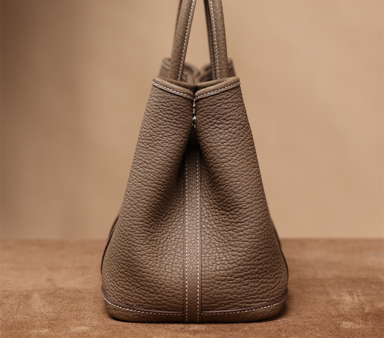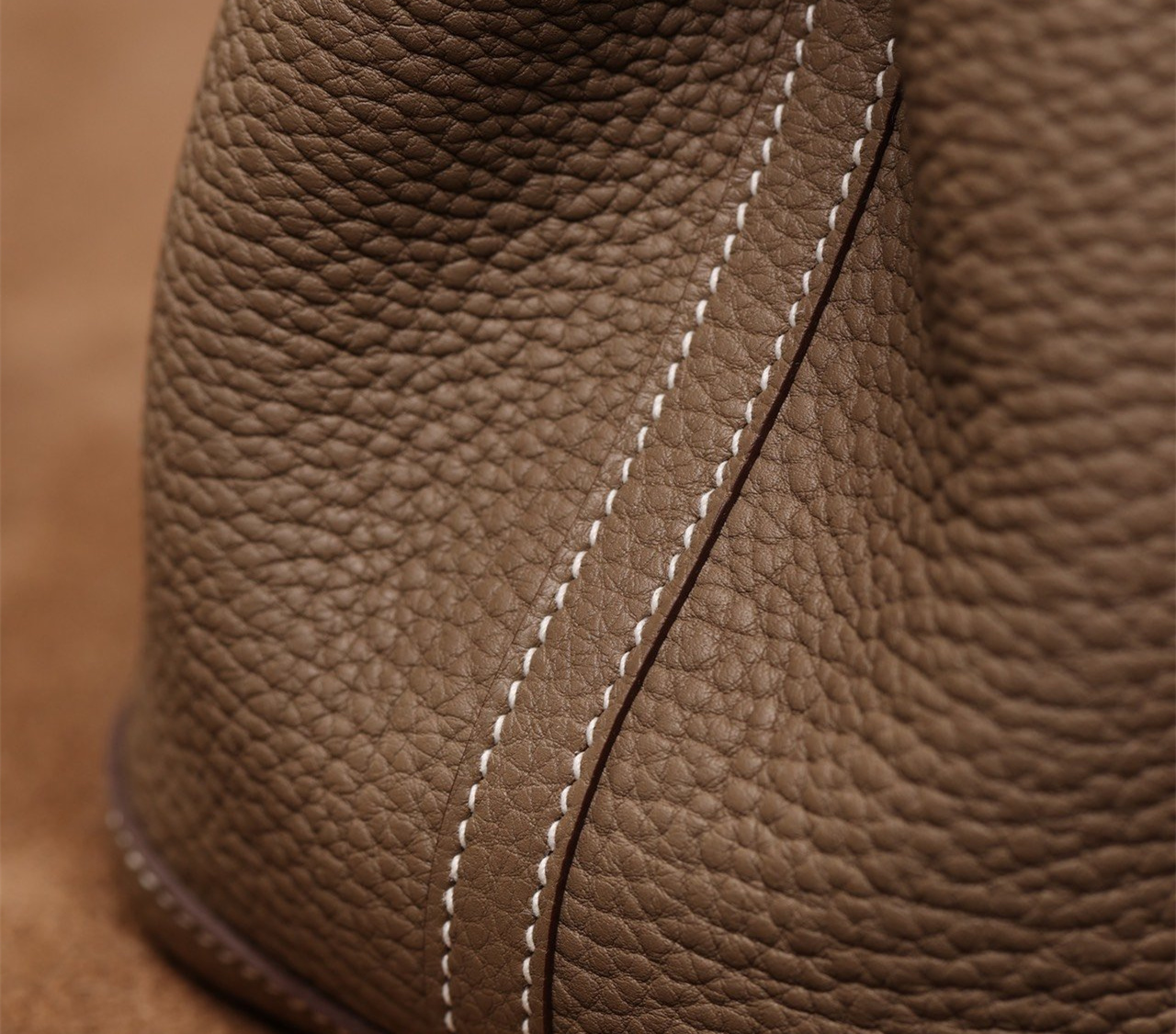 這種皮革以其較大且明顯的顆粒紋路而聞名,給人以荔枝皮的印象,同時帶有適度的光澤.非常適合用於製作高仿Hermes大象灰手提包.Togo皮的主要優勢在於其堅韌的質地,即使長時間使用,也能保持包體的完整形狀,使這款購物袋能承受更多重量.在這款獨家定製高仿Hermes包包上,嚴格采用法國進口的原廠皮革進行製作,徹底排除了人造皮革出現掉色掉皮的嚴重缺陷,可區別比對專櫃品質和劣質低端版本.