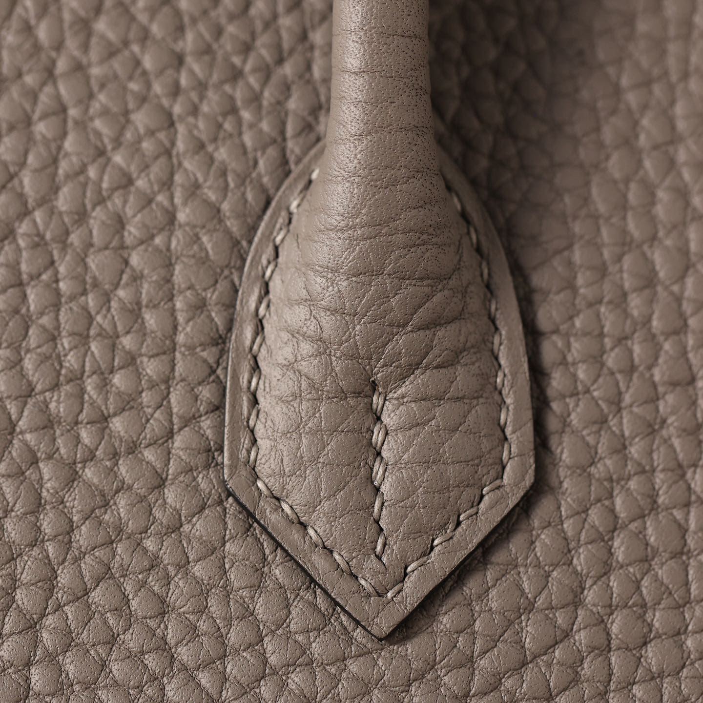 全鋼Hermes為這款Birkin包使用了法國進口的專用油蠟棉線,這種材料不僅與正品材料同步,而且在縫製每一針每一線時,都需要經過純手工的工藝.從正面看這款Birkin包,你可以看到多重縫合的皮革,從底部延伸到包口的設計,每一處縫線都彰顯了我們對品質的追求.與市面上那些使用機器縫線的低質產品相比,我們的手工縫線更加流暢,展現出優雅的曲線.