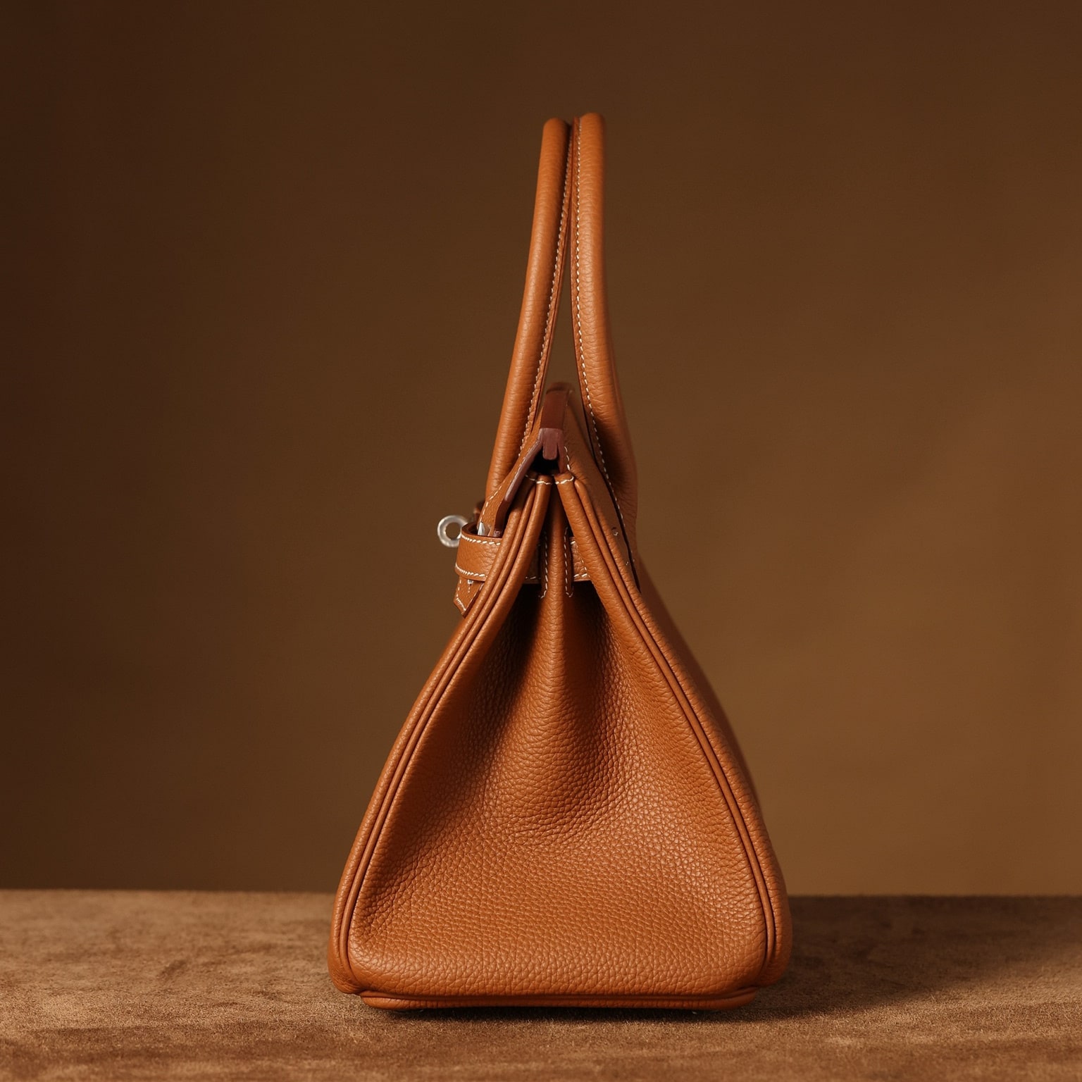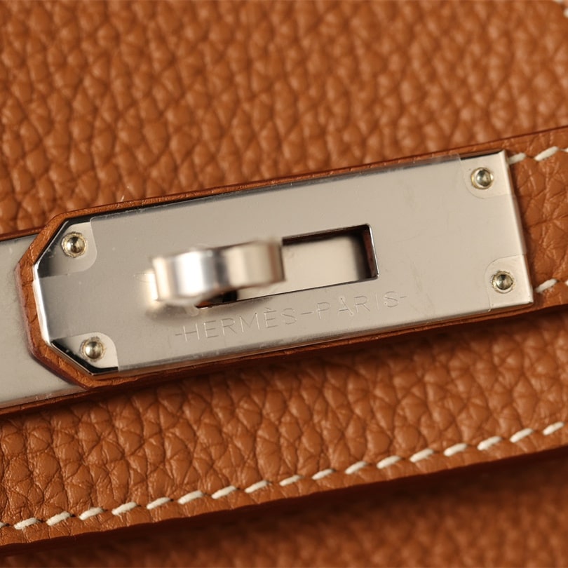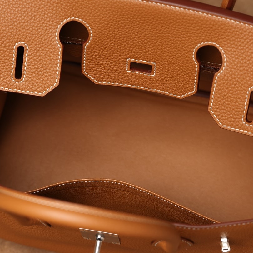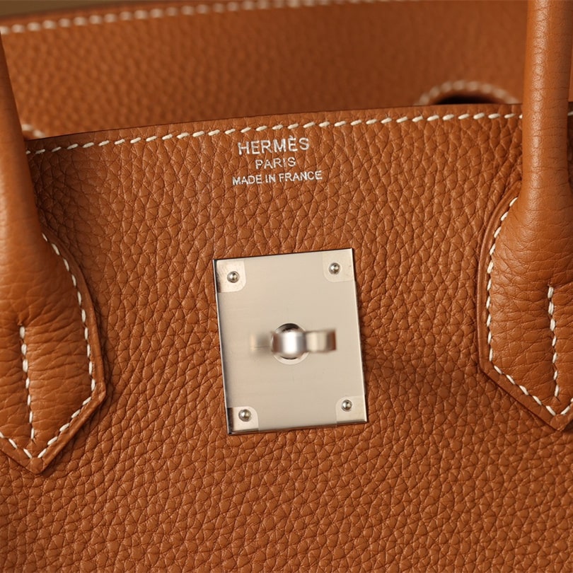 Togo皮是進口公牛皮革,只取自頸部頭層.其部分皮革具有較深紋路,後續通過特性處理便有了現存的荔枝紋.皮質顆粒大小一致,在燈光或者自然燈光下具有亮眼的光澤度.高仿Hermes鉑金包從購入專櫃正品開模分解,從皮革到縫合成型包體每一道工序根據還原正品細節處理為主,而此次採用進口的真牛皮也是如此.