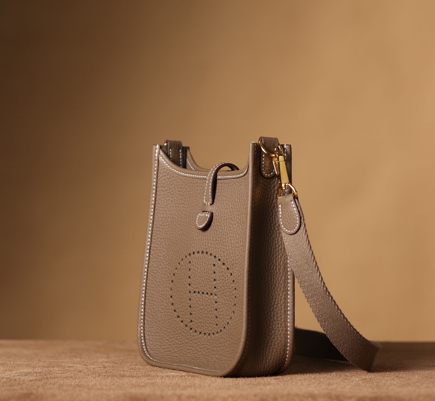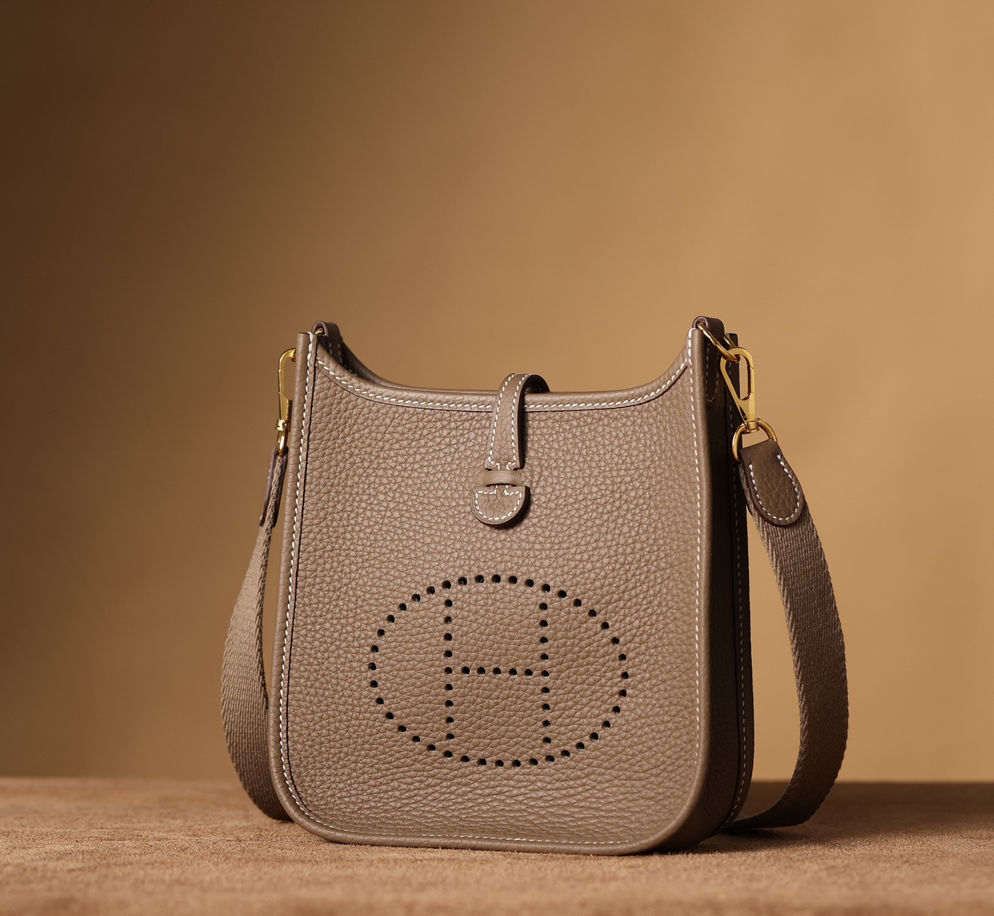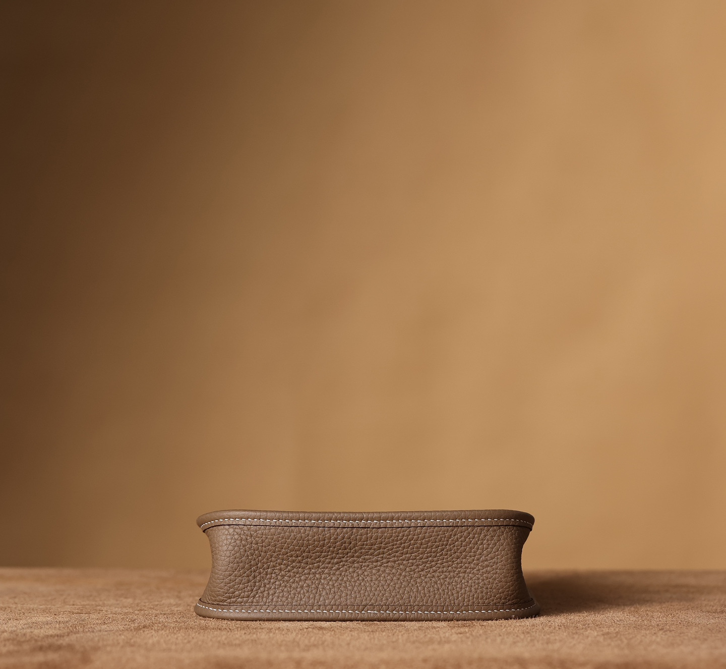 高仿HermesEvelyne迷你單肩包全新來襲,獨家純手工製作工藝完美呈現出高仿市面上頂級佳作.這一隻大象灰配色Evelyne繼承了Hermes原裝正品精準細節把控.採用原裝進口TaurillonMaurice小公牛皮,俗稱TM皮.這也是愛馬仕官方中全新推出的皮革之一,高仿Hermes單肩包給人一種穩重感,粒面細小而且附有圓潤穩固的狀態.而皮質的紋理表現無疑的百分百還原專櫃品質.細膩中與顆粒面帶有的光澤度,更加保持硬挺的感覺,完美媲美原裝正品.