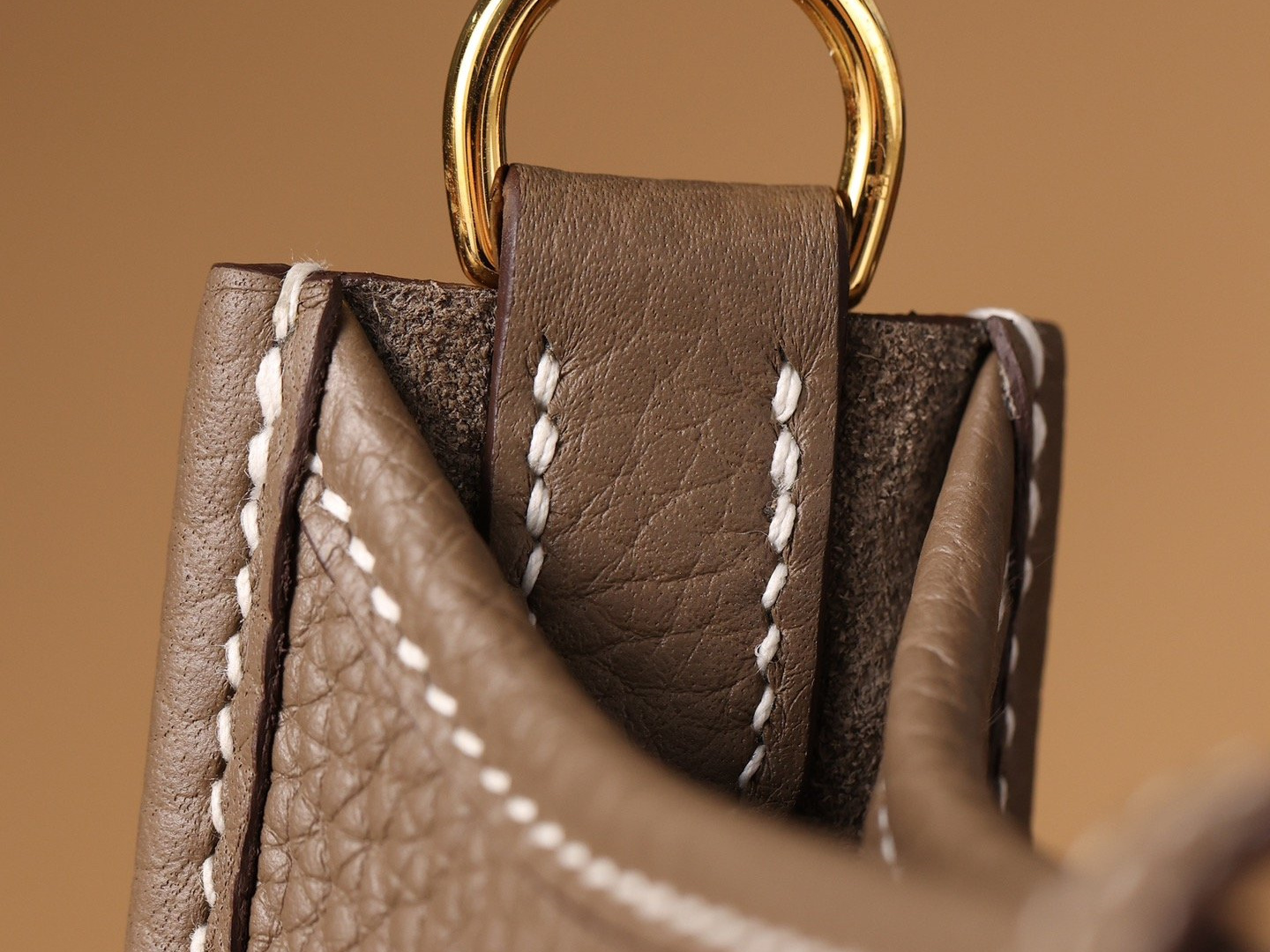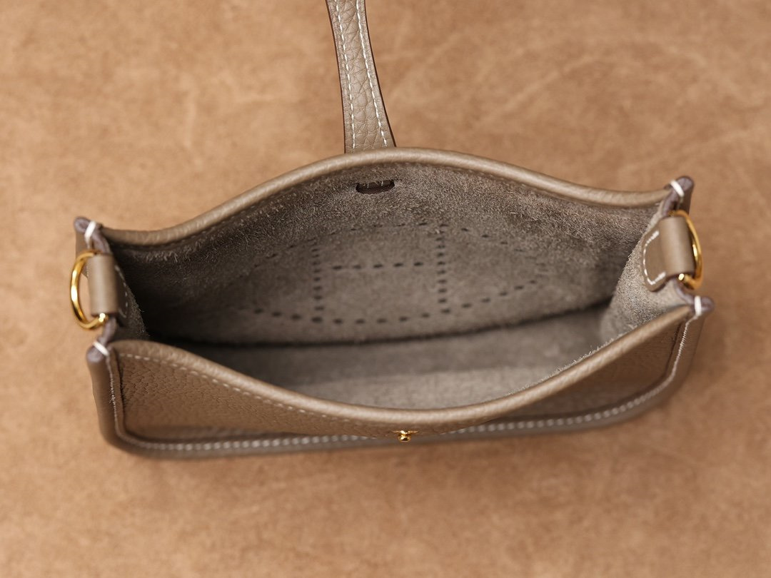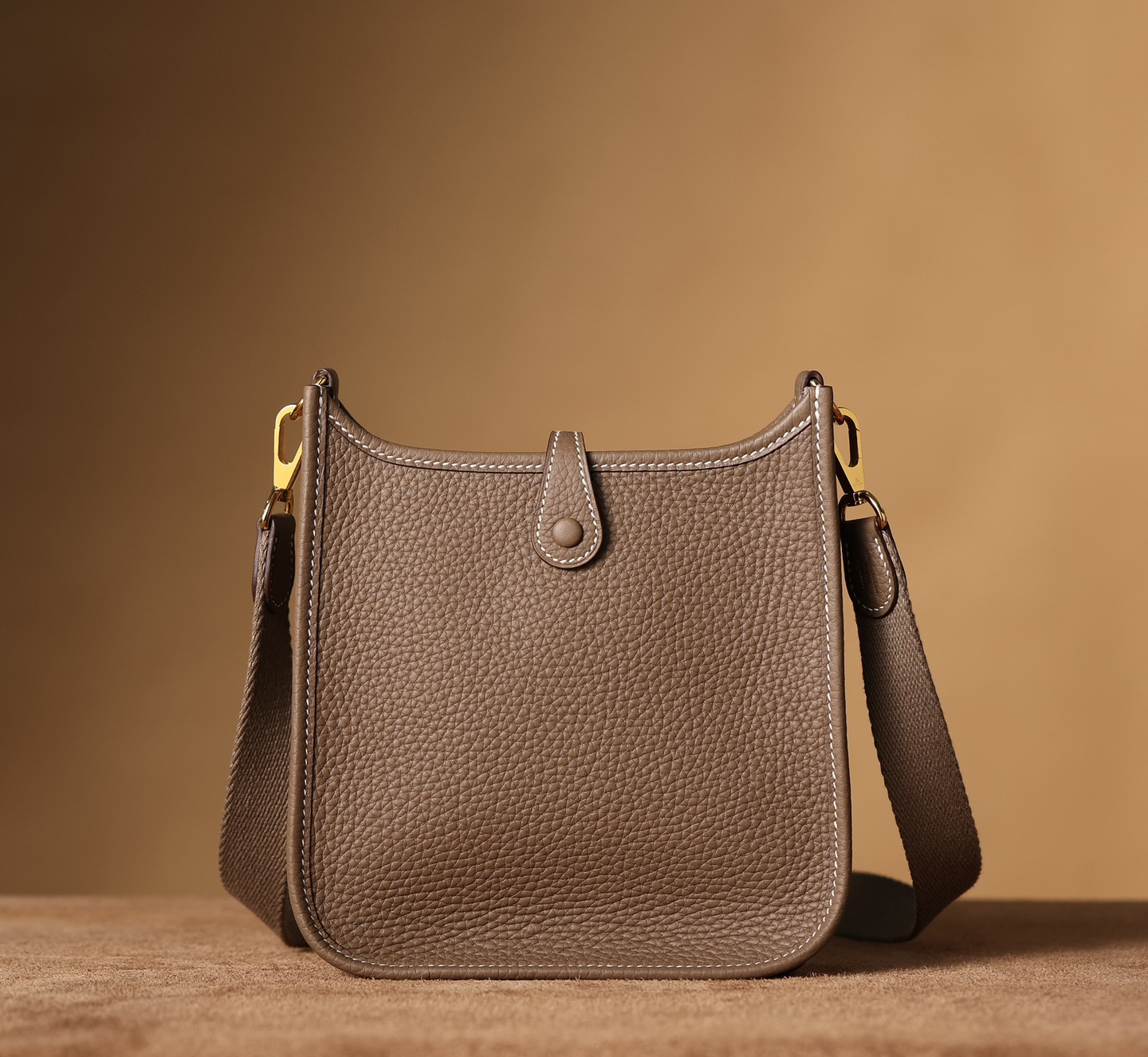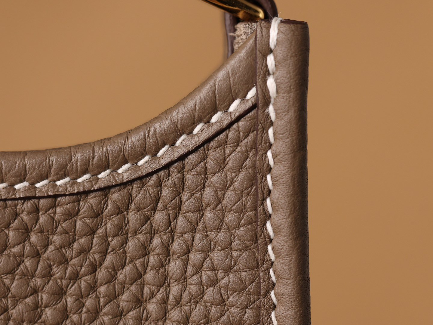 高仿HermesEvelyne迷你單肩包全新來襲,獨家純手工製作工藝完美呈現出高仿市面上頂級佳作.這一隻大象灰配色Evelyne繼承了Hermes原裝正品精準細節把控.採用原裝進口TaurillonMaurice小公牛皮,俗稱TM皮.這也是愛馬仕官方中全新推出的皮革之一,高仿Hermes單肩包給人一種穩重感,粒面細小而且附有圓潤穩固的狀態.而皮質的紋理表現無疑的百分百還原專櫃品質.細膩中與顆粒面帶有的光澤度,更加保持硬挺的感覺,完美媲美原裝正品.