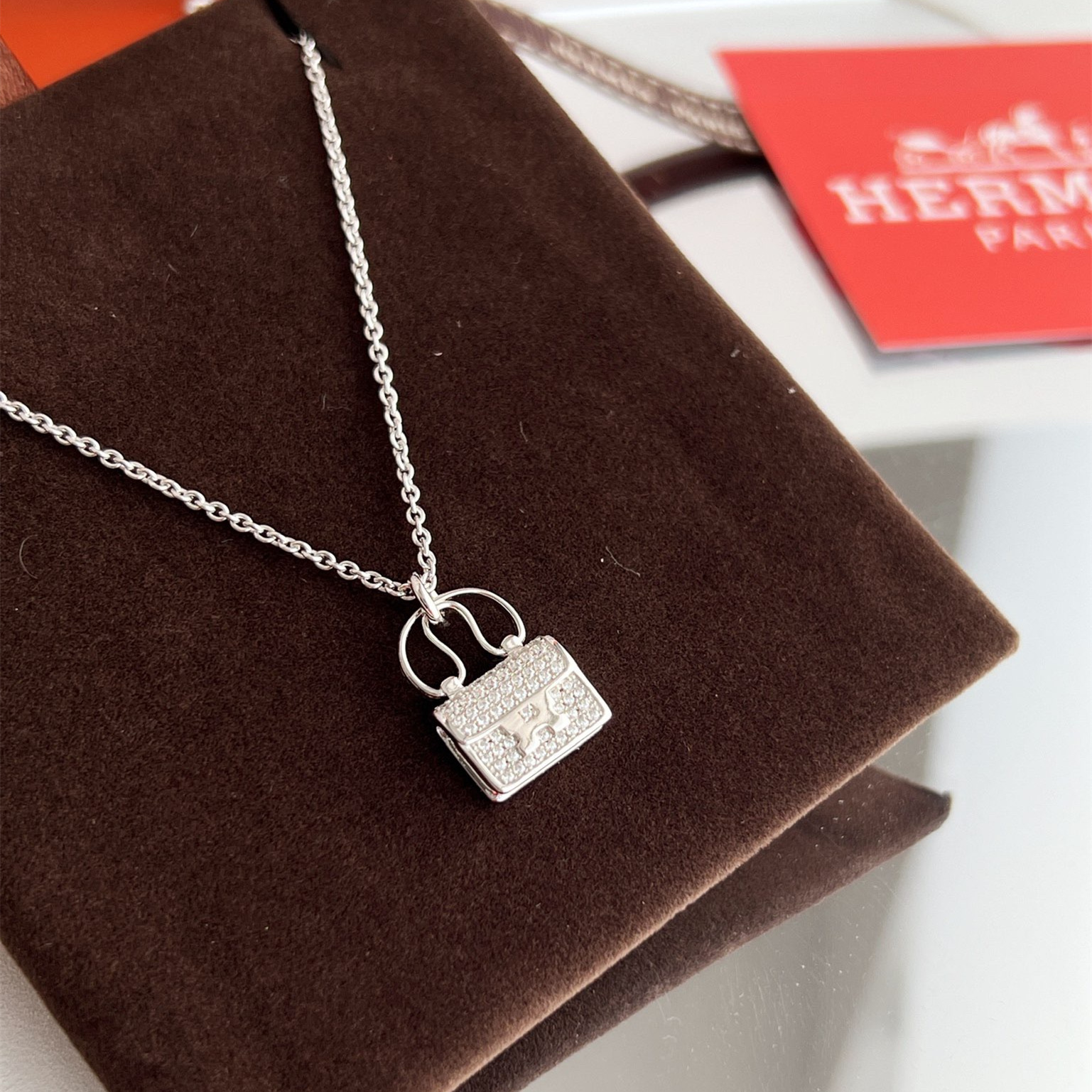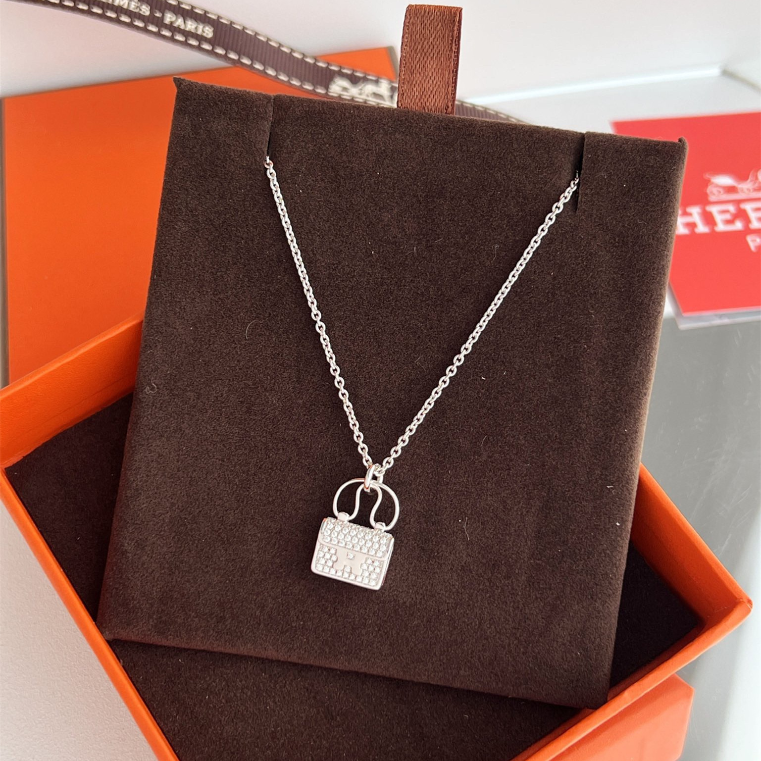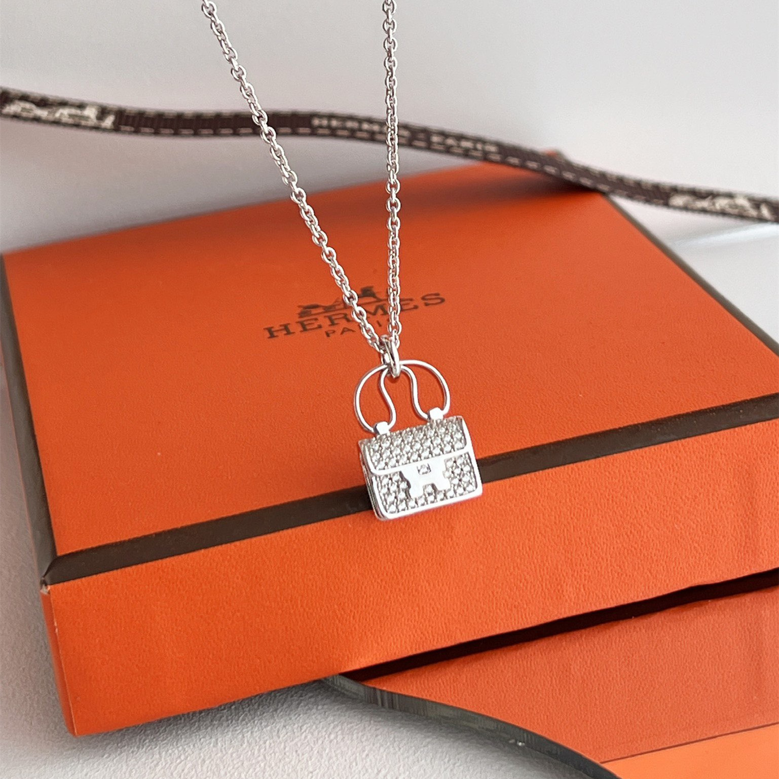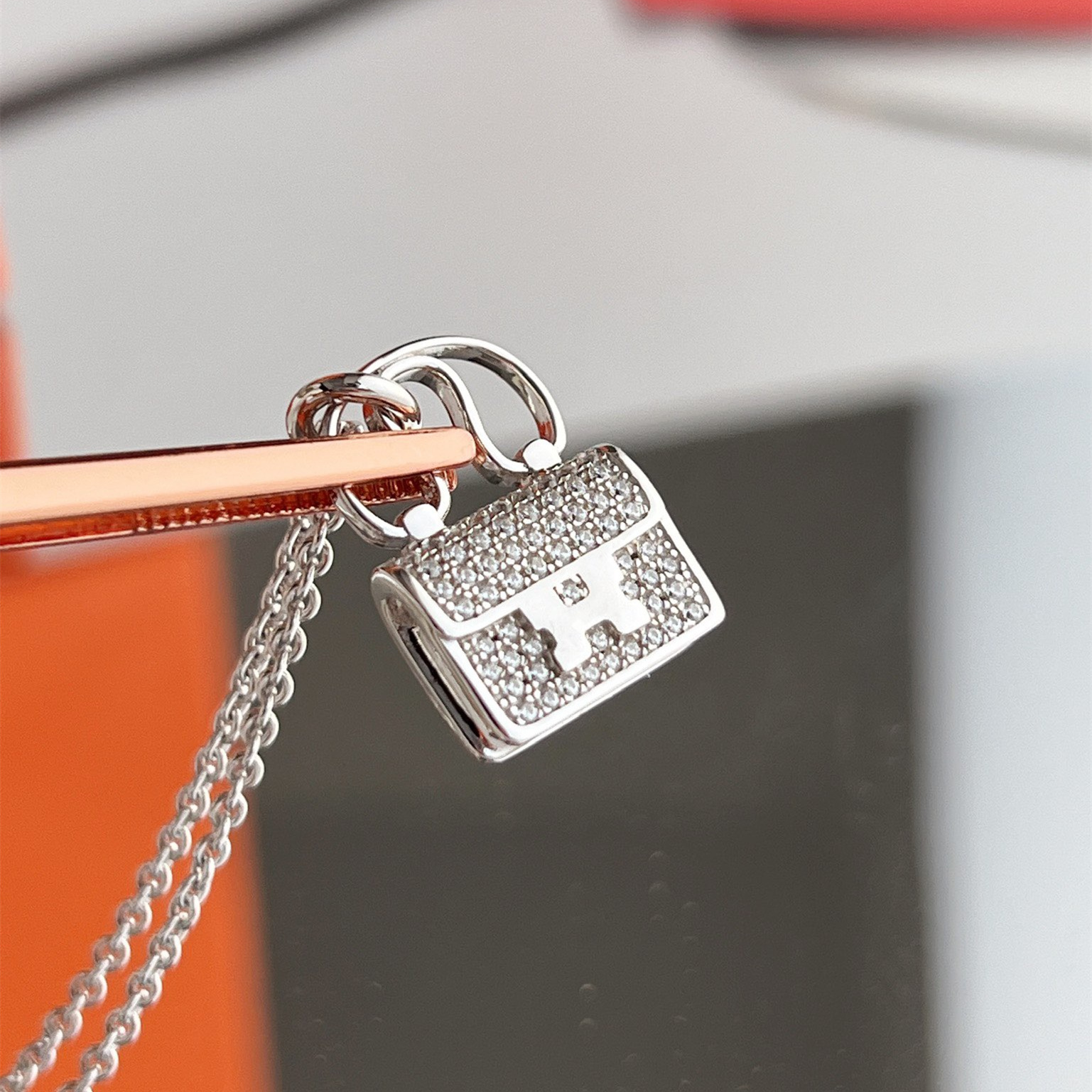 高仿Hermes Constance Amulette系列吊墜頸鏈,純手工鑲嵌碎鑽,PVD電鍍工藝.