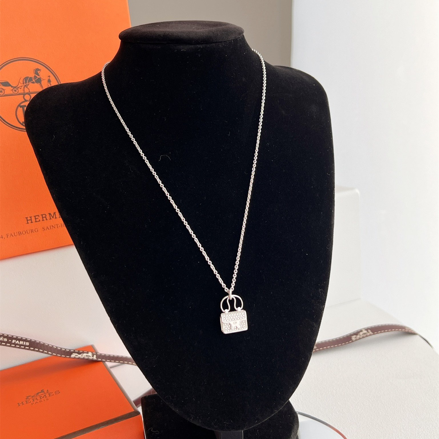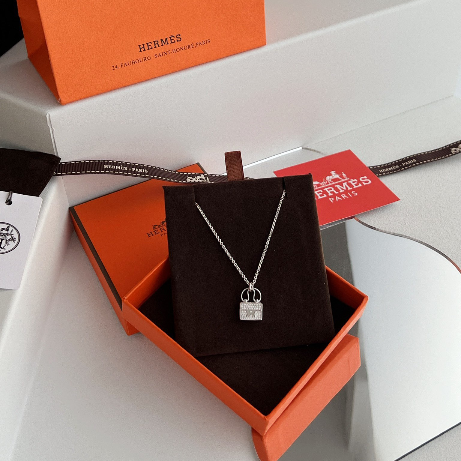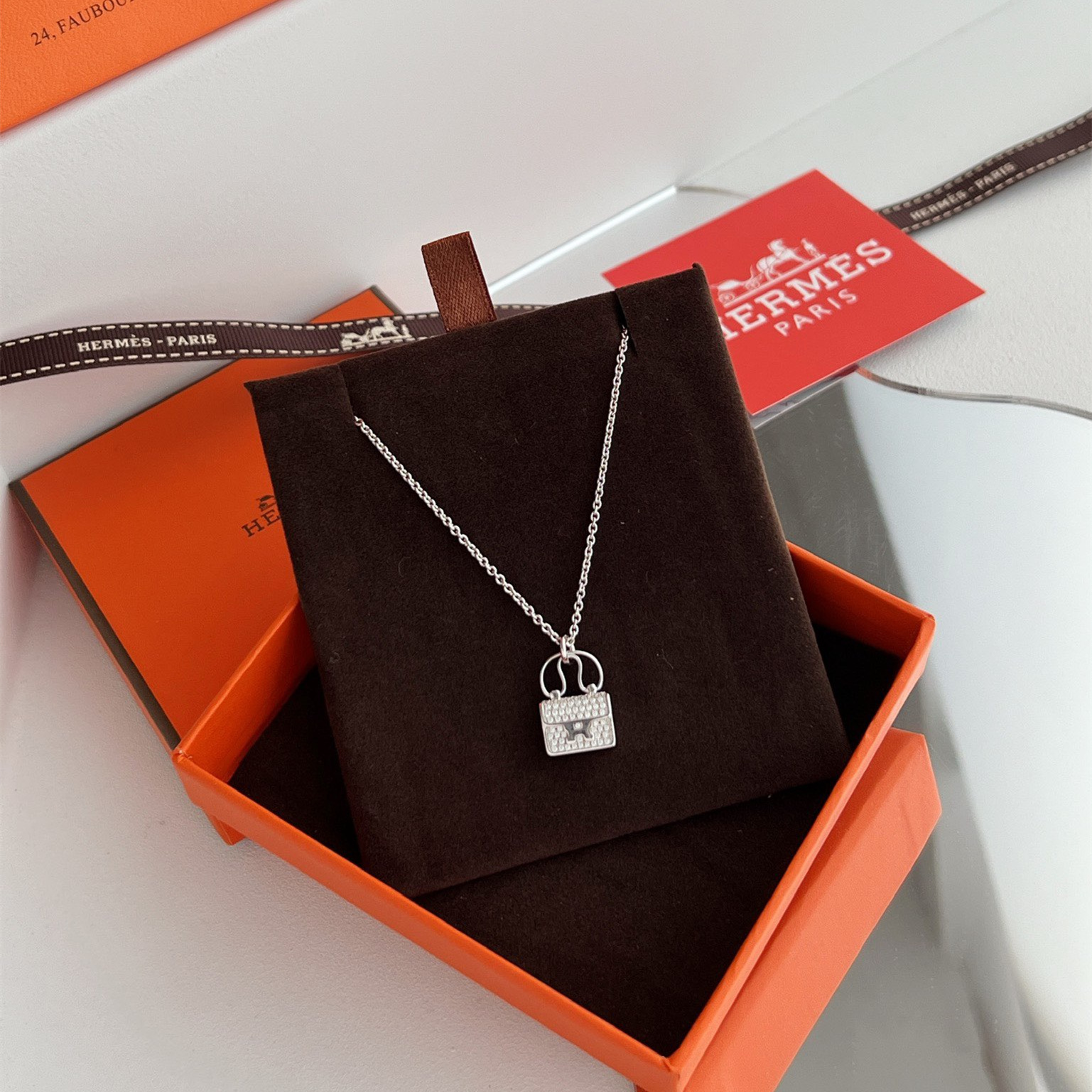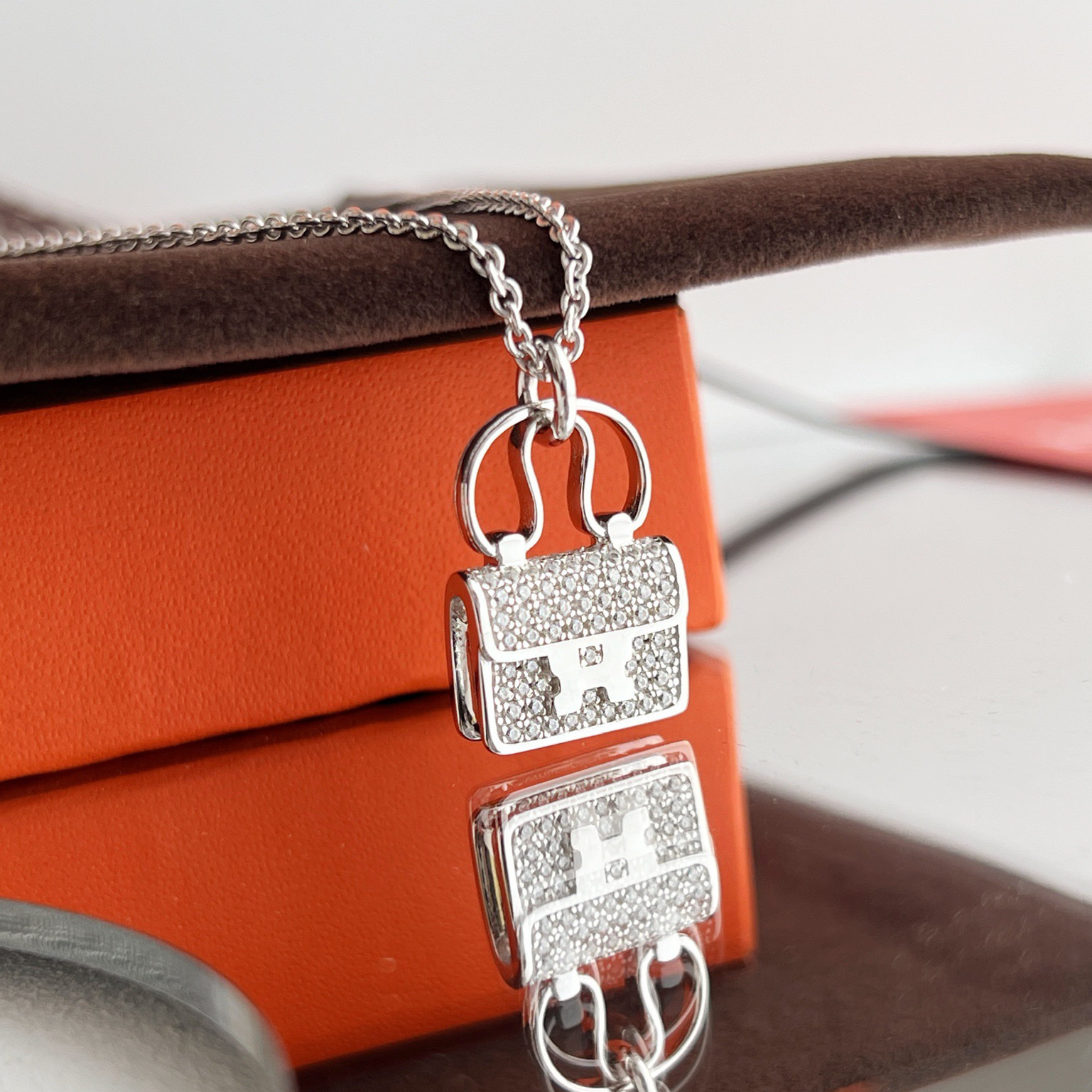 高仿Hermes Constance Amulette系列吊墜頸鏈,純手工鑲嵌碎鑽,PVD電鍍工藝.