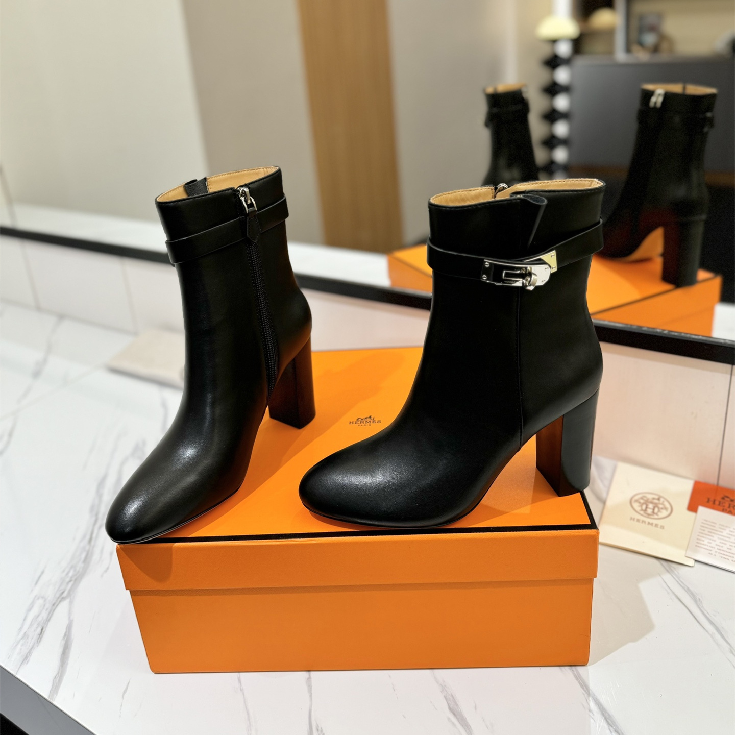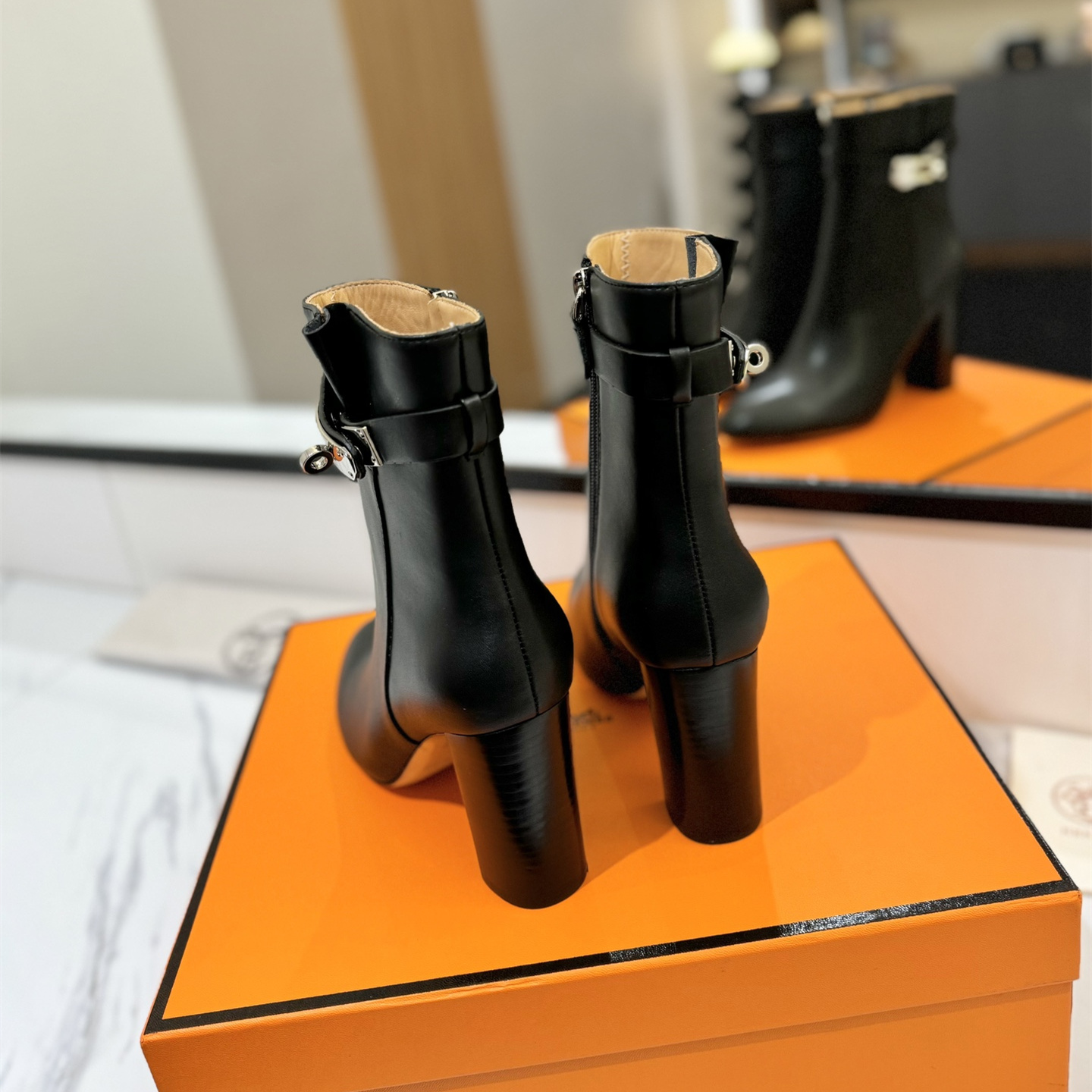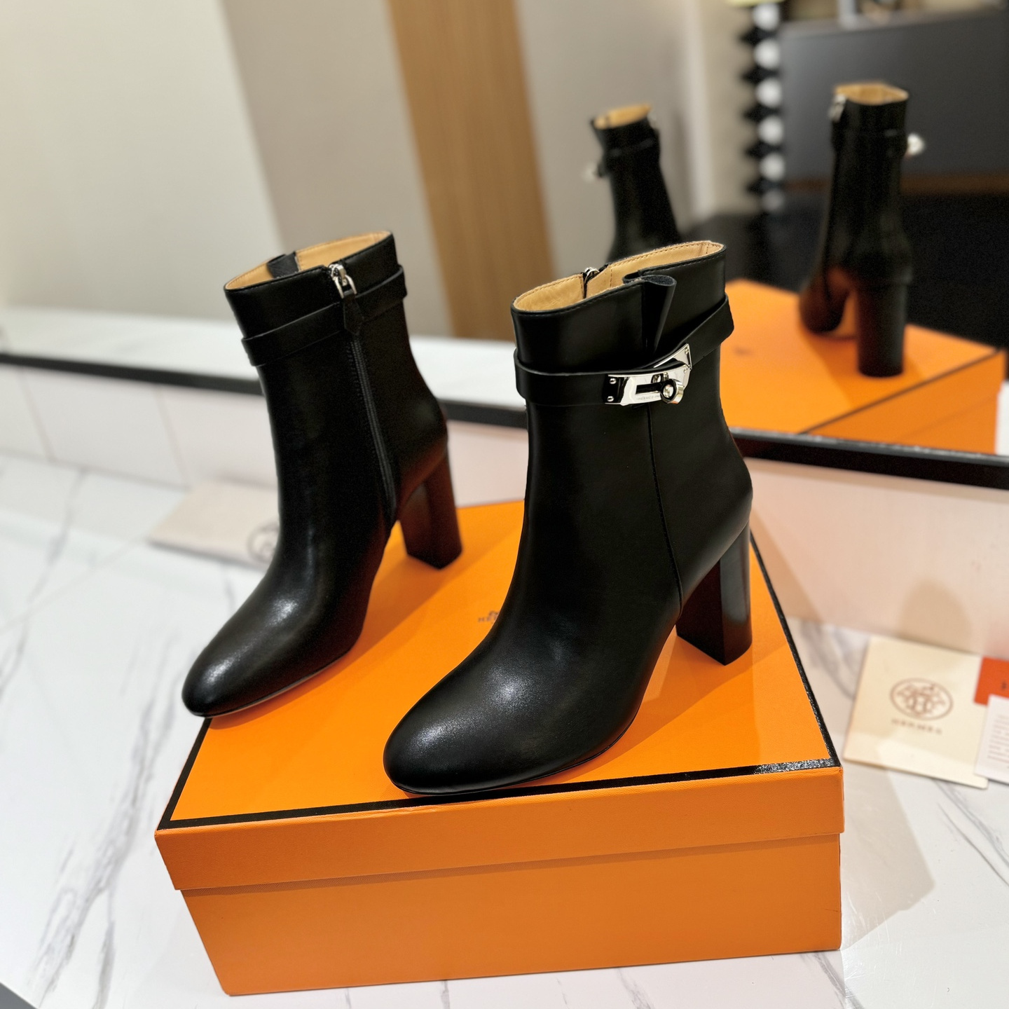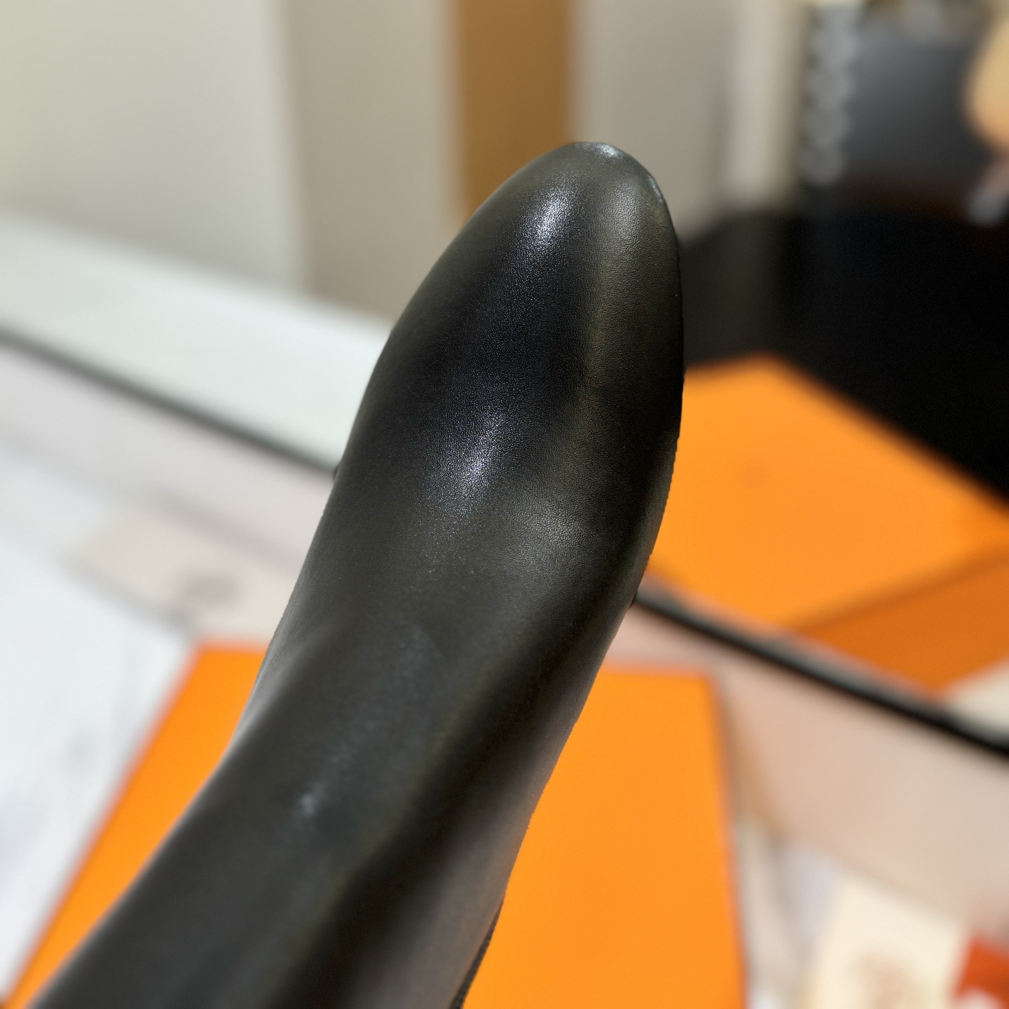 高仿Hermes*H182102Z02小牛皮高踭短靴黑色8.5CM免檢版