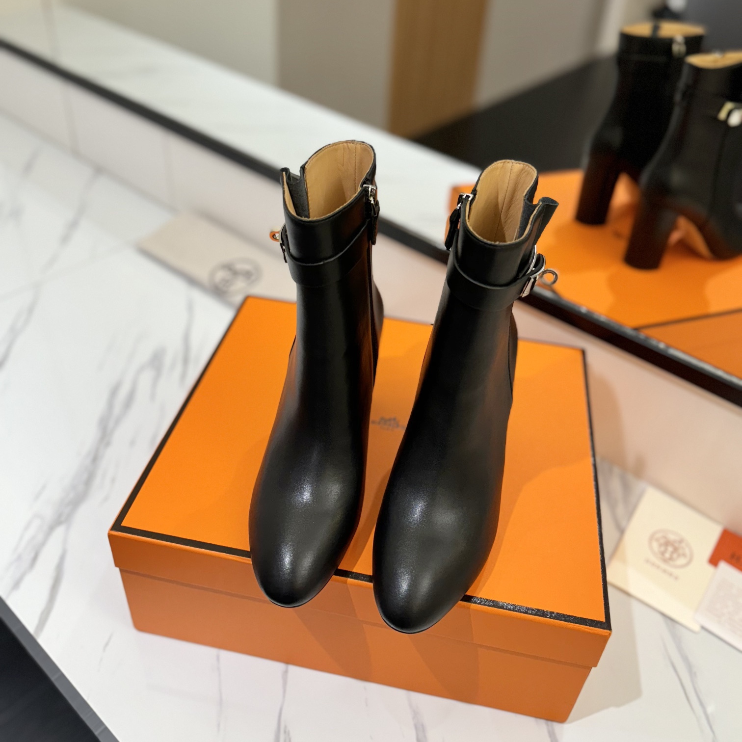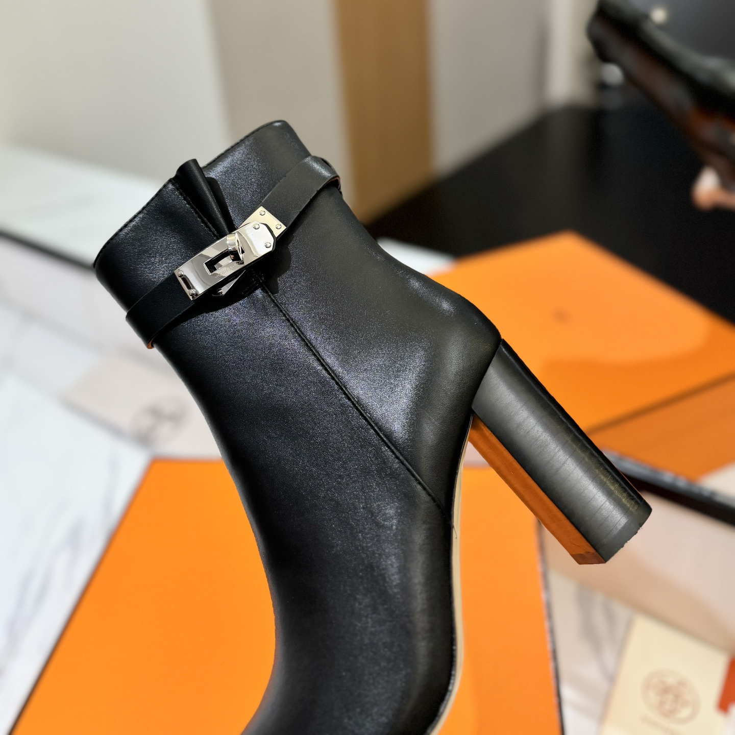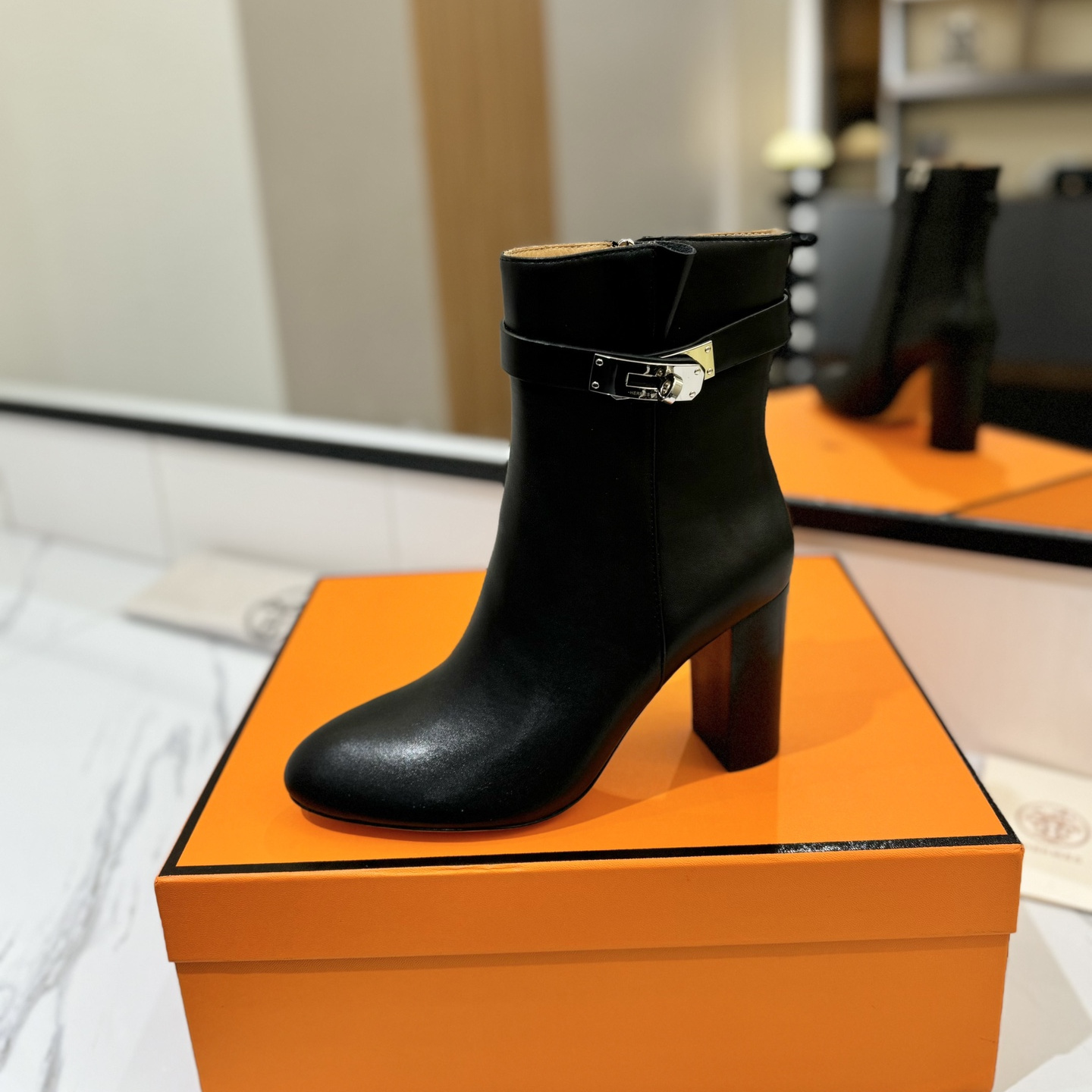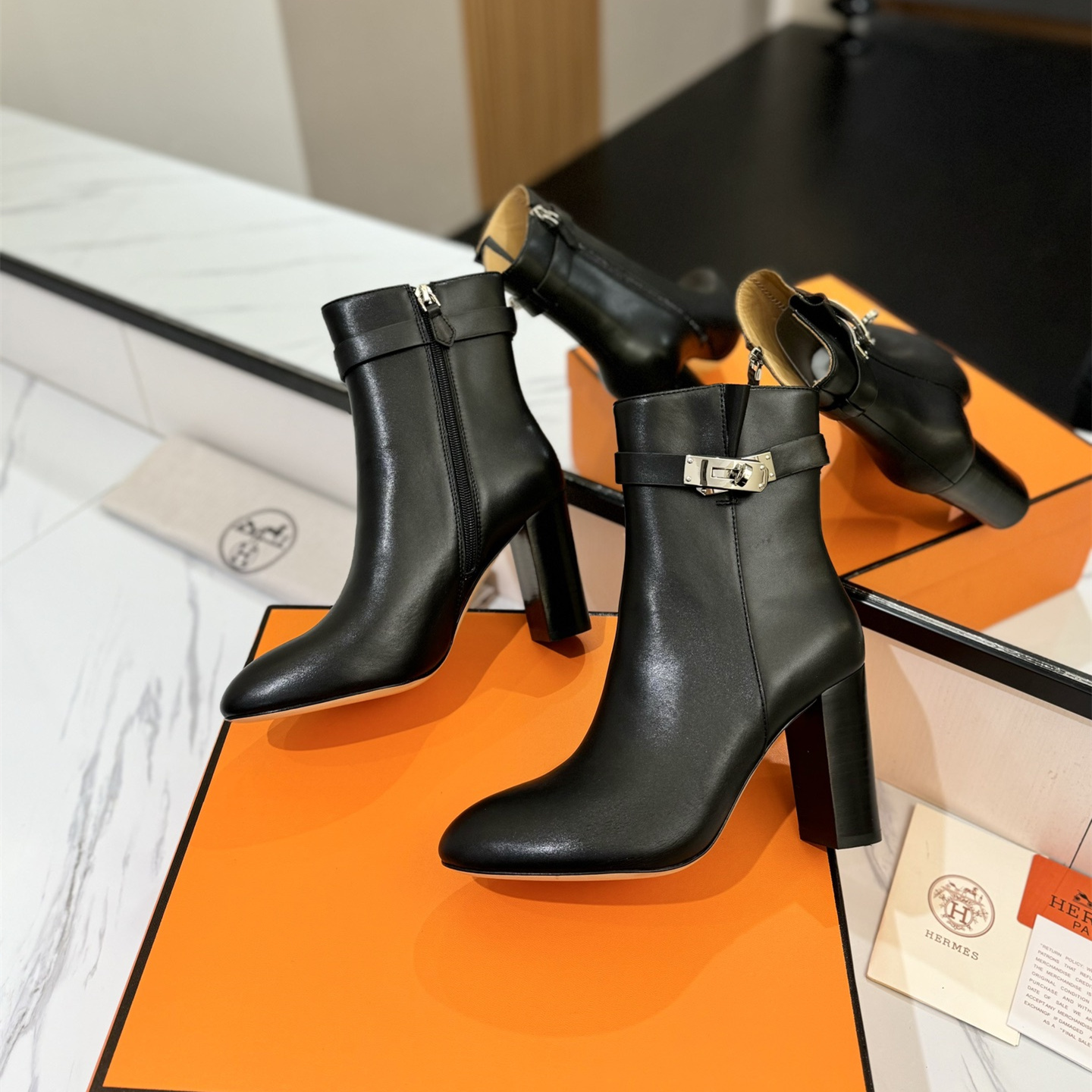 高仿Hermes*H182102Z02小牛皮高踭短靴黑色8.5CM免檢版