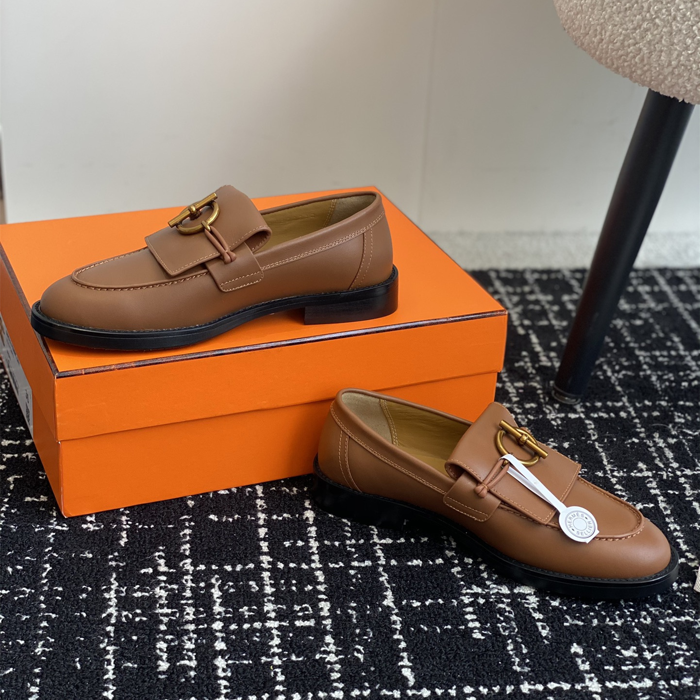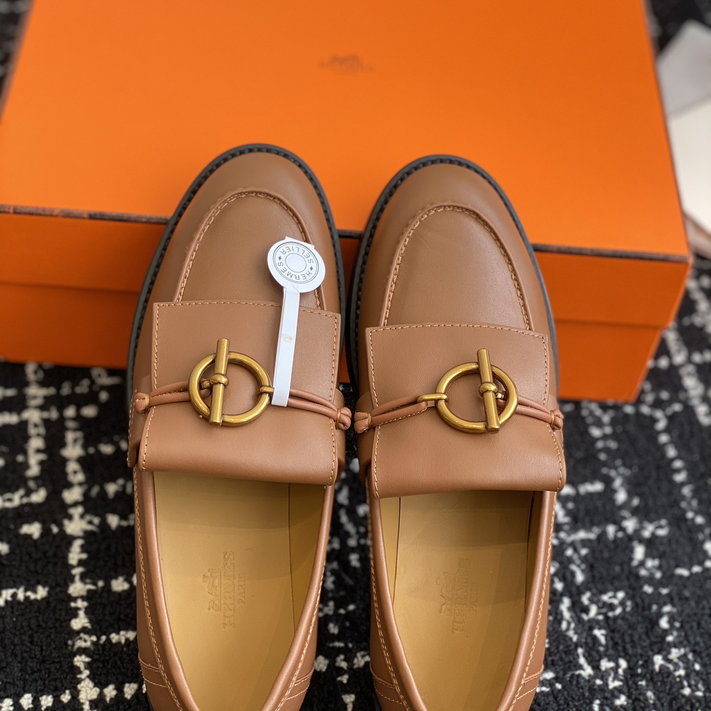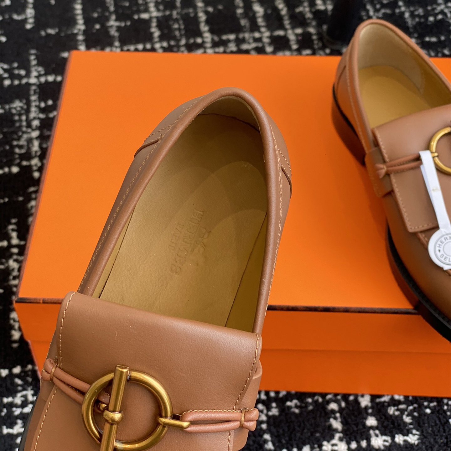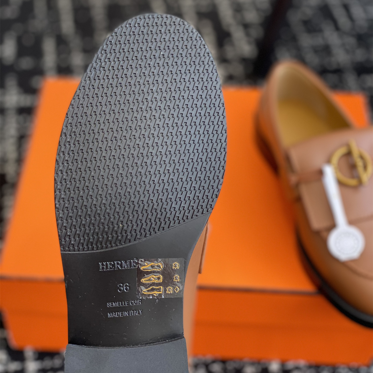 高仿Hermes*H241143ZA33塔扣小羊皮樂福鞋棕色免檢版