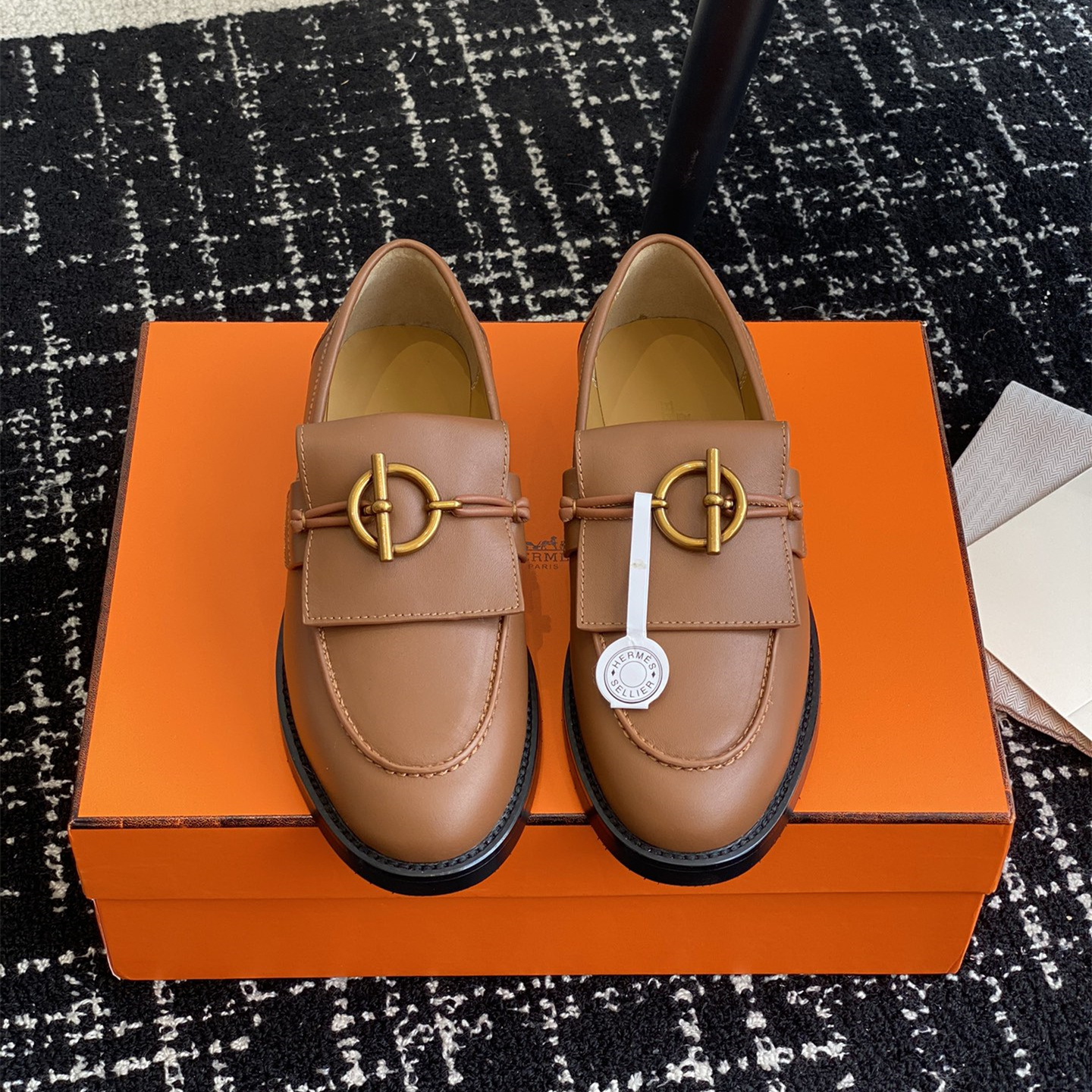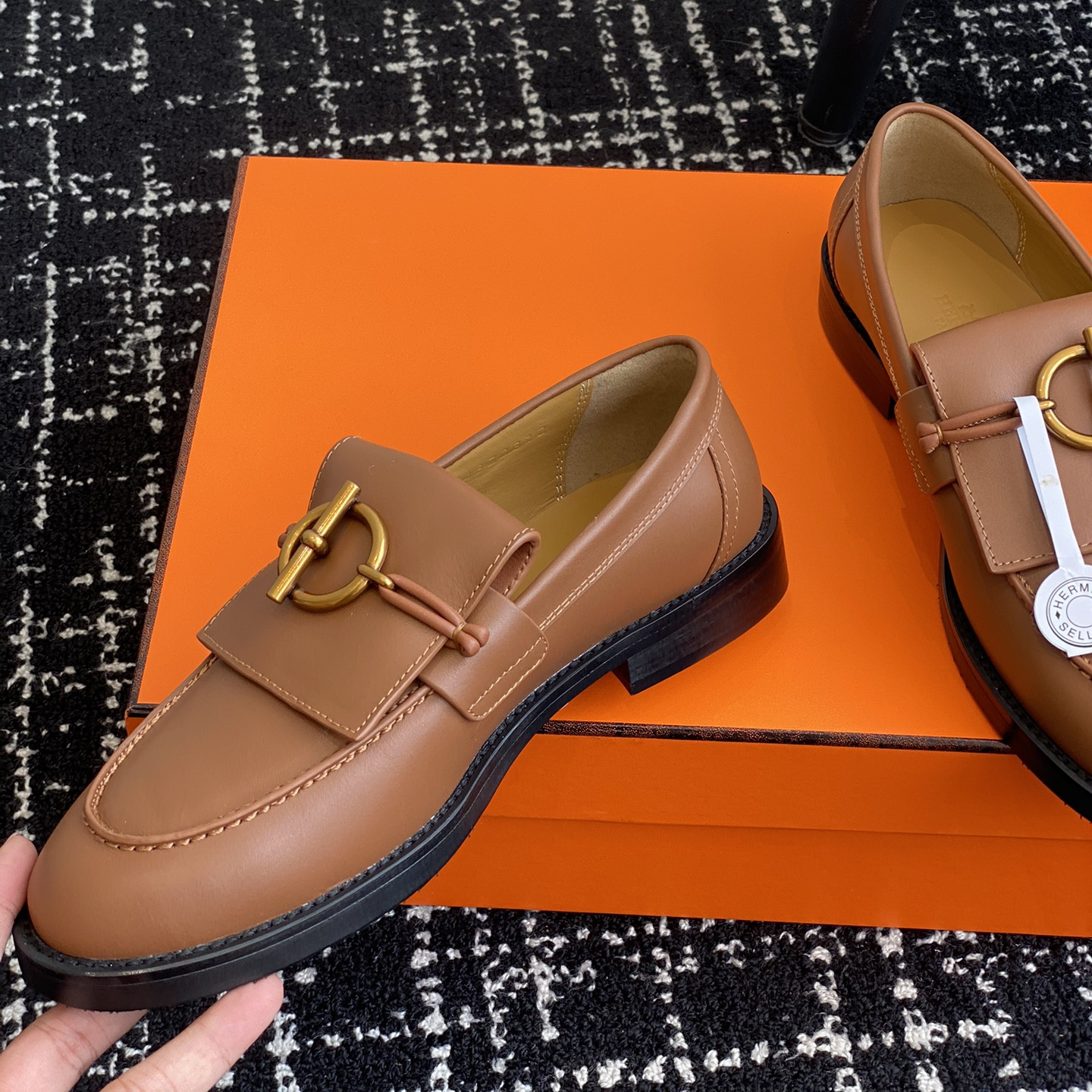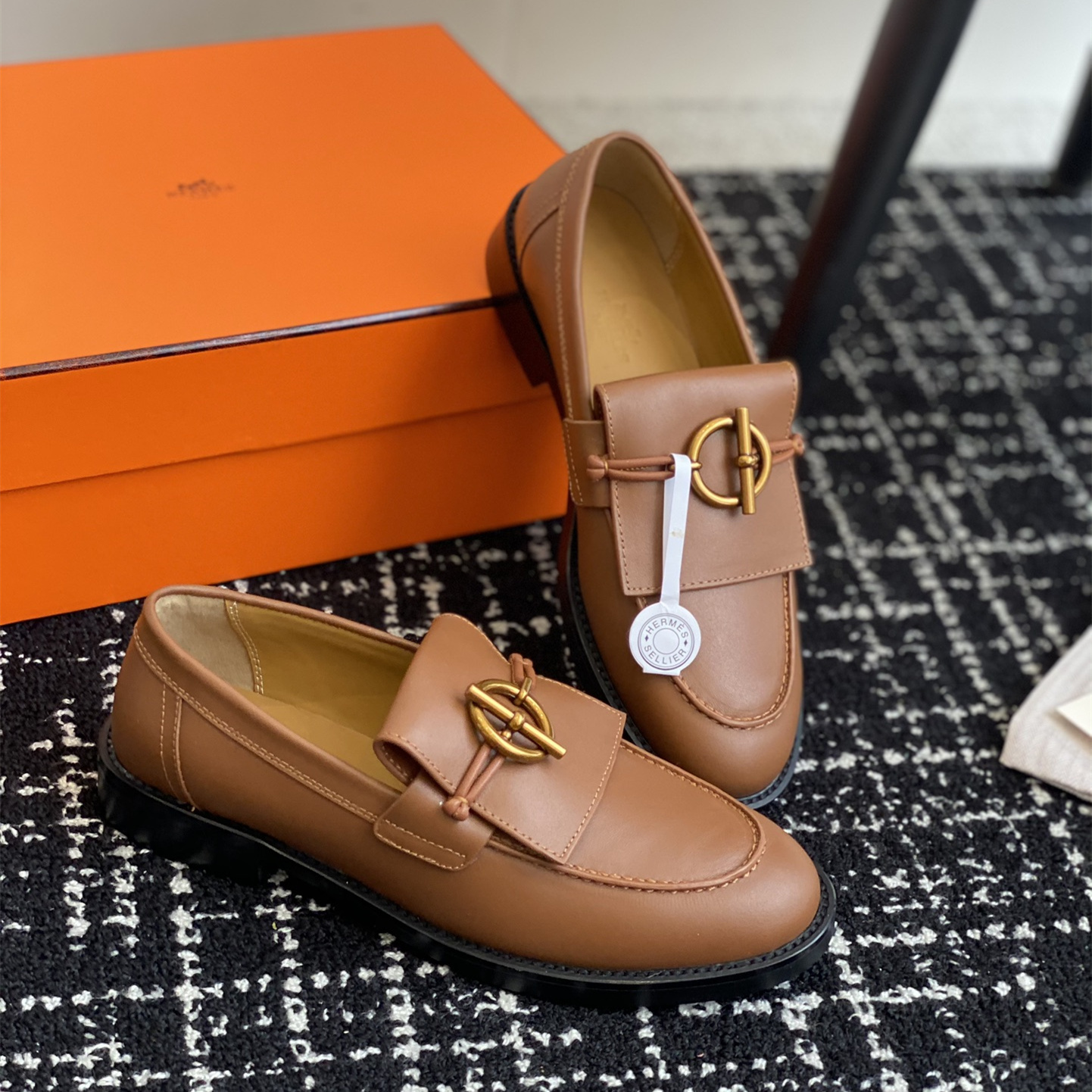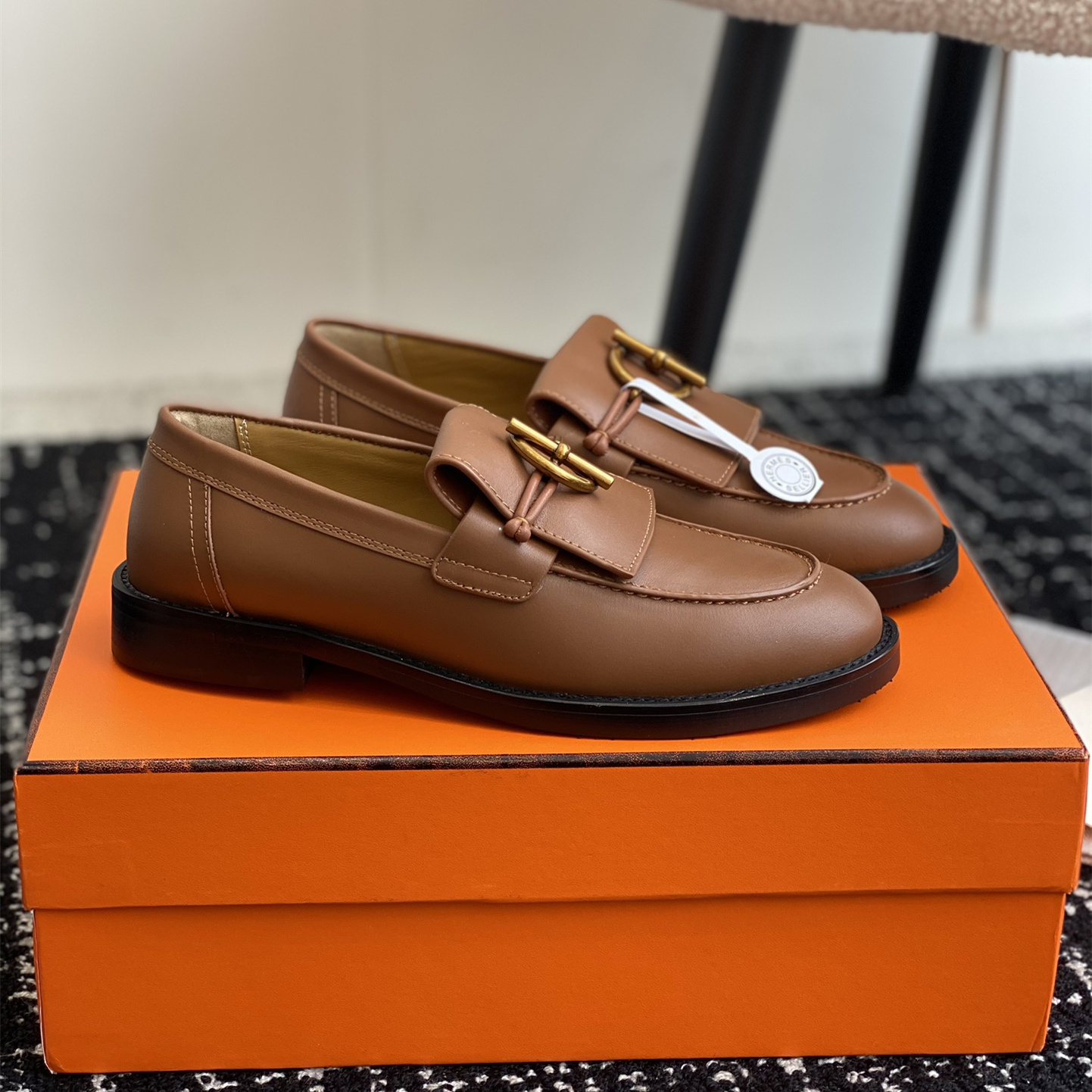 高仿Hermes*H241143ZA33塔扣小羊皮樂福鞋棕色免檢版
