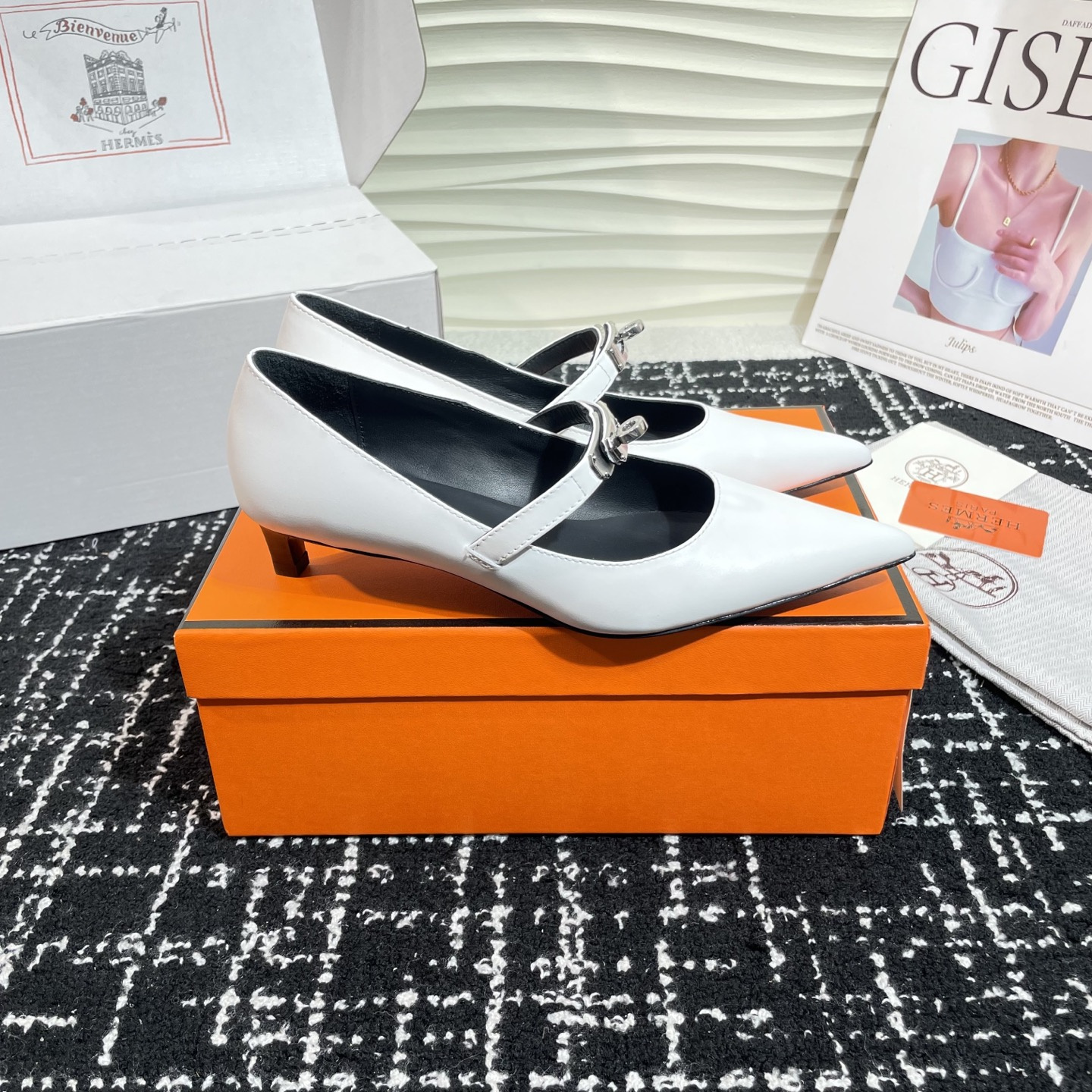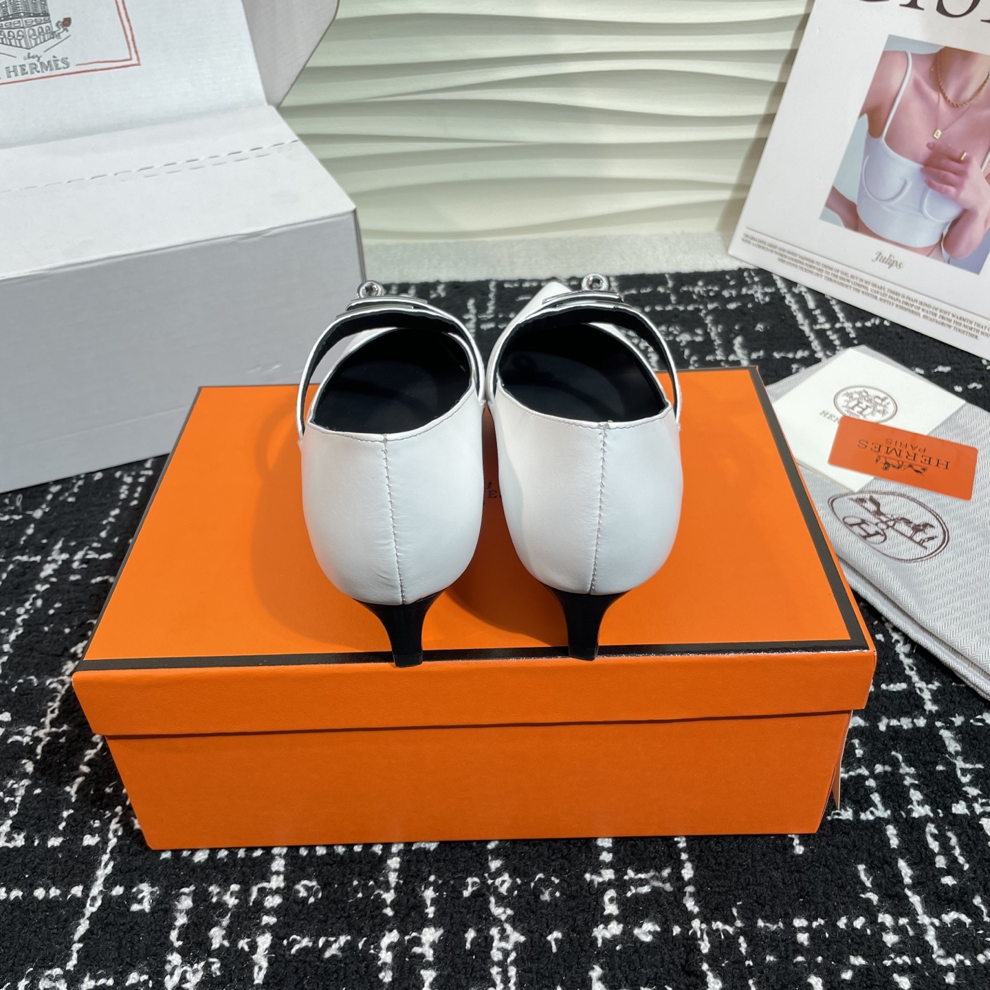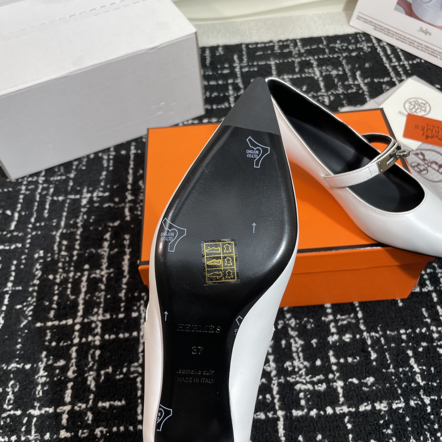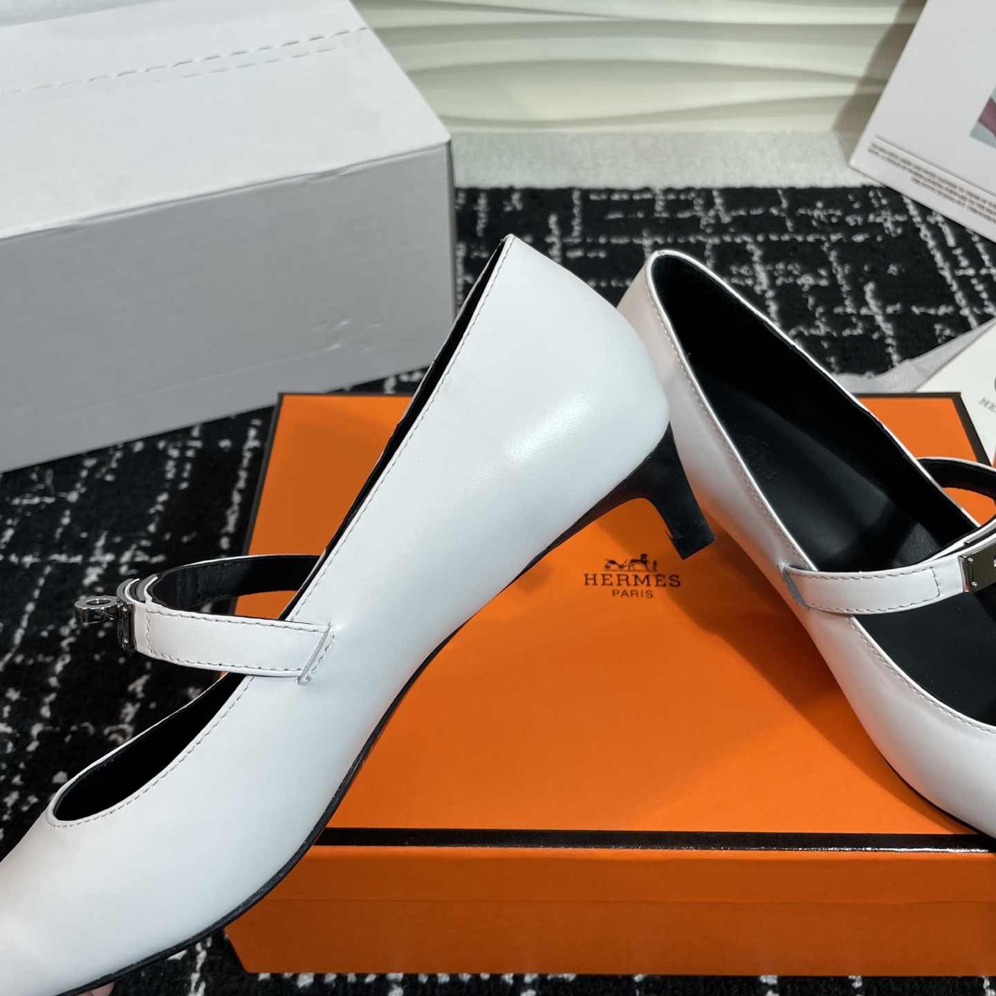 高仿Hermes*Kelly系列H251007Z01小牛皮高踭鞋白色4CM免檢版