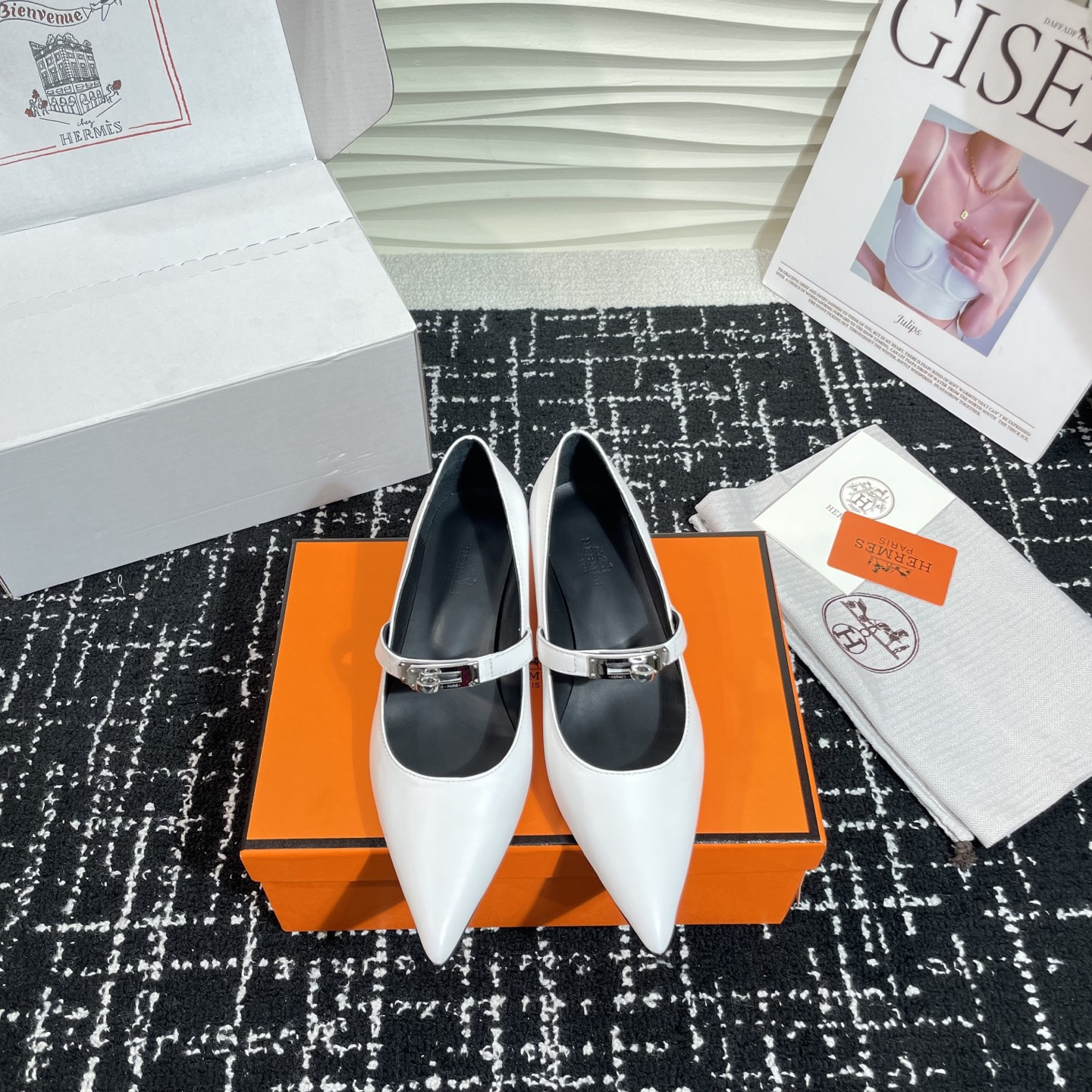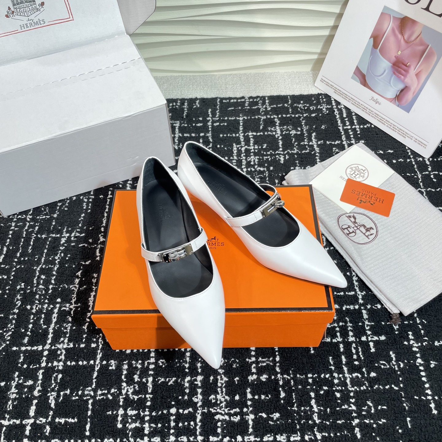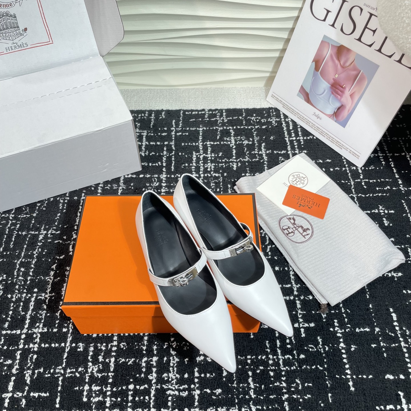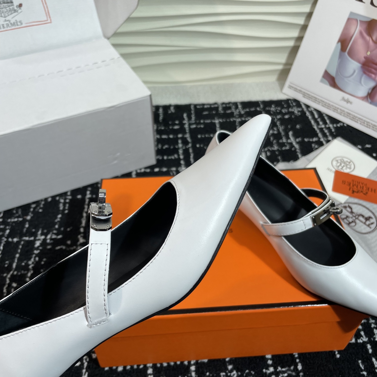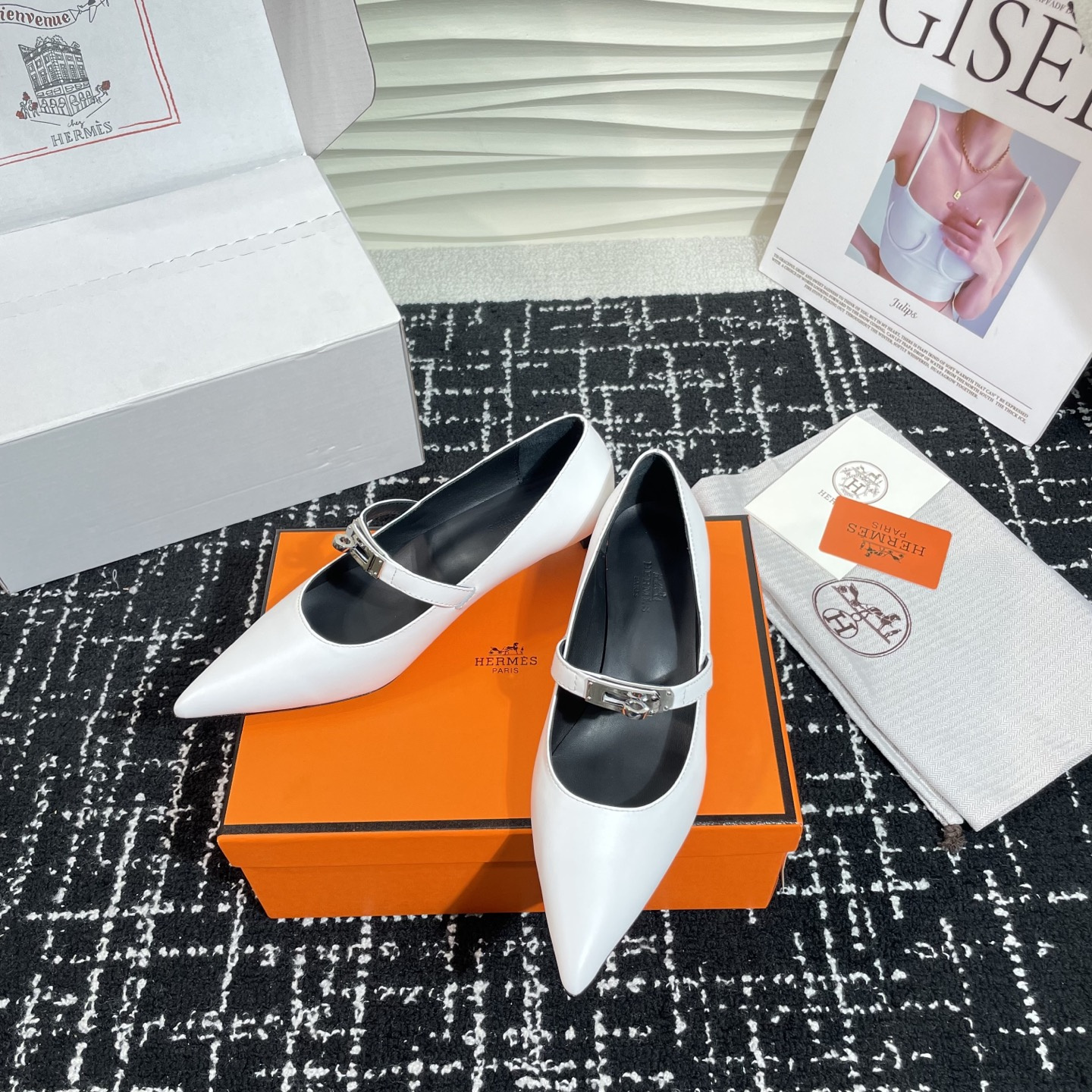 高仿Hermes*Kelly系列H251007Z01小牛皮高踭鞋白色4CM免檢版