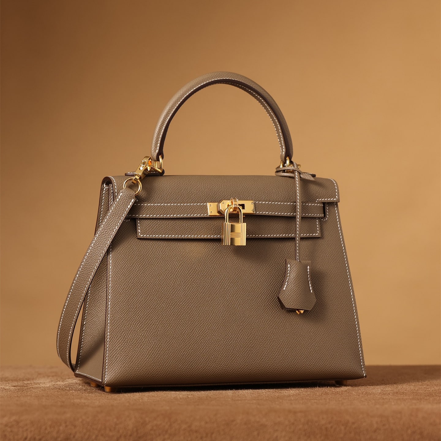 HERMES愛馬仕Kelly大象灰25cm金扣Epsom牛皮凱莉包手提包常規女款.獨家渠道貨天花闆高清實拍圖,高仿市場中獨一且唯一的的絕對硬貨.什麼是Epsom牛皮?這個皮在特定的時候是有一定雙色效果.但是品絕大多數不明顯,需要角度才看得出,這個不是品牌鑒定點切記是水染工藝皮面做出紋路效果,純原進口皮和原版一樣的皮不斷擦拭過程中一種自然拋光.所以色澤淺的ep皮越明顯,皮好才更能體現這個包的版型和具備正品的味道.