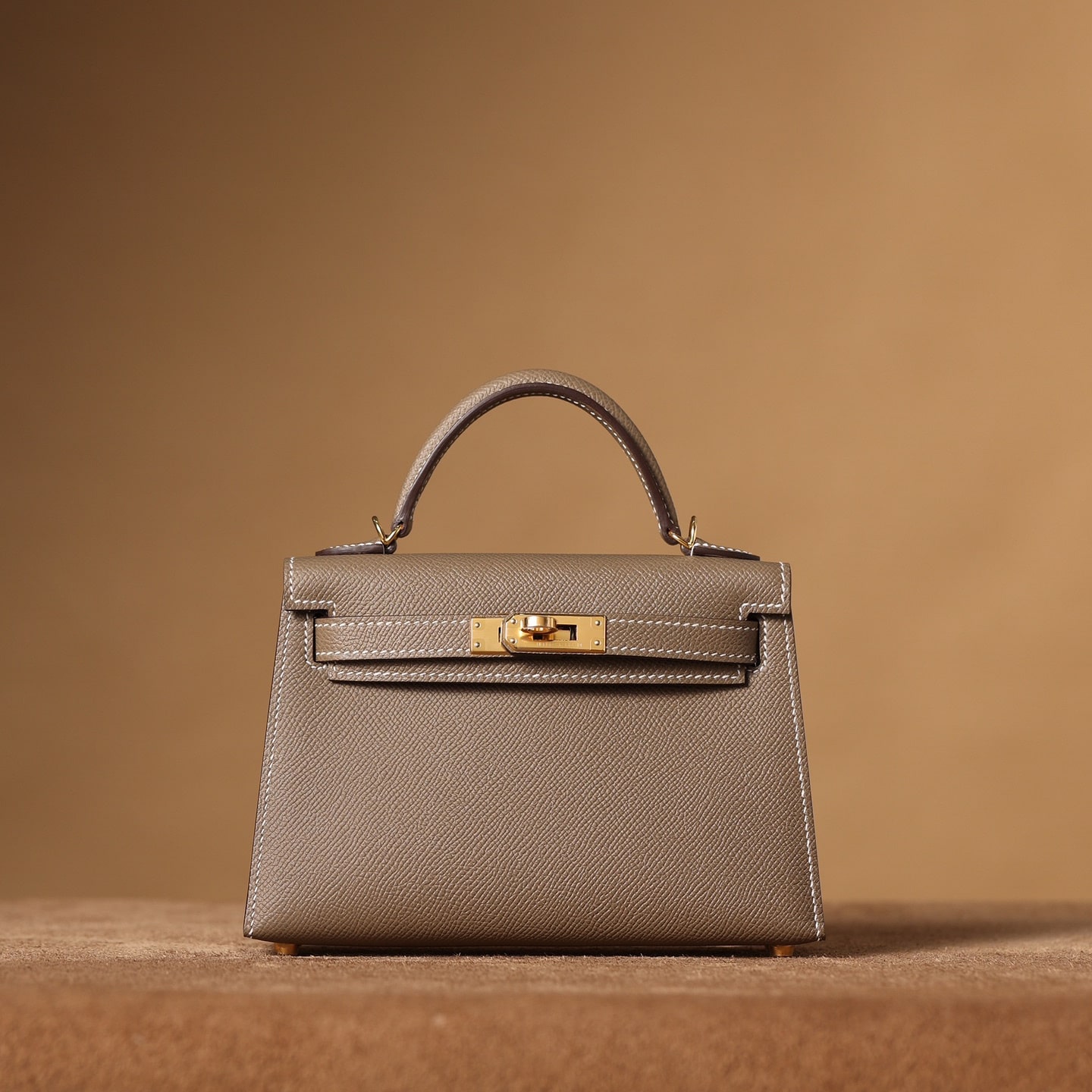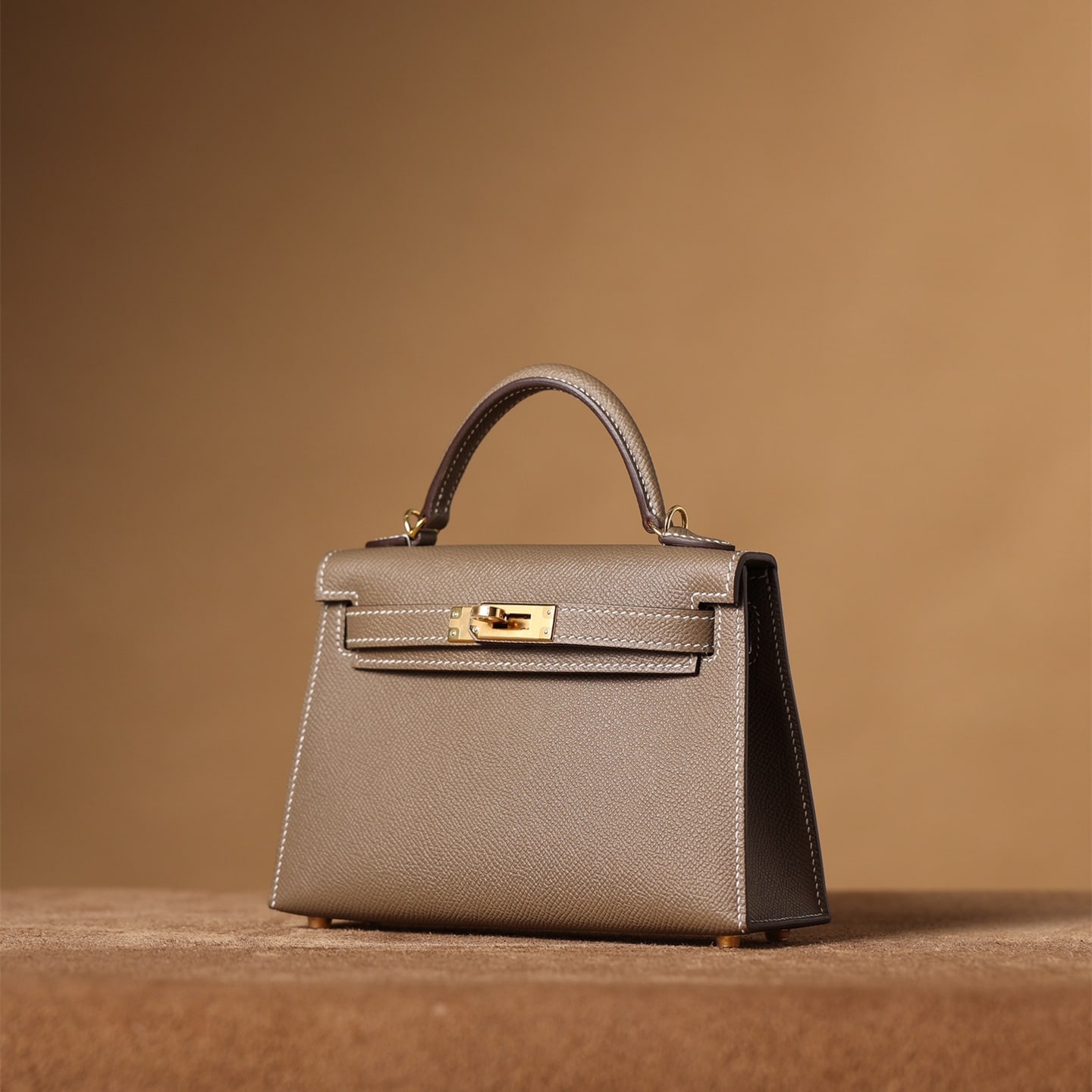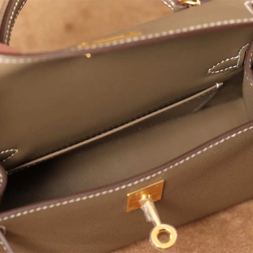 高仿Hermes*KellyMini二代大象灰金扣免檢版