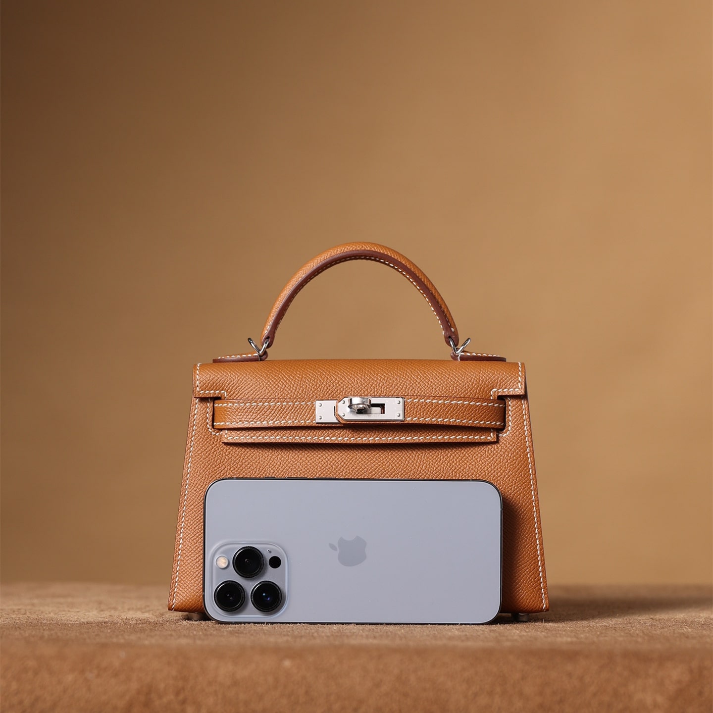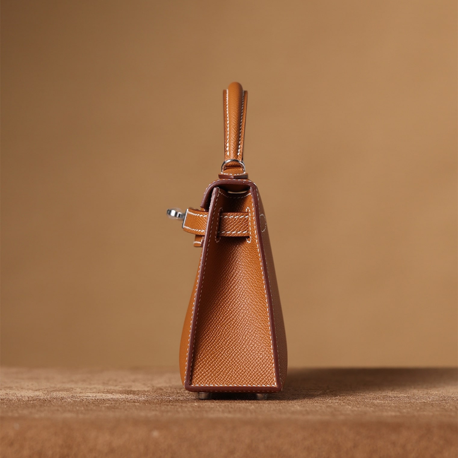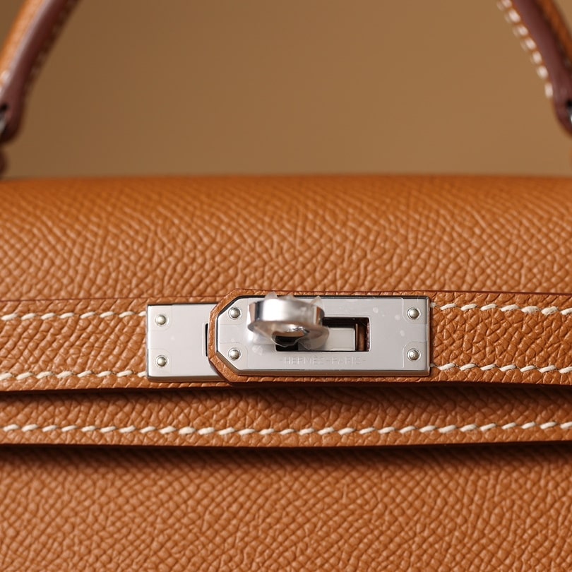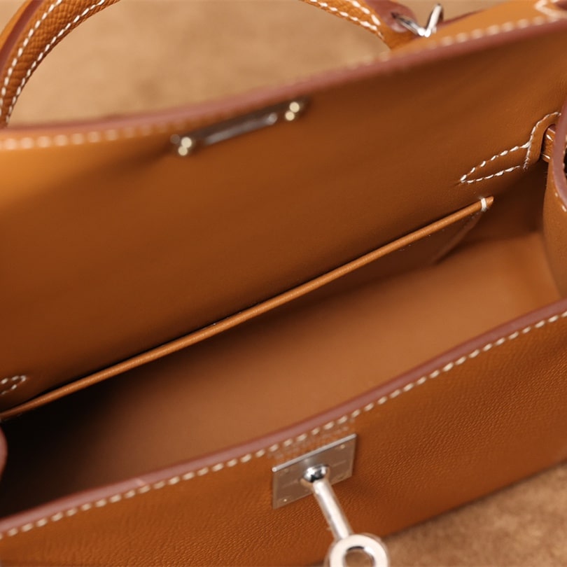 高仿Hermes*KellyMini二代棕色銀扣免檢版