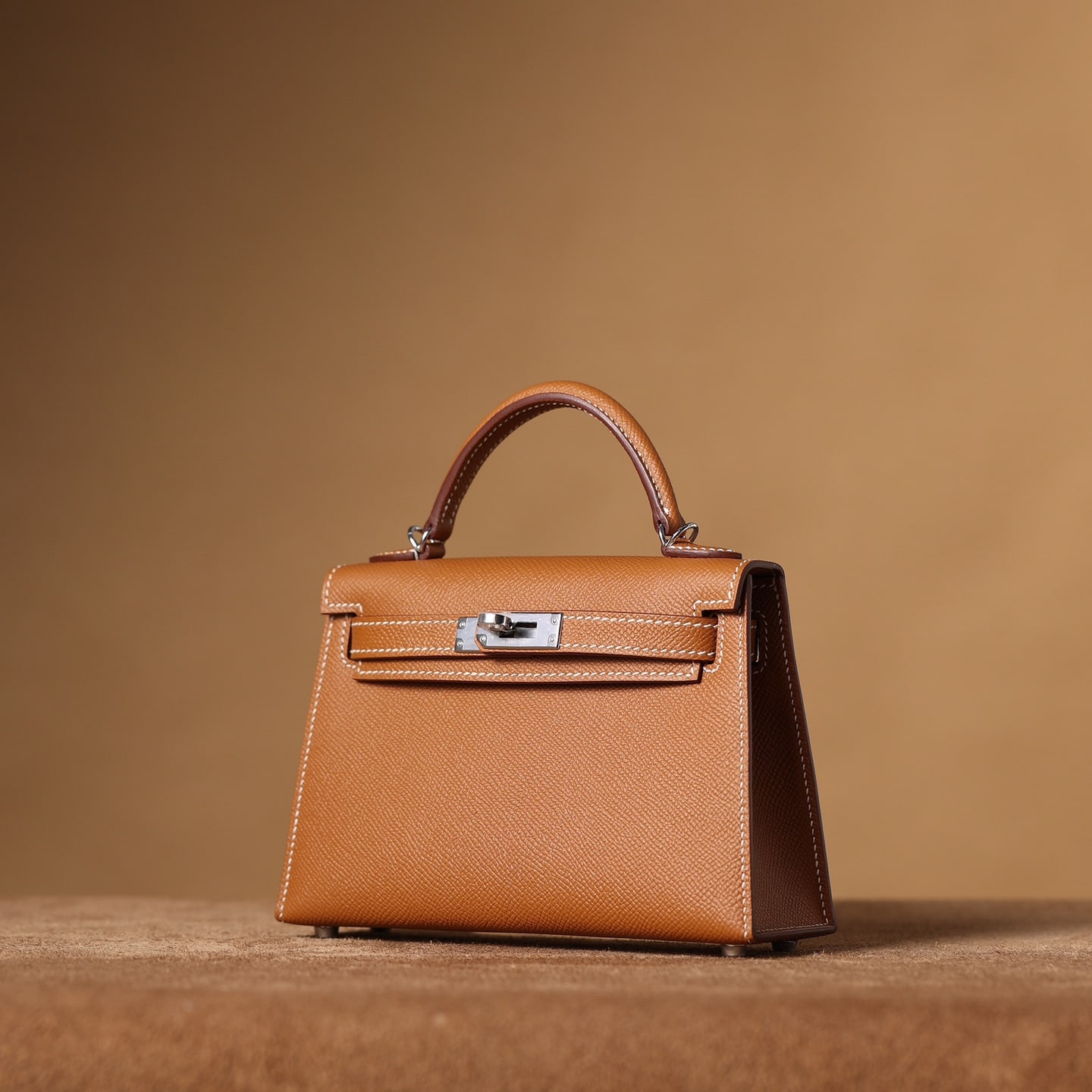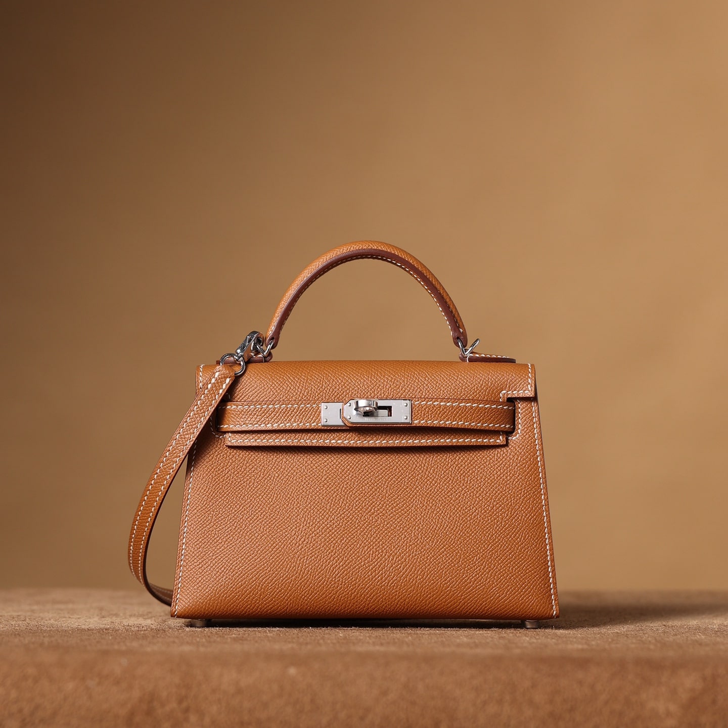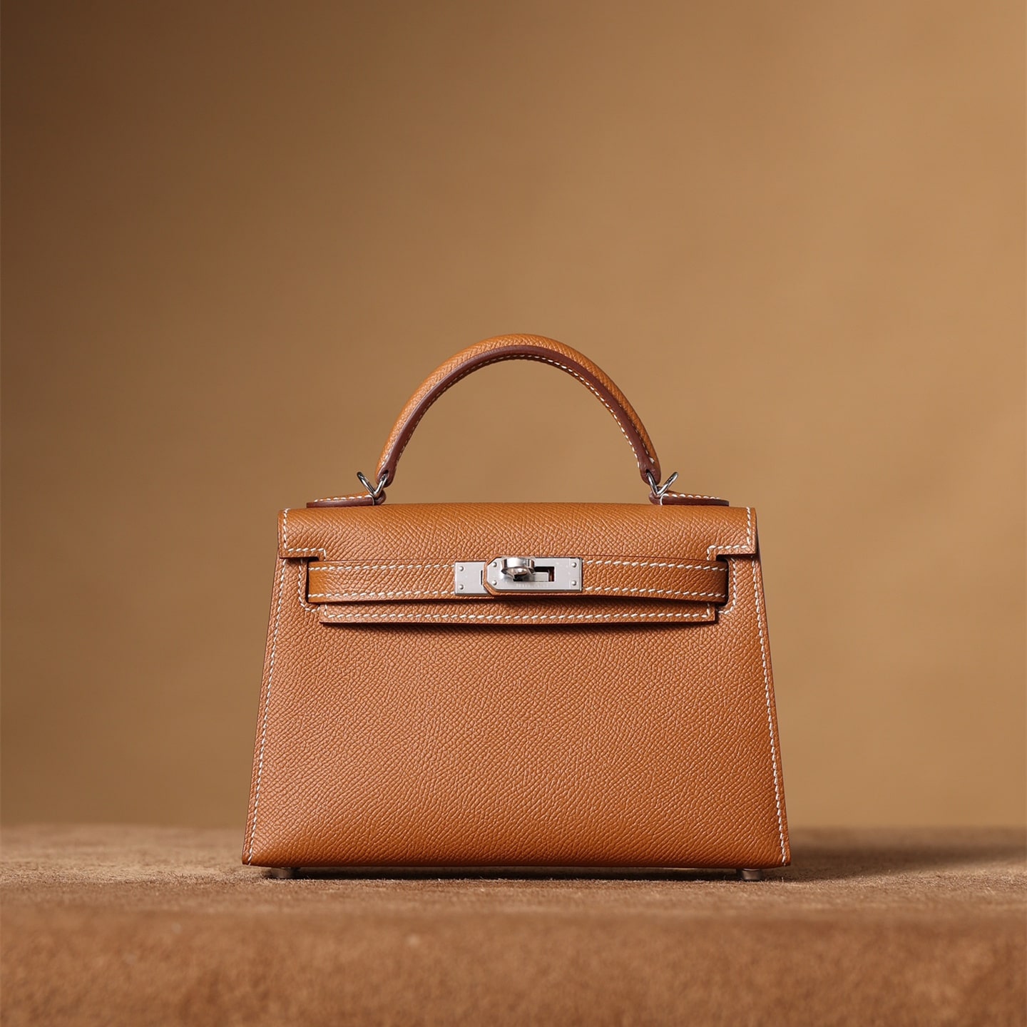 高仿Hermes*KellyMini二代棕色銀扣免檢版