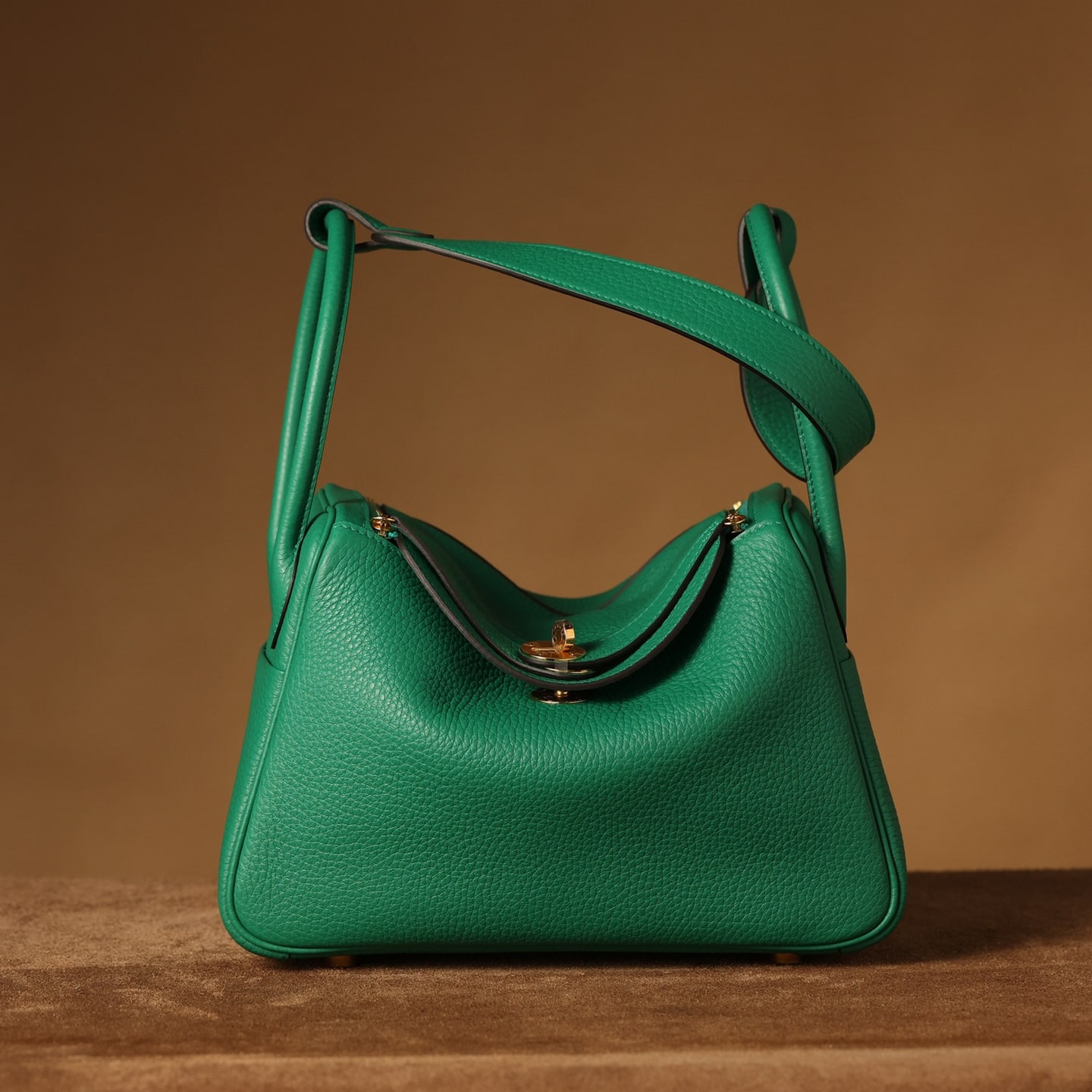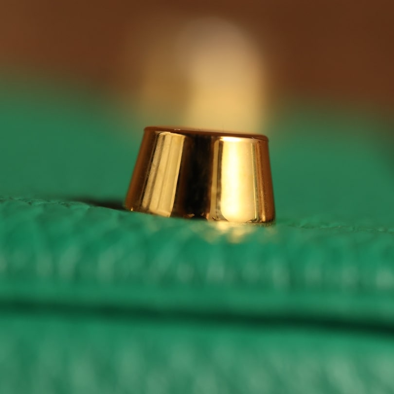 專屬正品級別的高仿HermesLindy系列單肩包,這款絲絨綠配金扣的手袋,百分之百採用原廠皮革,而所謂的原廠皮質指的是使用了TaurillonClemence皮-