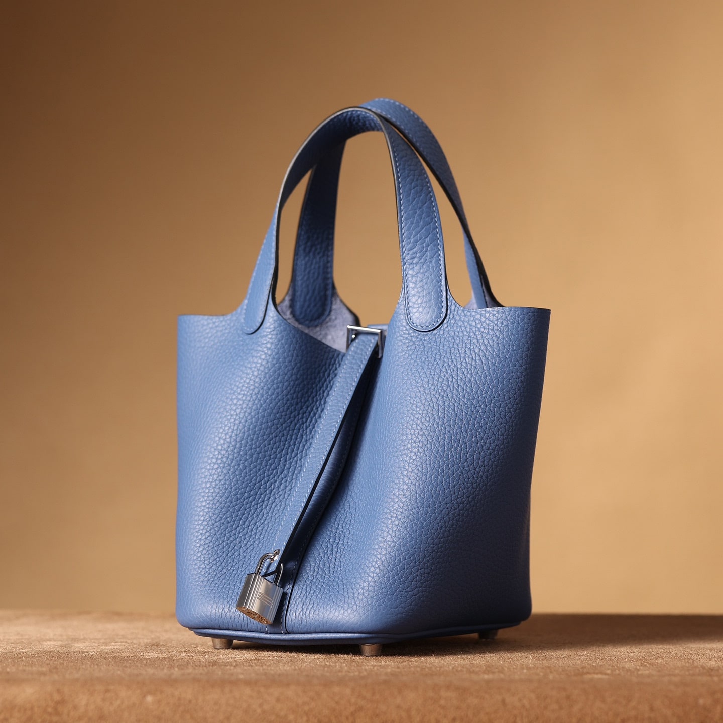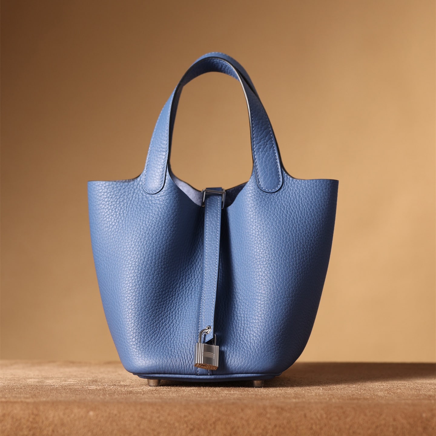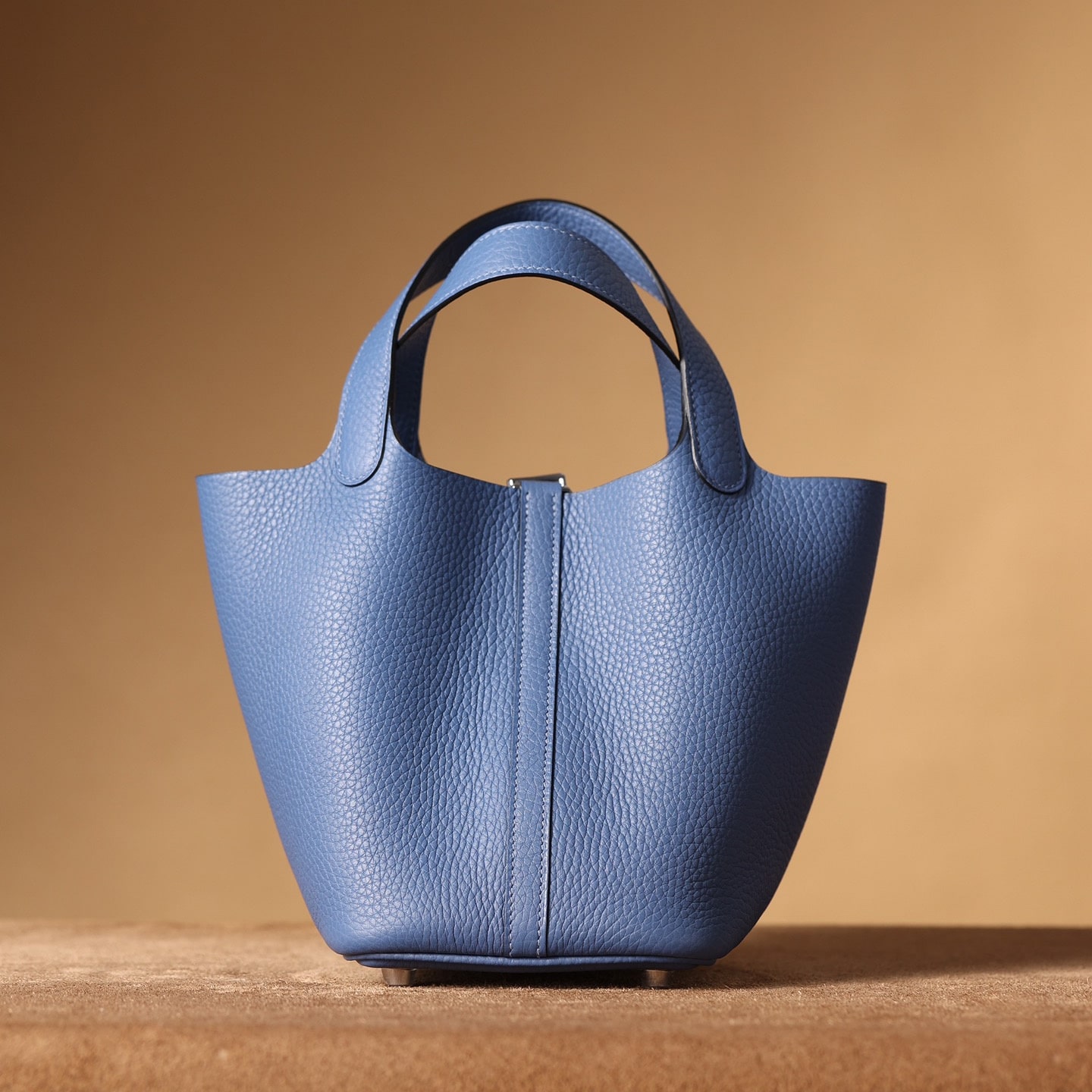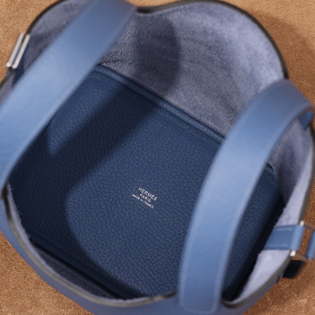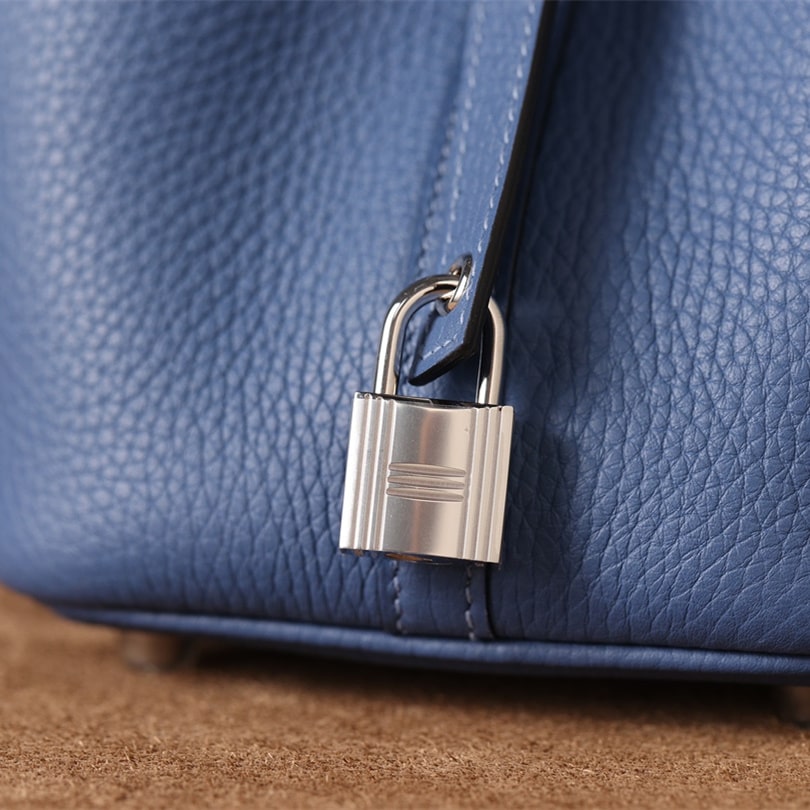 高仿HermesPicotinLock系列手袋展現了手工藝術的非凡魅力,不僅是一件實用的日用品,更是一件精湛工藝的藝術品.工匠們採用了傳統手工技術和現代設計理念的完美結合,每個細節都經過細心雕琢,體現出對品質和美學的極致追求.高仿包包的主材質為優質的TaurillonClemence皮革,俗稱TC皮,這種皮革選自成年公牛的頸部,質地堅韌而光滑,表面的顆粒紋路自然細膩,給人一種豐富的視覺和觸感體驗.這種高級皮革不僅有著出色的耐用性,更因其獨特的質感和光澤,成為高端奢侈品的首選材料.