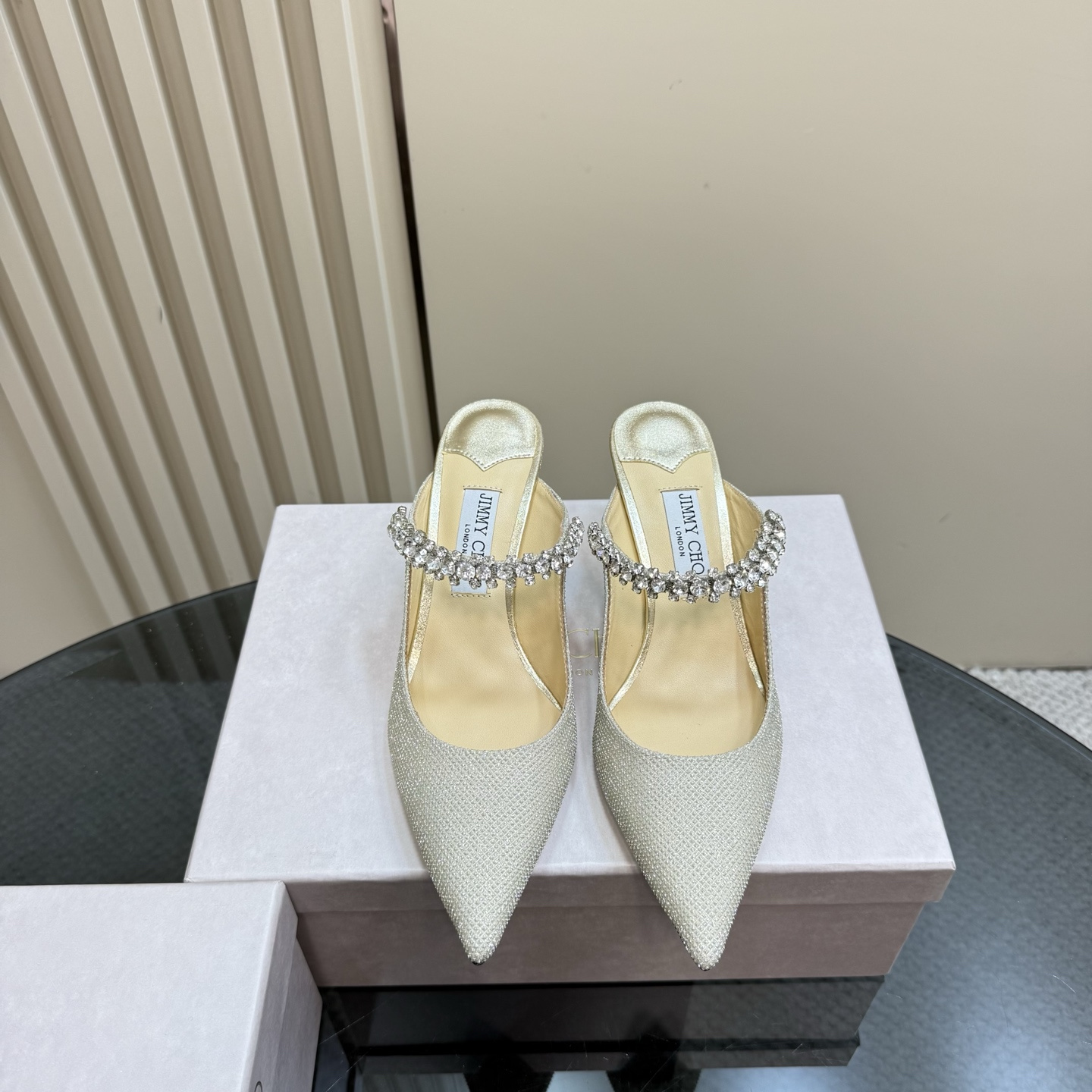 高仿JimmyChoo*BING64D尖頭高踭拖鞋米黃6CM免檢版