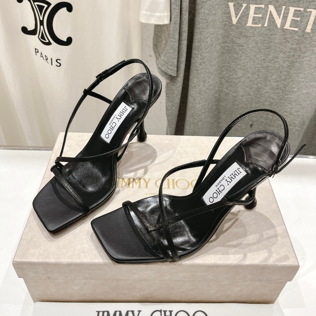 高仿JimmyChoo*ETANA95交叉塔扣高踭涼鞋黑色9.5CM免檢版